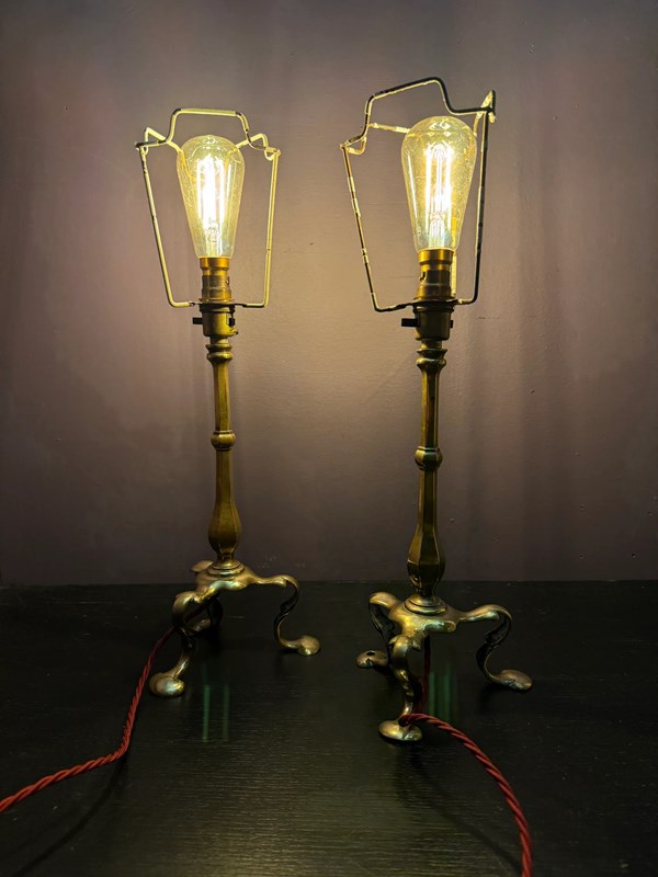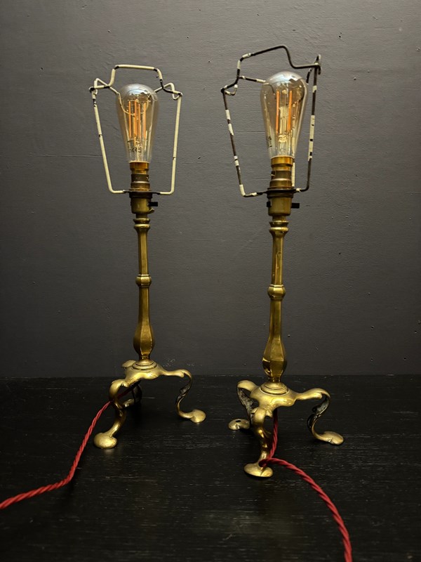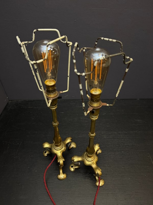 Circa 1910 Pair Of Faraday & Son Brass Pullman Lamps