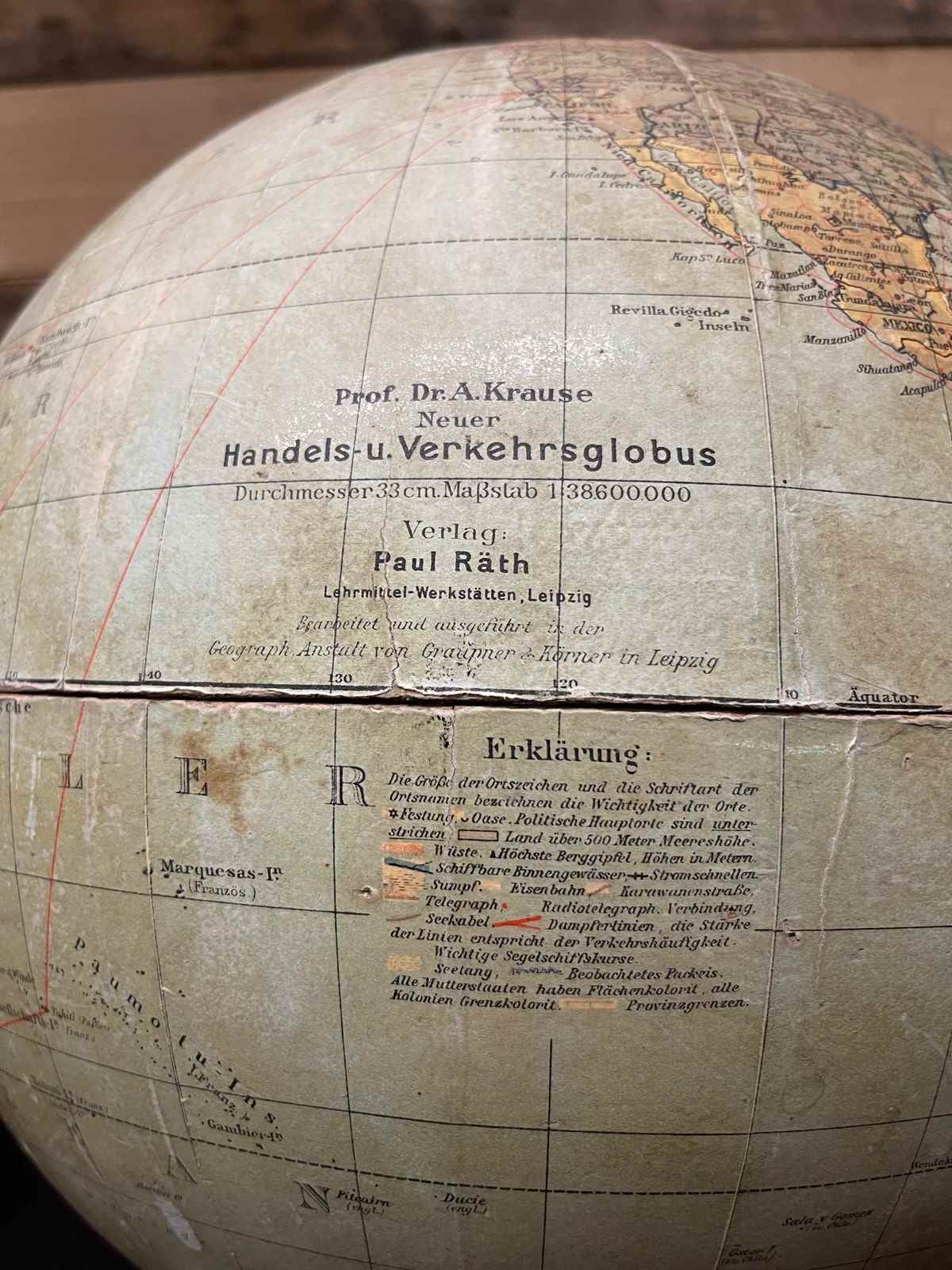German Antique Table Globe By Paul Räth & Dr A Krause, Leipzig 1920S