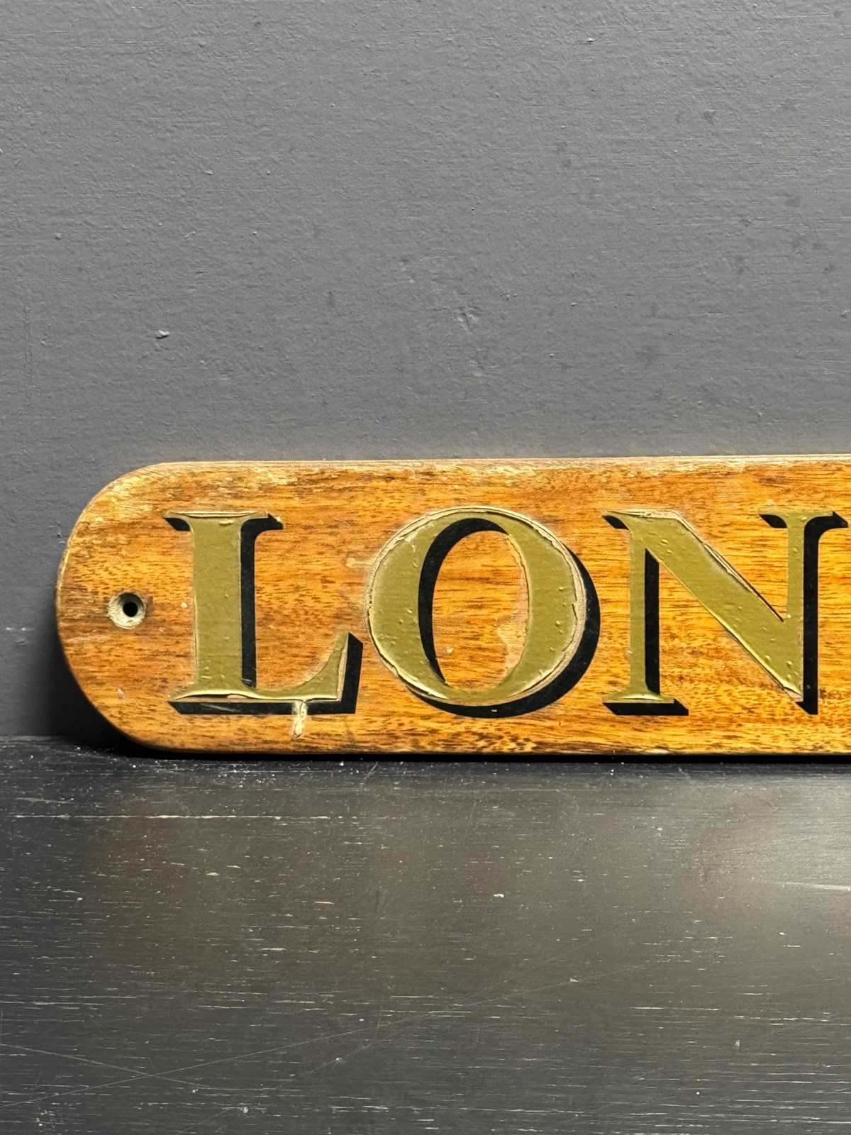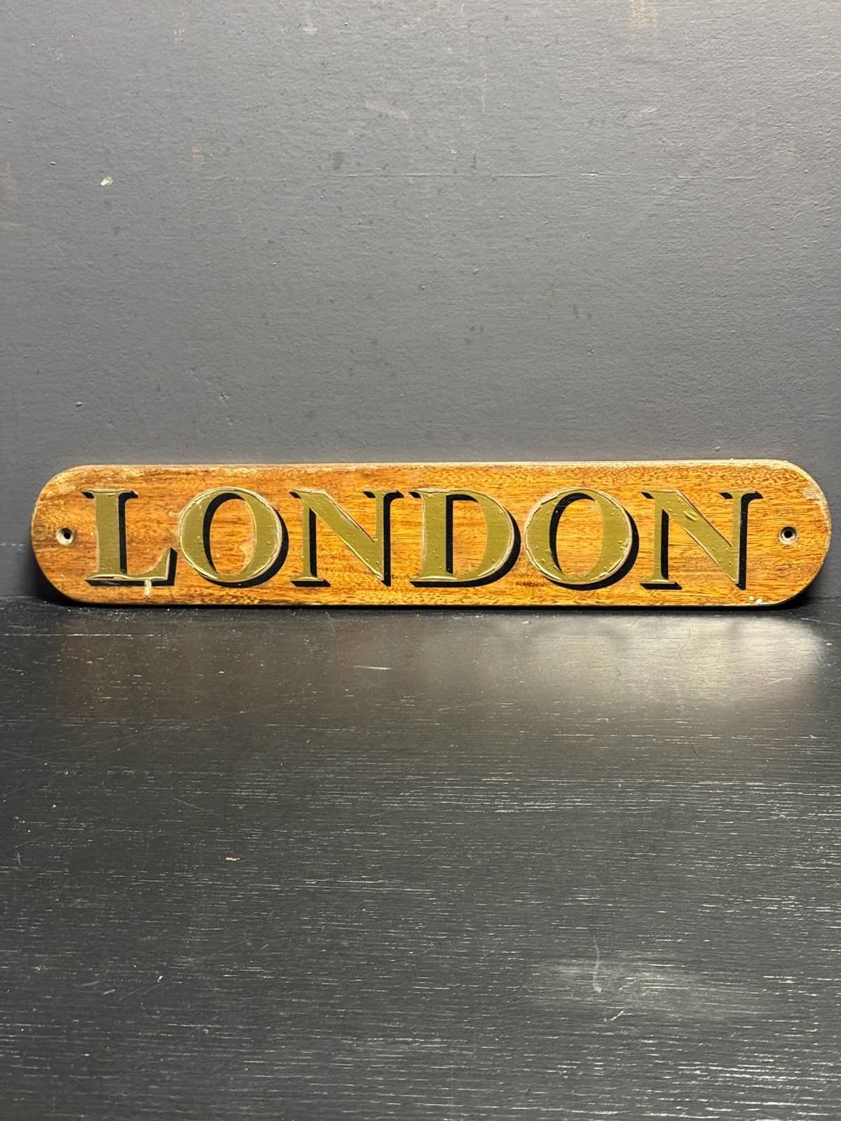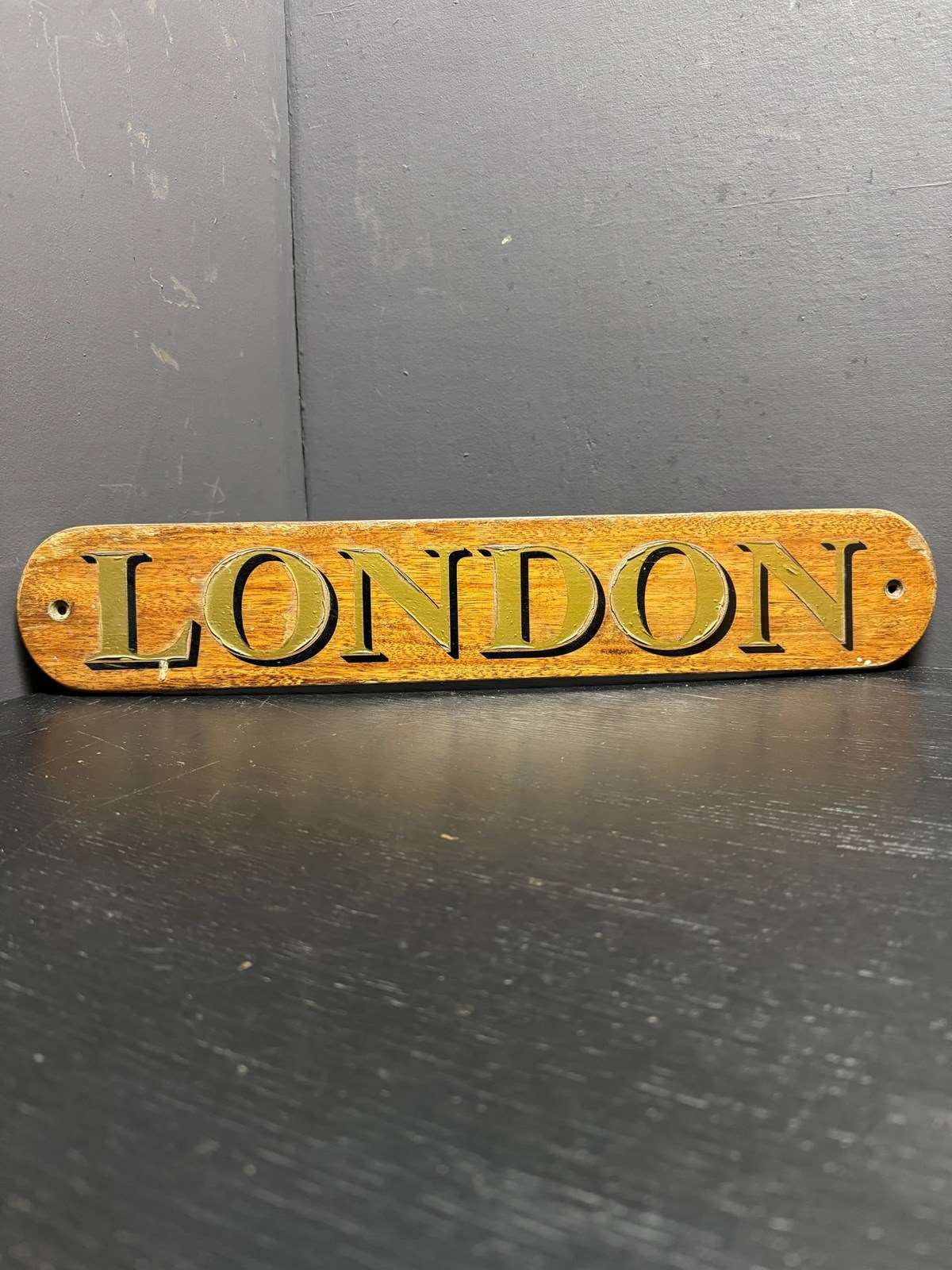 Circa 1980s hand made boat sign, these signs are made along with the boats name sign to show where the boat comes from. This one is from the river Thames in London.