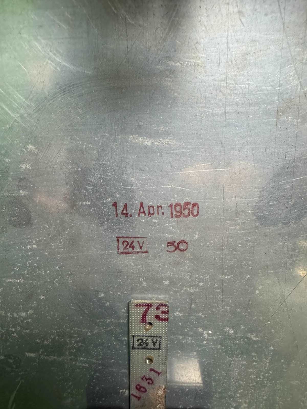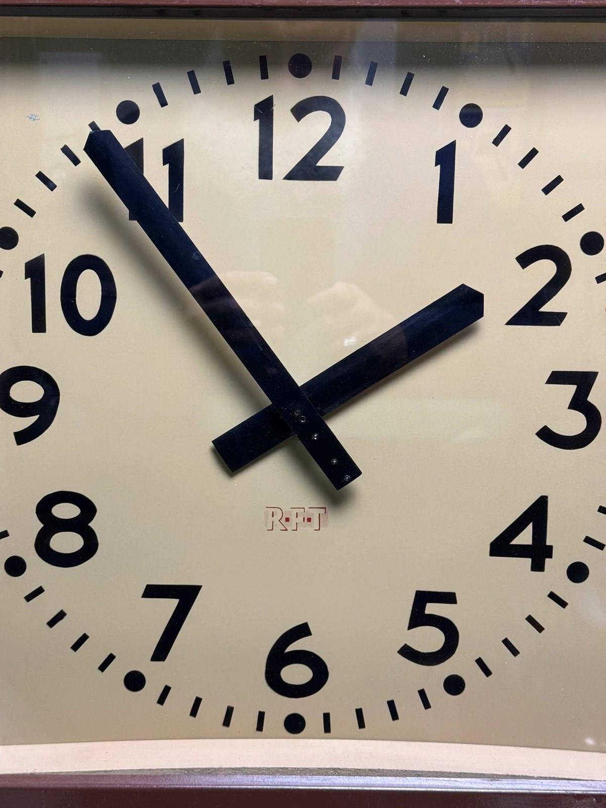 Large 1950s East German industrial factory clock by RFT. Clock dated on rear 14 April 1950.