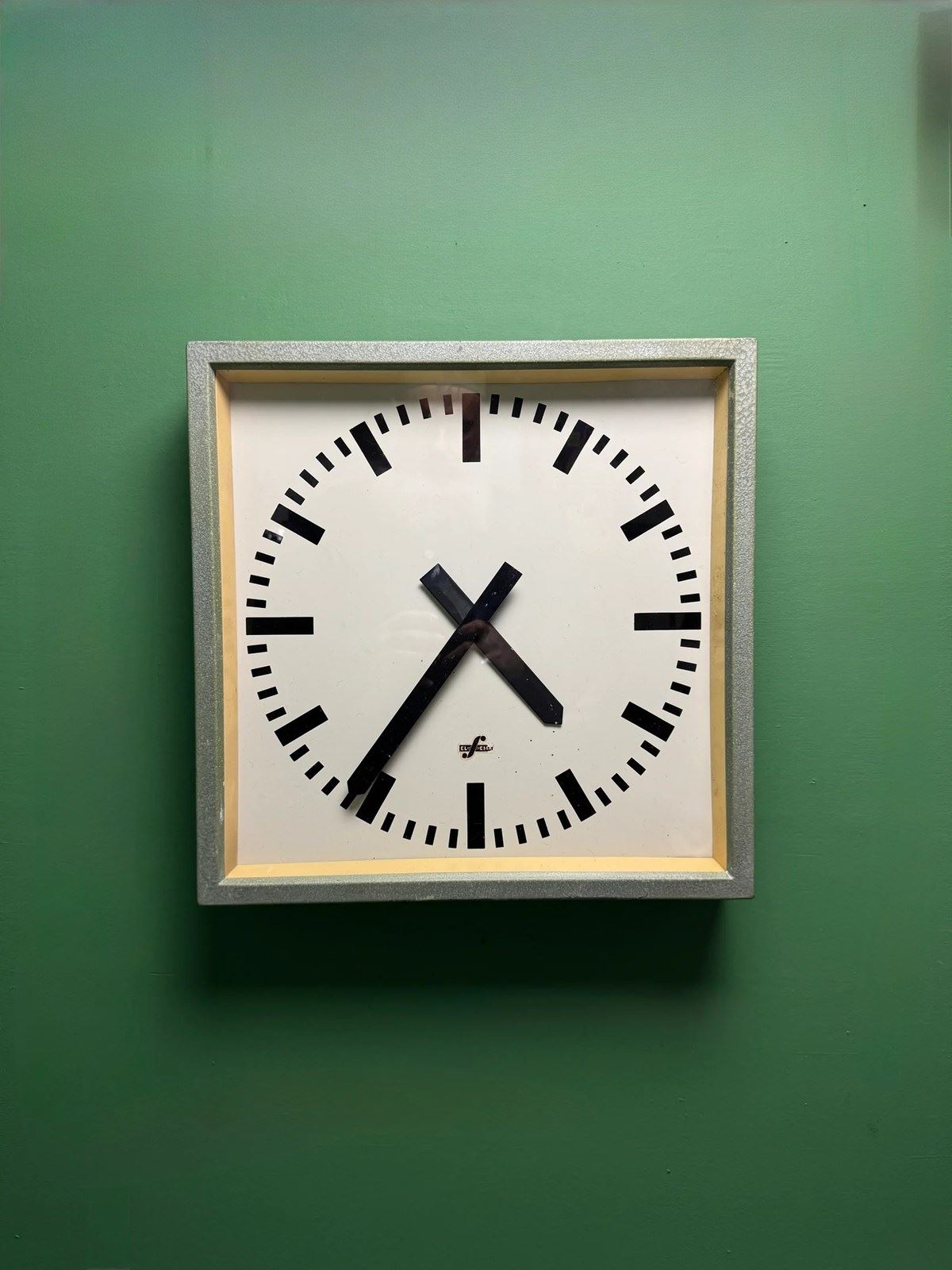These were used in factories & stations all over East Germany. We picked this up in a recent trip to East Germany. These clocks were used in a workshop that actually fixed clocks in the Eastern German city of Dresden.