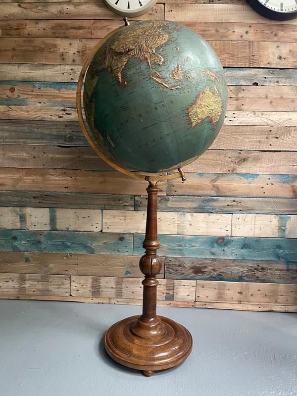 Large Antique Floor Standing Raised Relief Globe By Paul Räth Liepzig
