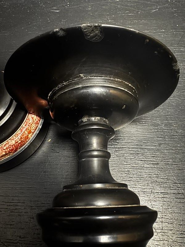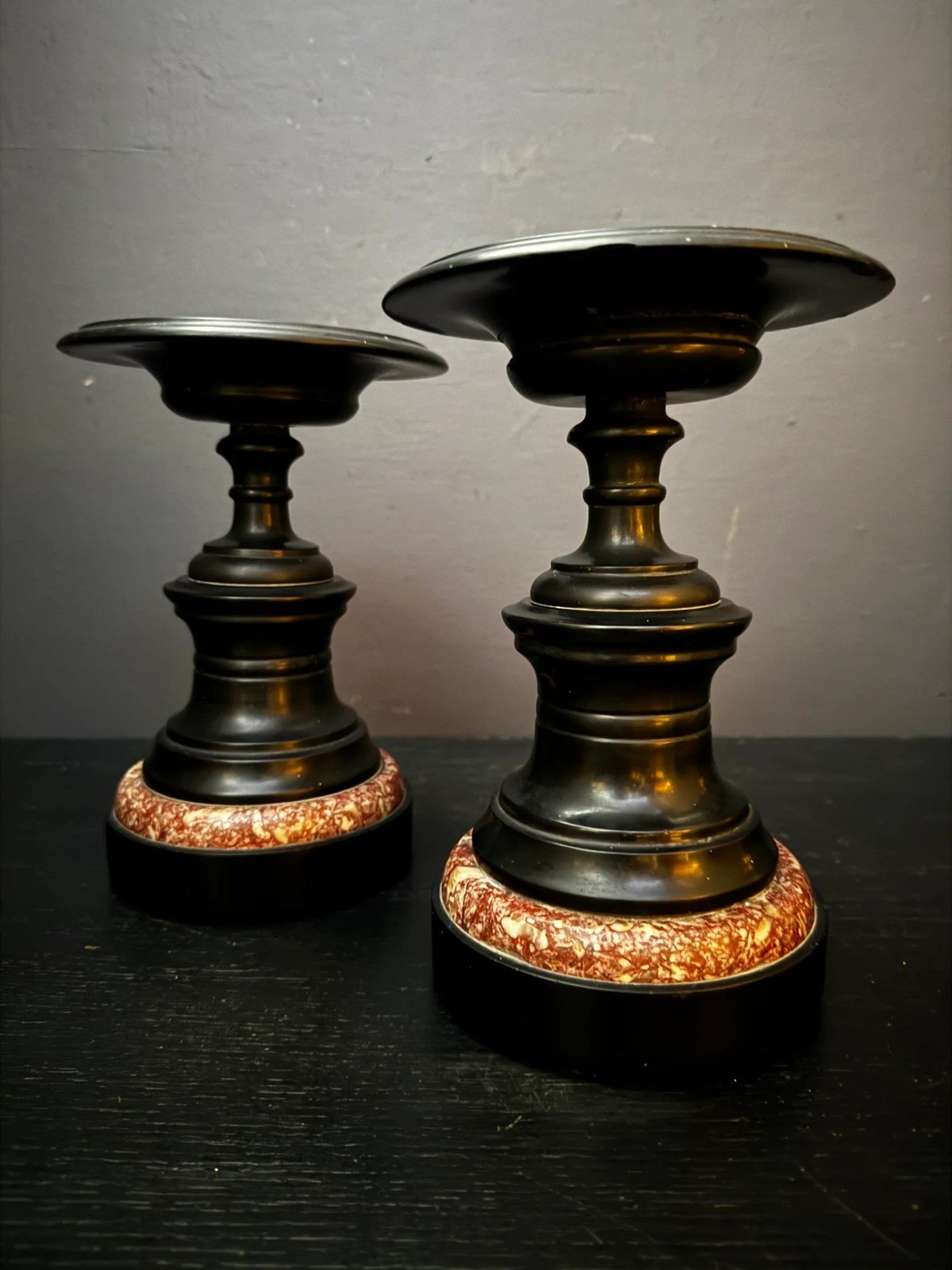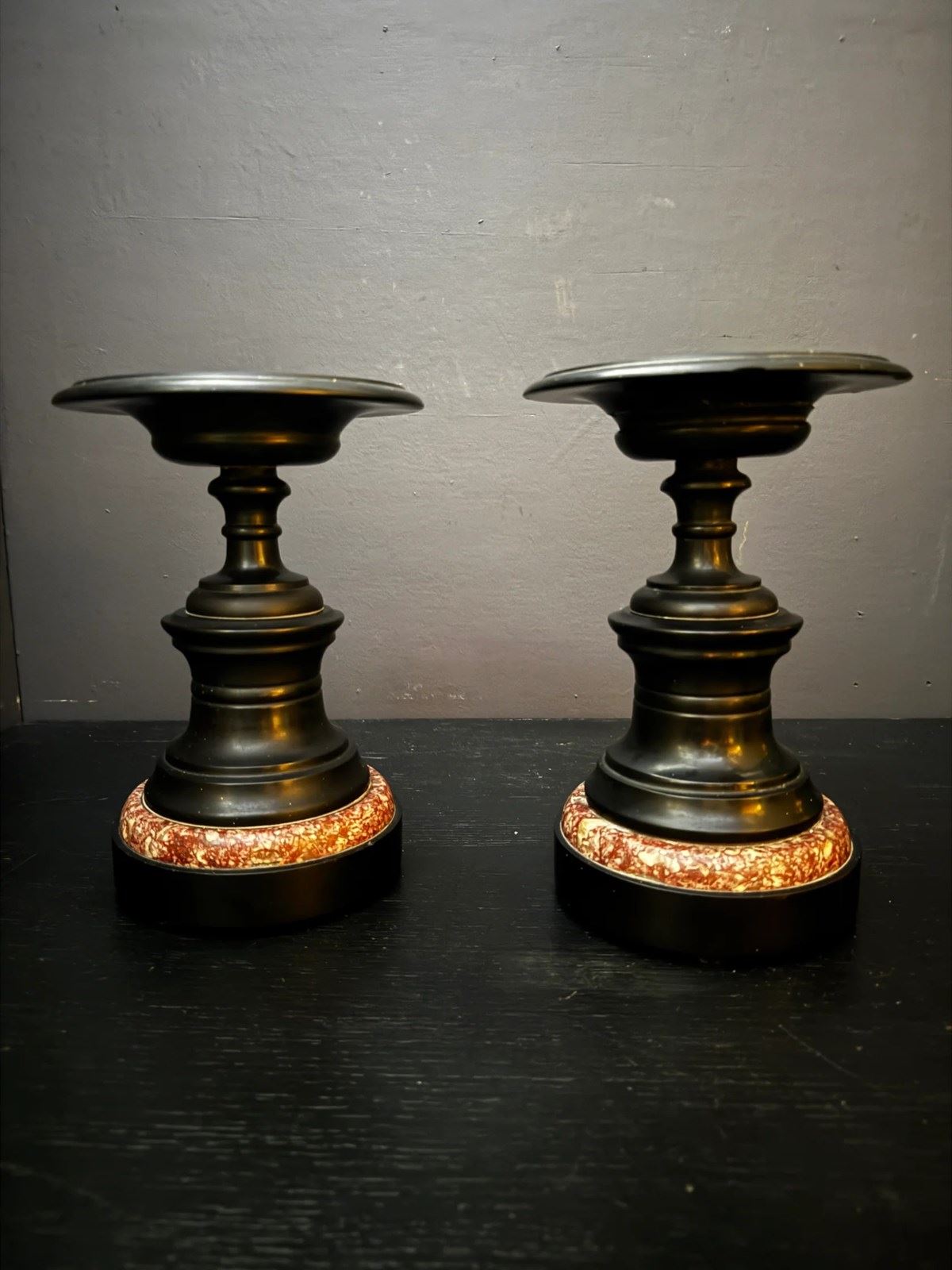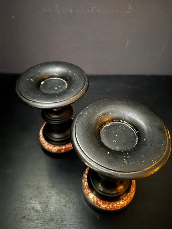 Mid 1800S Pair Of French Turned Black Marble Candle Sticks