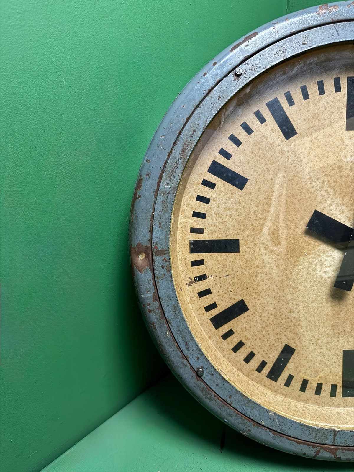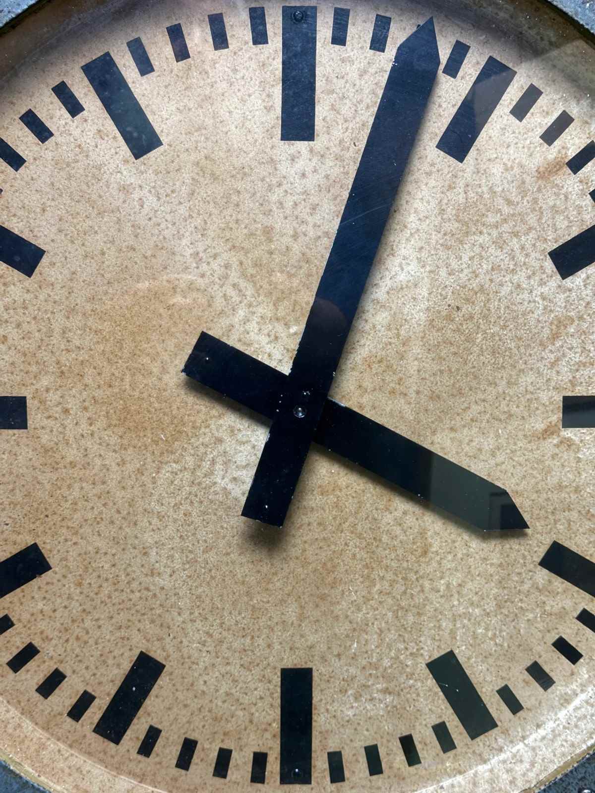 Very large 1930s pre war German railway clock. This was salvaged from a train station in Berlin