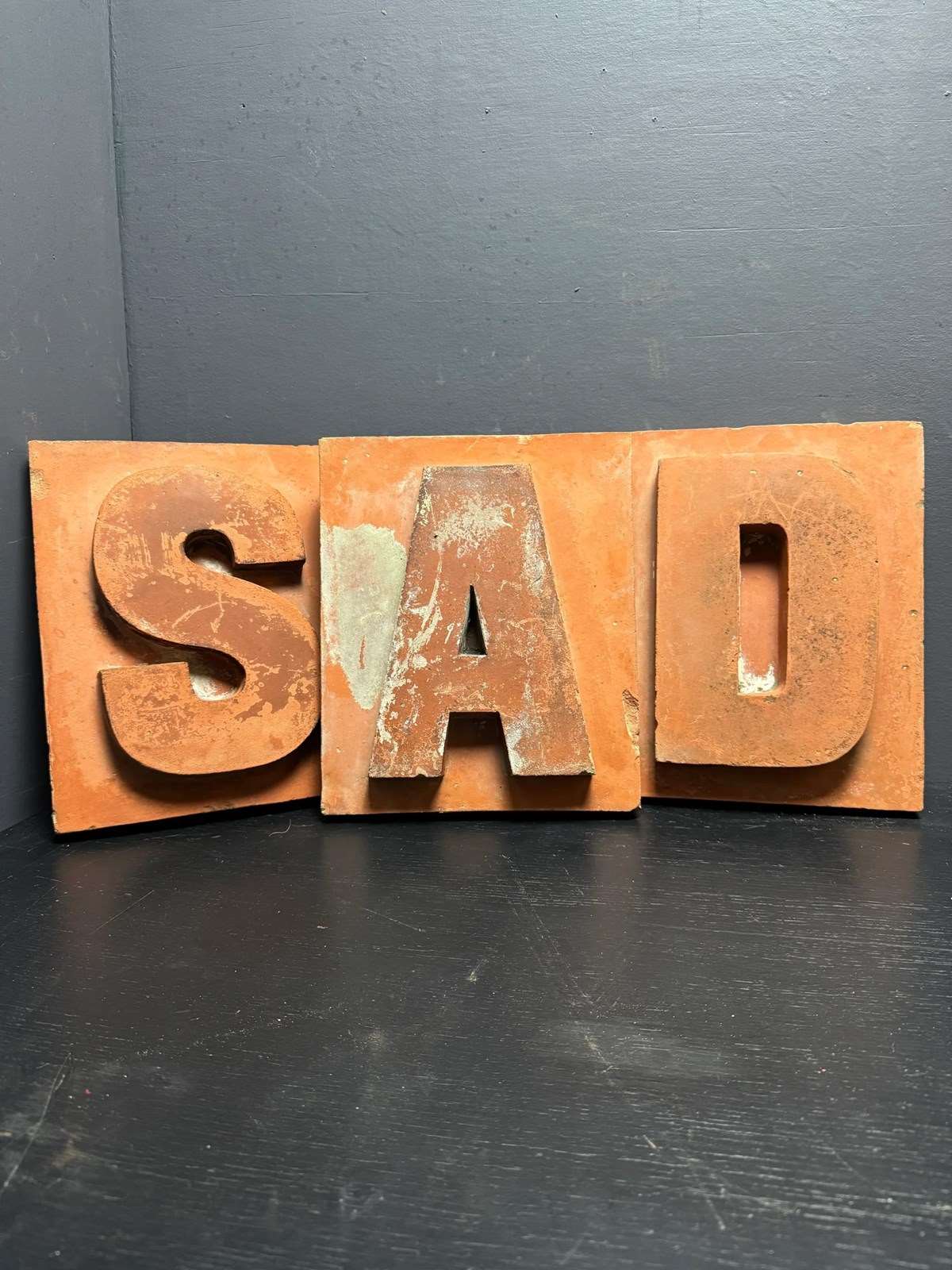 Victorian Era late 1800s terracotta signage from a famous builders suppliers in Somerset England. These terracotta signage tiles were carefully removed from The Somerset Building Corporation Ltd when the building was demolished.