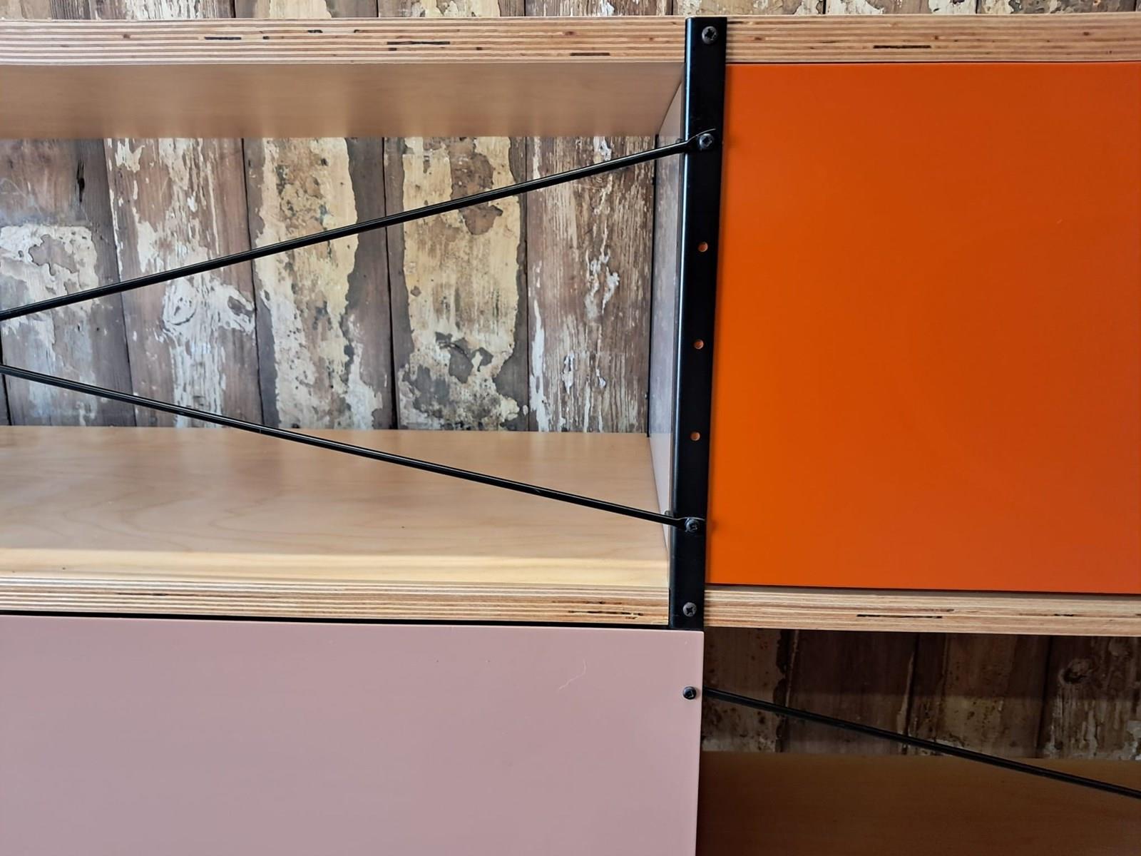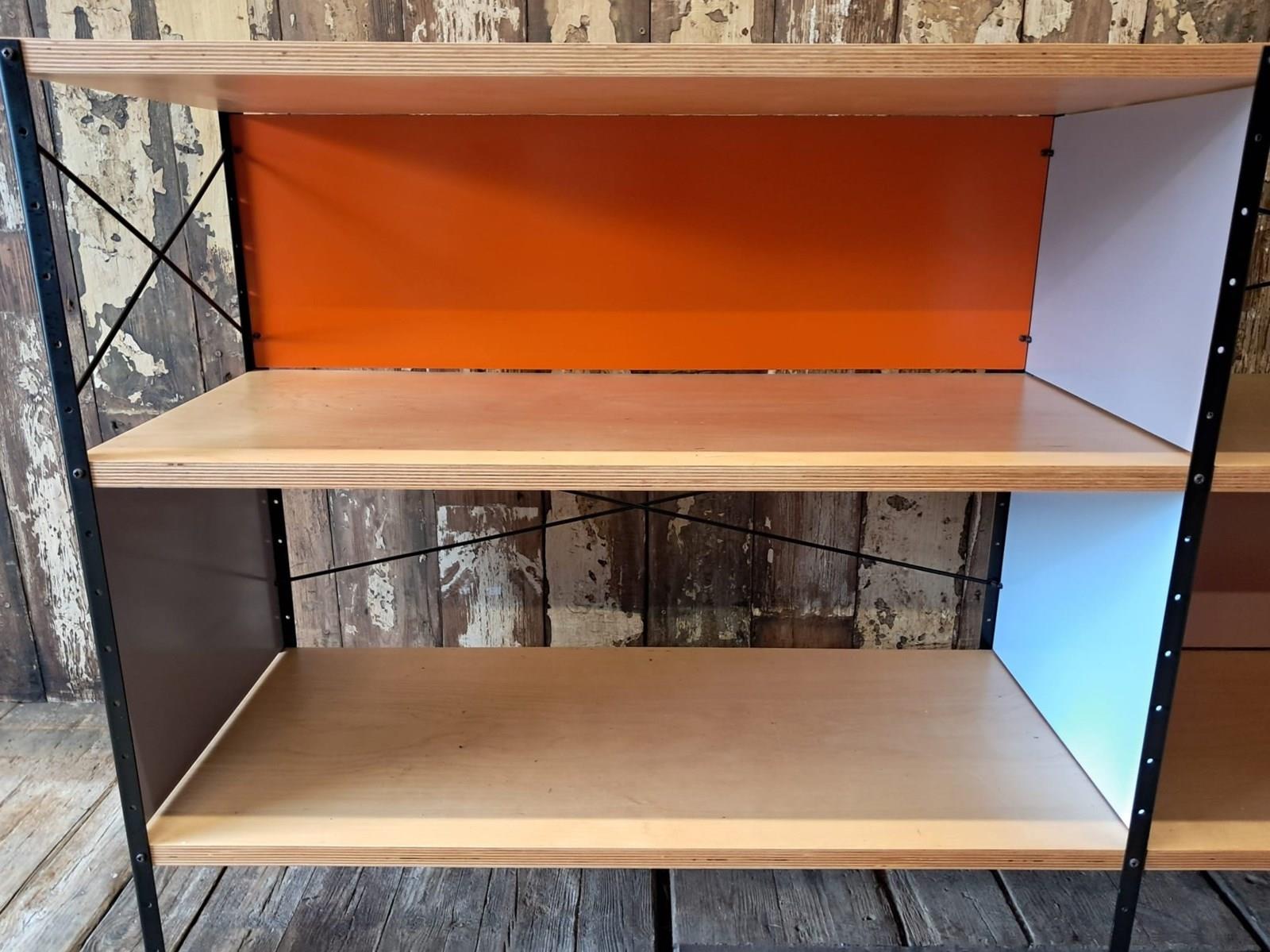 Colourful aluminium panels punctuate the spaces. In collaboration with the Eames Office, Dutch designer Hella Jongerius gave the ESU shelves a new lease of life by revising a new assortment of colours to bring a touch of freshness and modernity to the ESU shelves, while retaining the vintage spirit of 1949 and 1950.