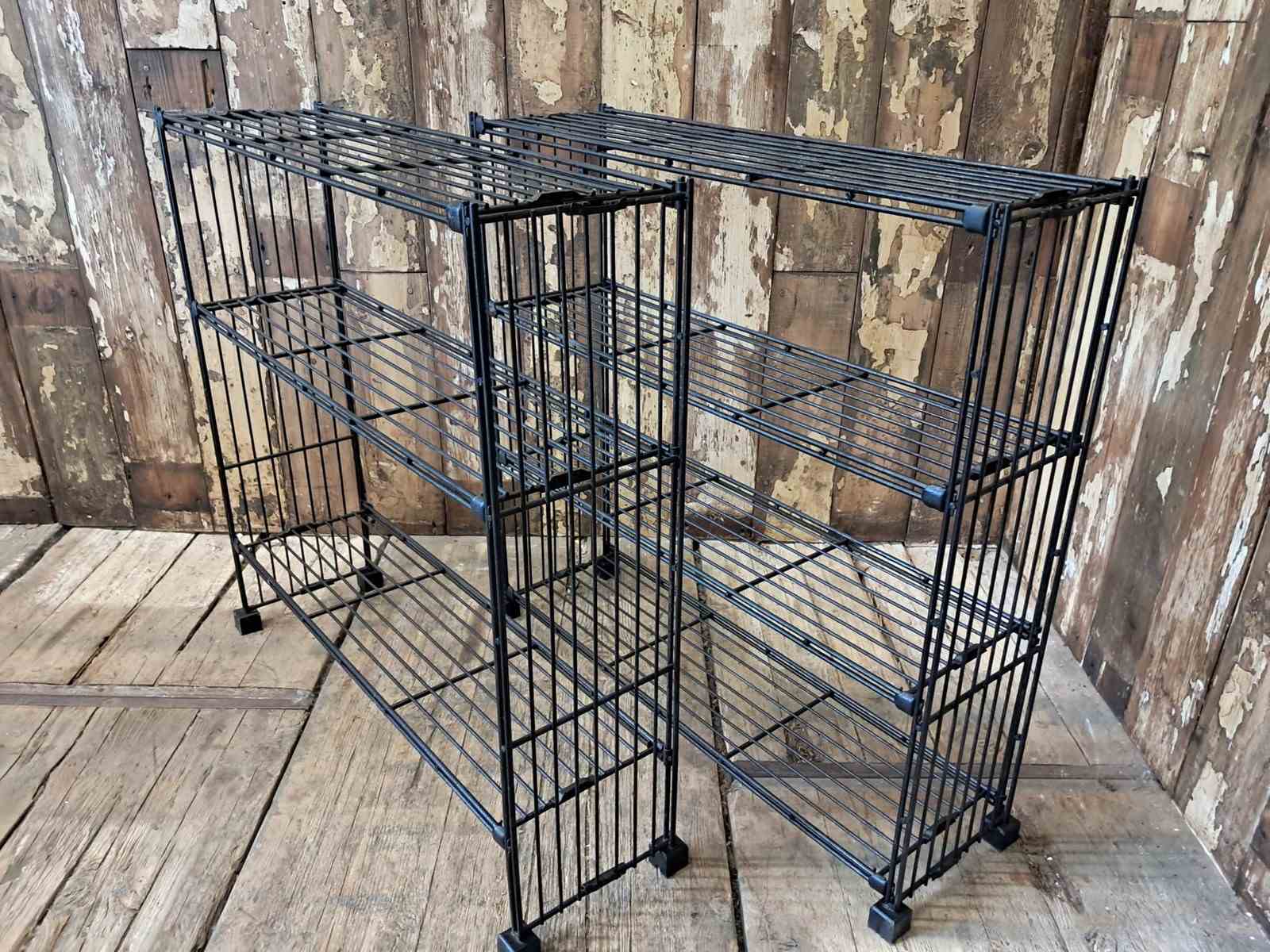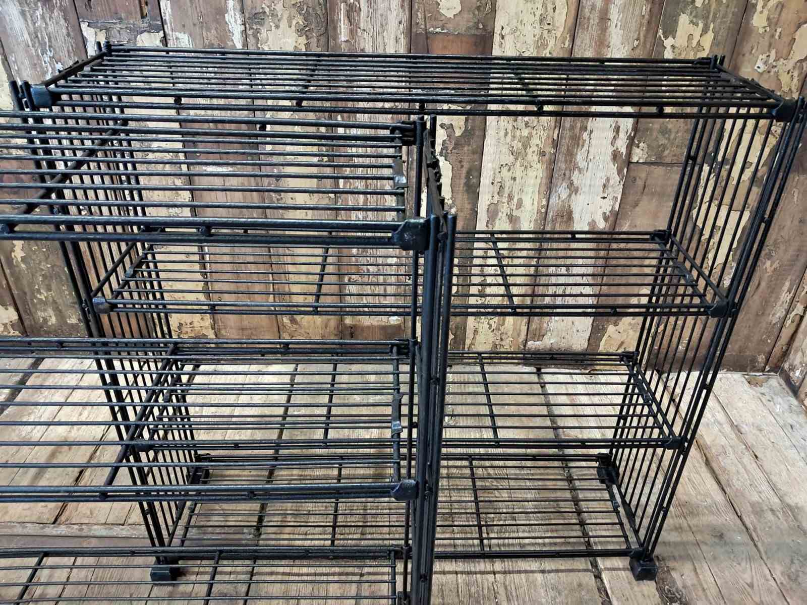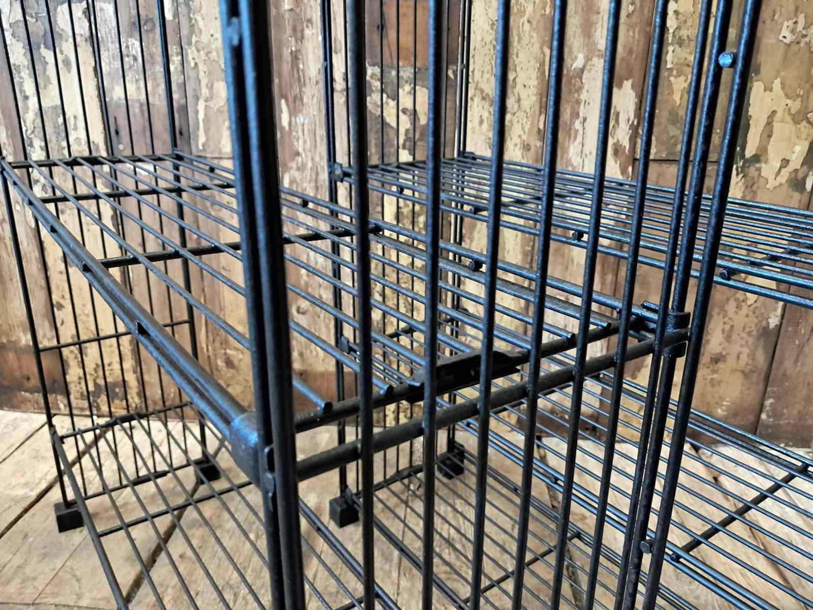 A Dutch black metal wire display shelf rack.