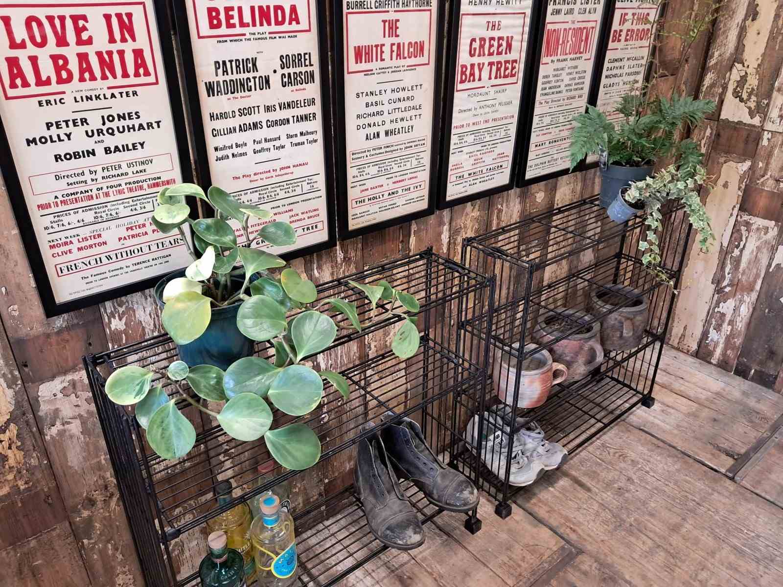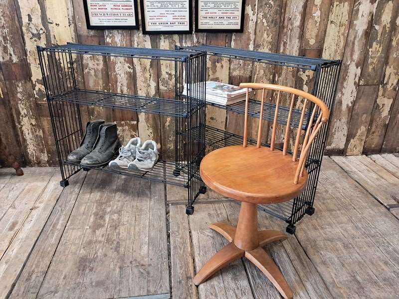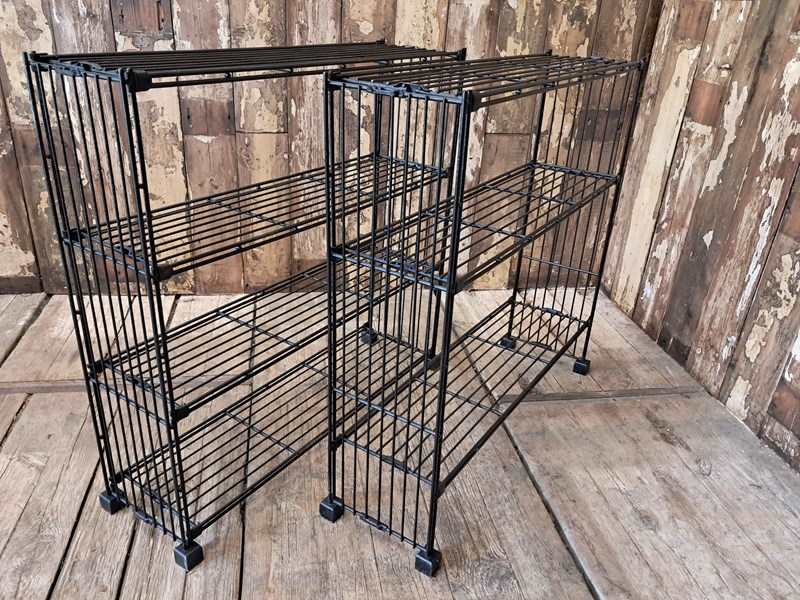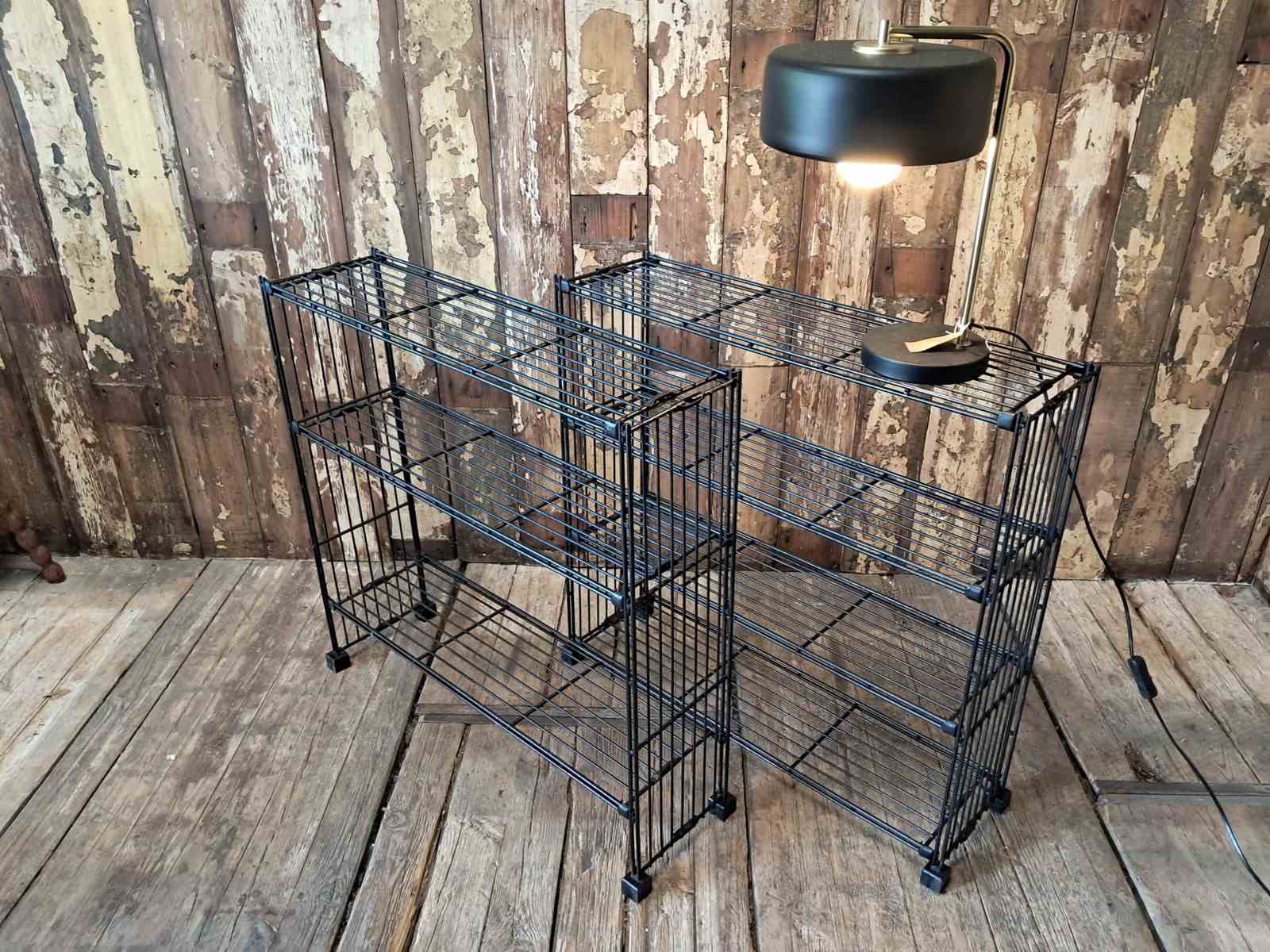 A Dutch black metal wire display shelf rack.