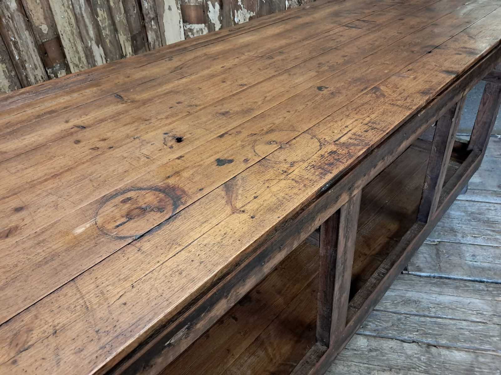 A large rustic Lancashire mill pine bench circa early 1900s.