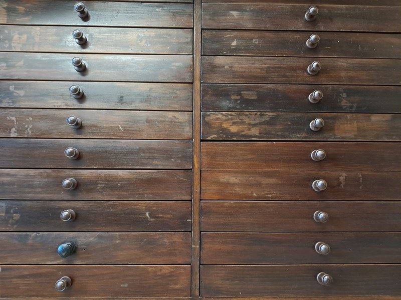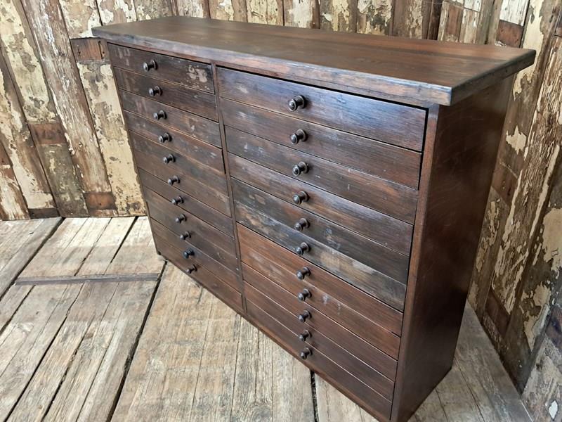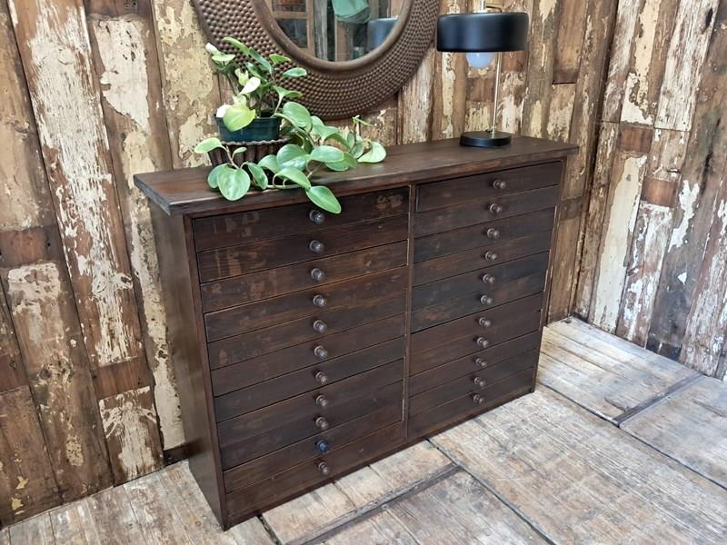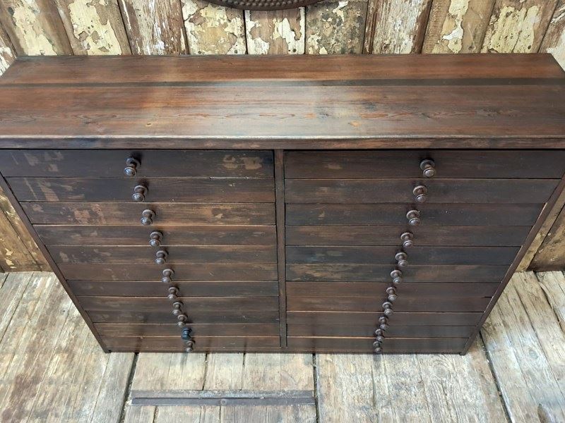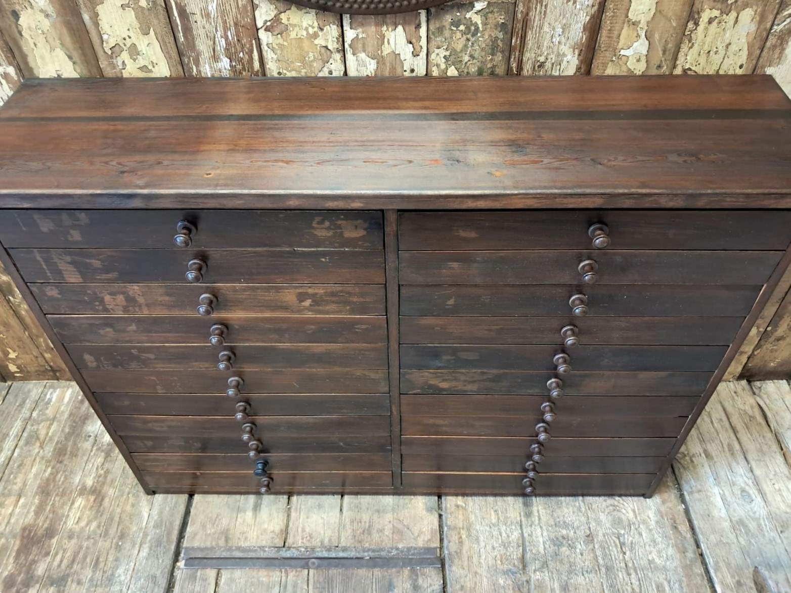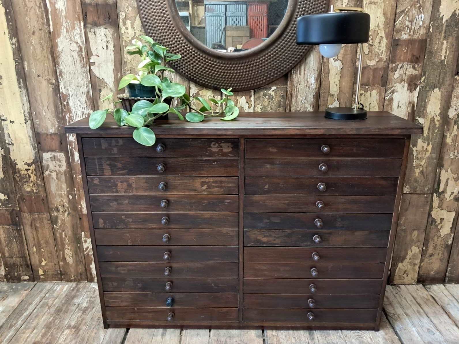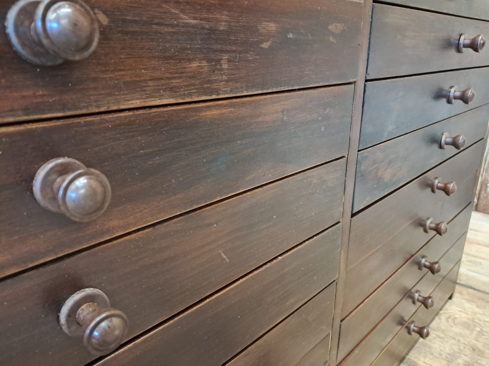 22 drawers in total, 11 a side with original Bakelite knob handles (1 replacement).