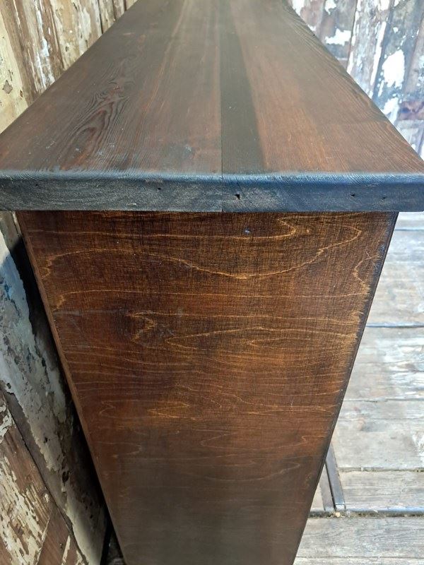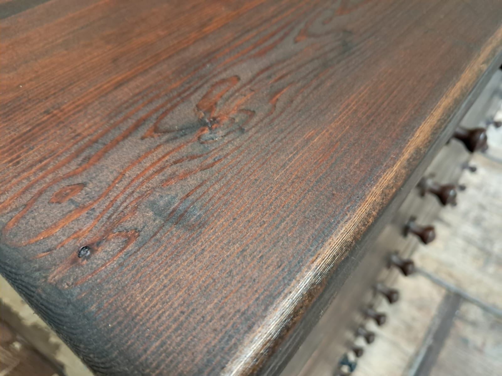 Gorgeously worn dark pine patina with various shades within the wood shining through, a lovely piece originally made in the 70’s for a private collector.