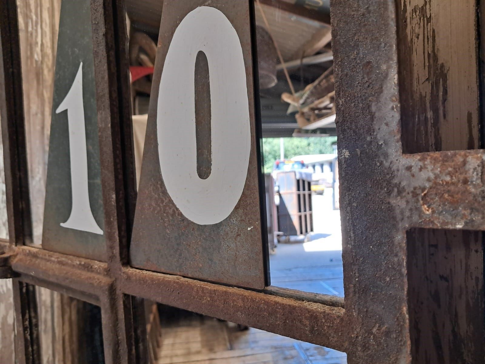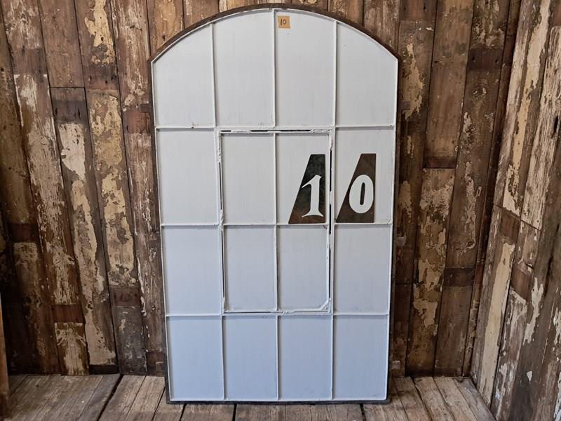 A large arched top, 16 panel, cast iron factory window mirror, circa 1900’s.