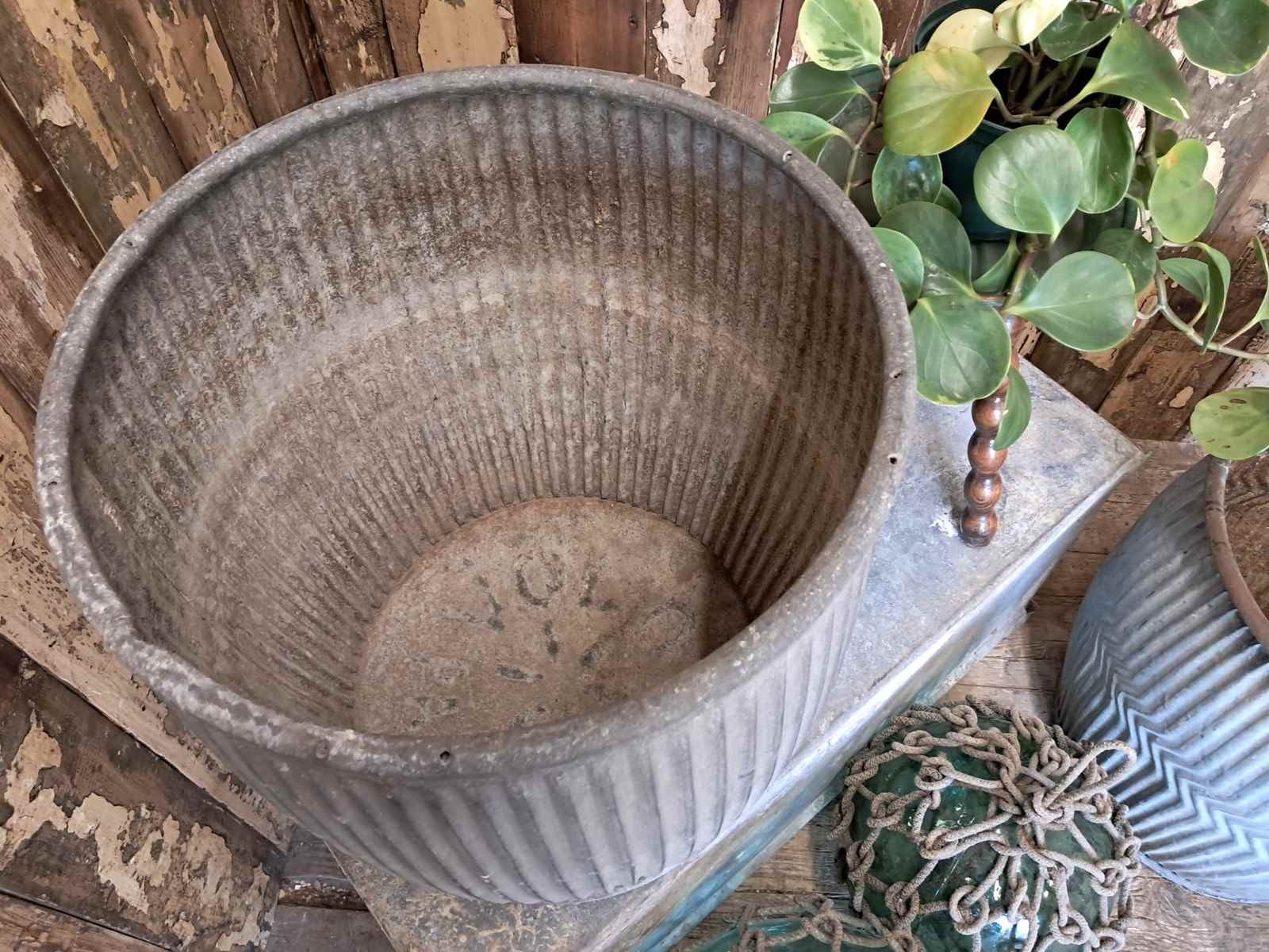 Also pictured with our Vintage Dolly Tub with chevron flutes, listed separately.