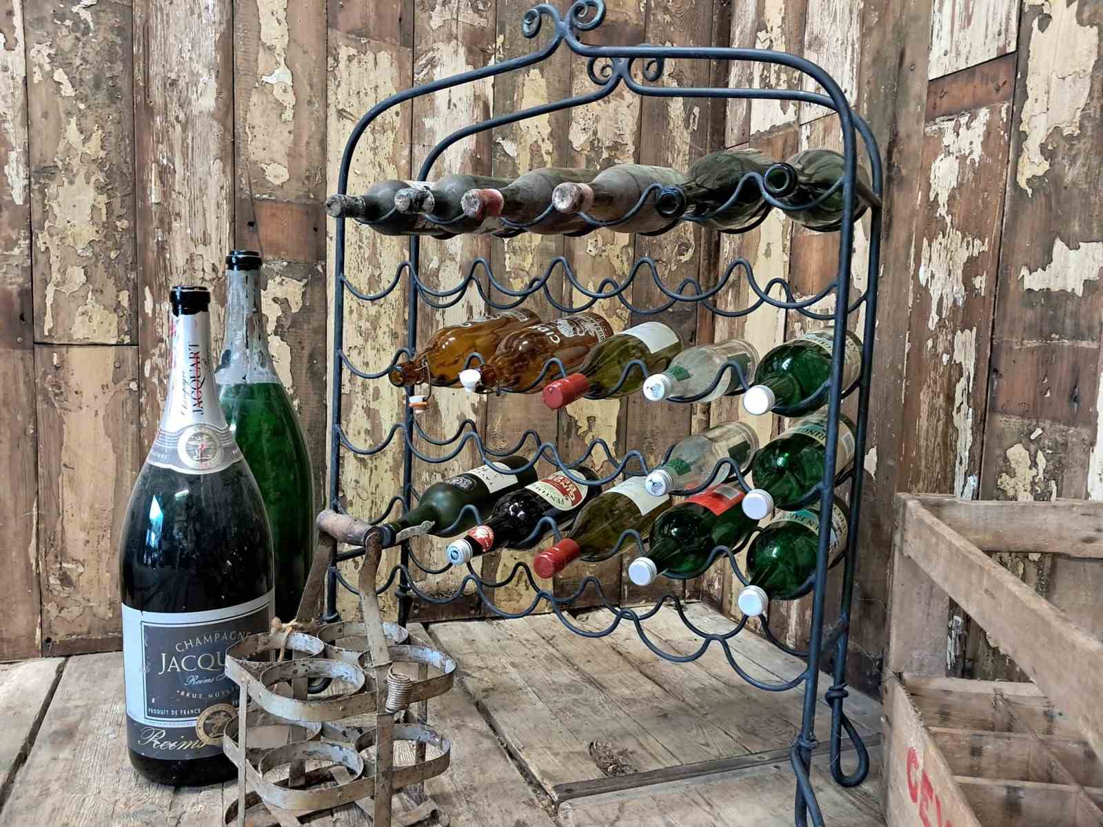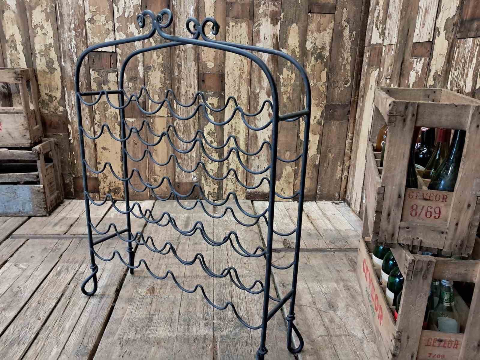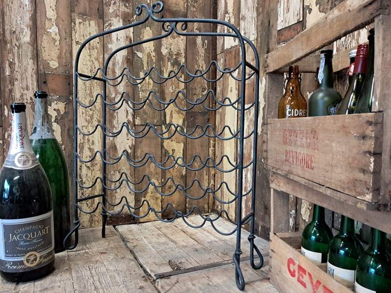 With 36 bottle holders, handmade in black steel, this lovely freestanding rack is simple in design with hand-forged blacksmith quality.