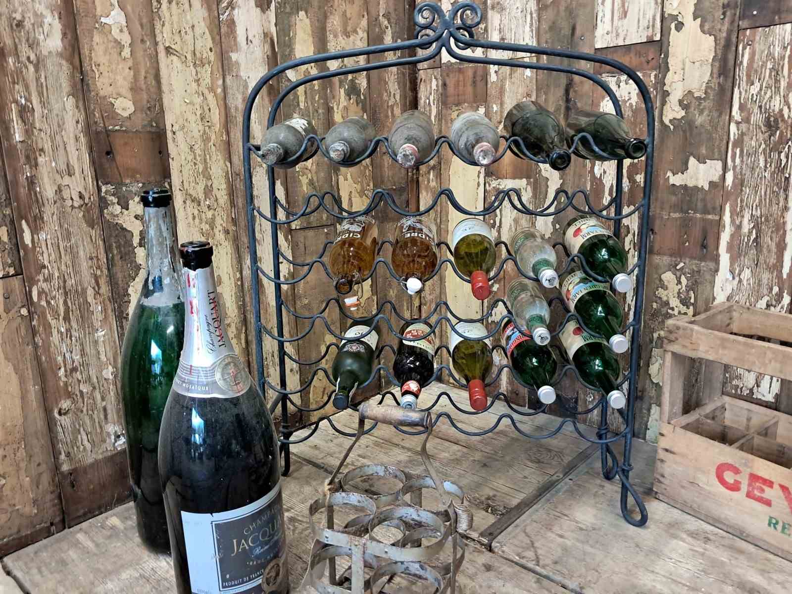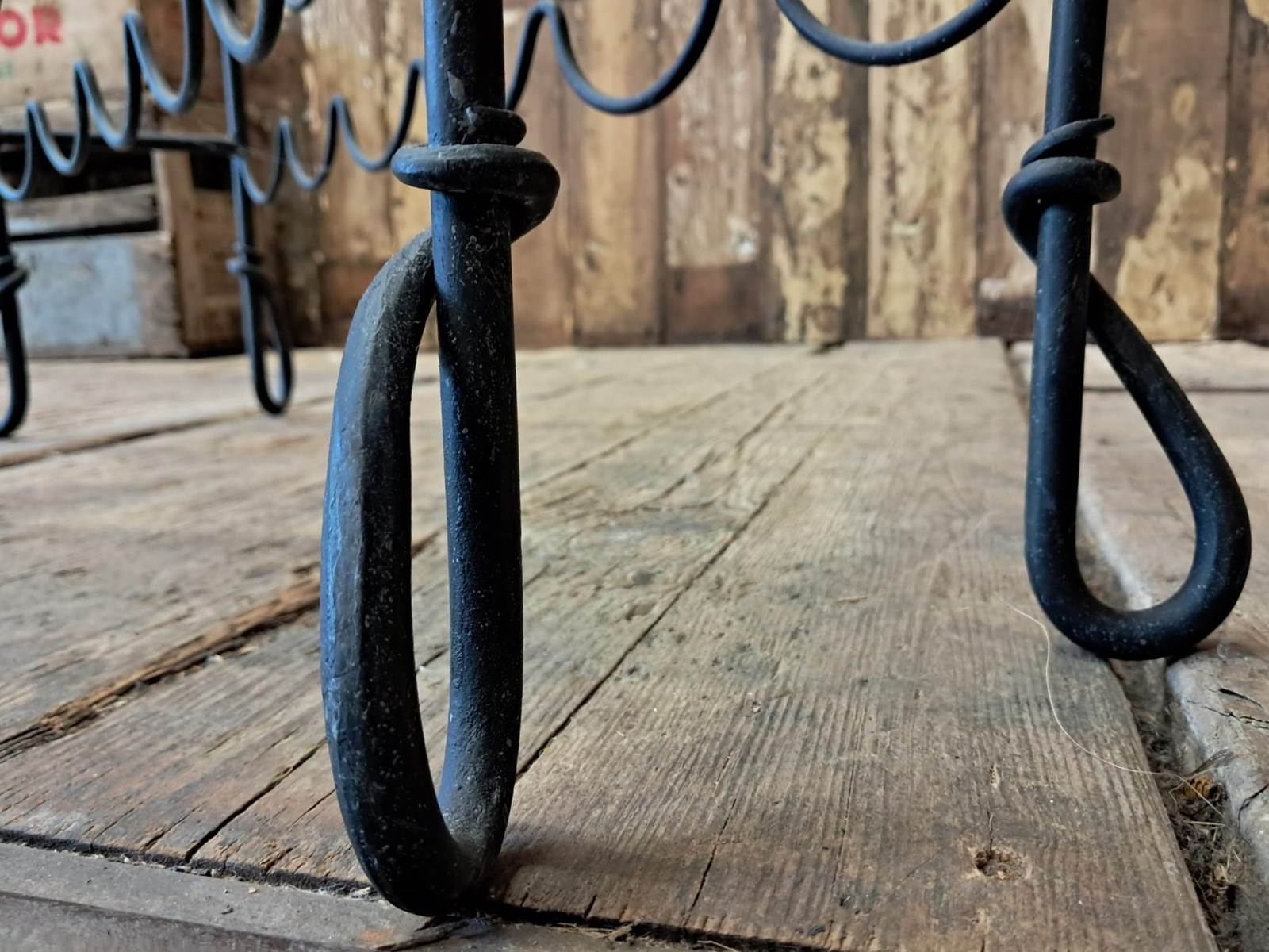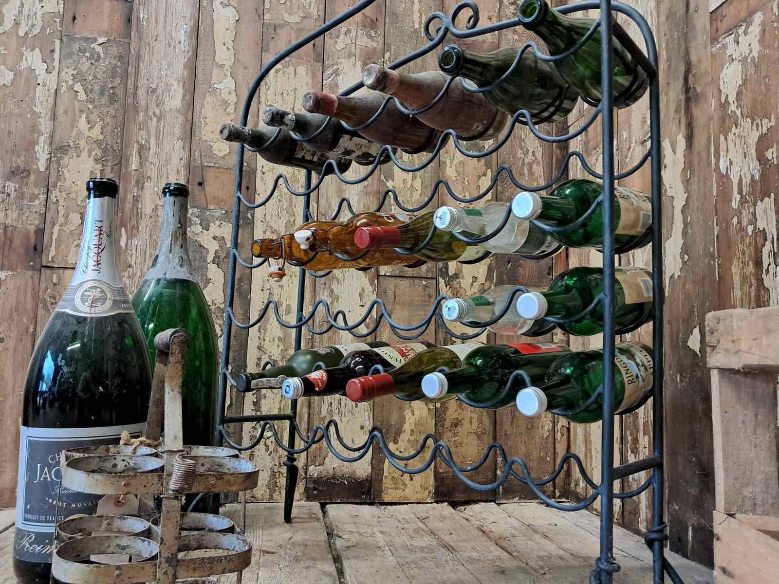 With 36 bottle holders, handmade in black steel, this lovely freestanding rack is simple in design with hand-forged blacksmith quality.