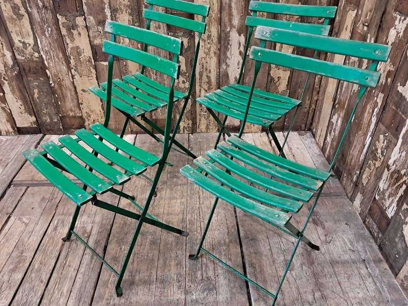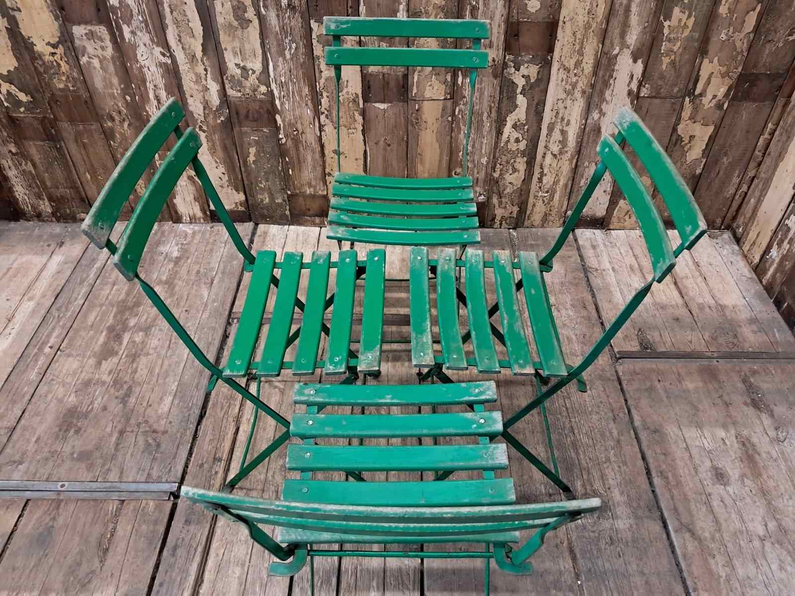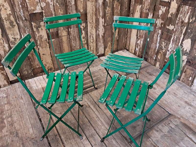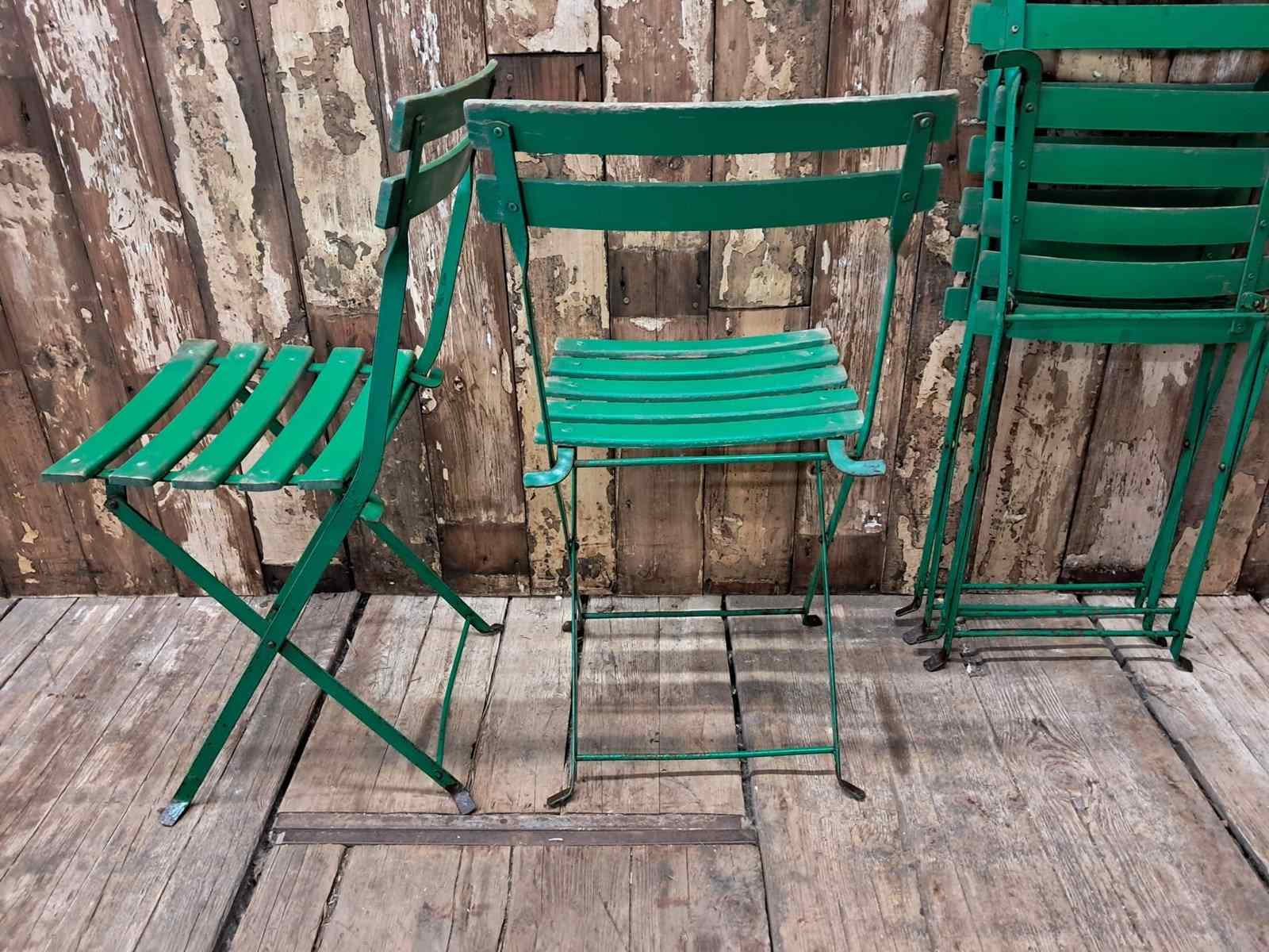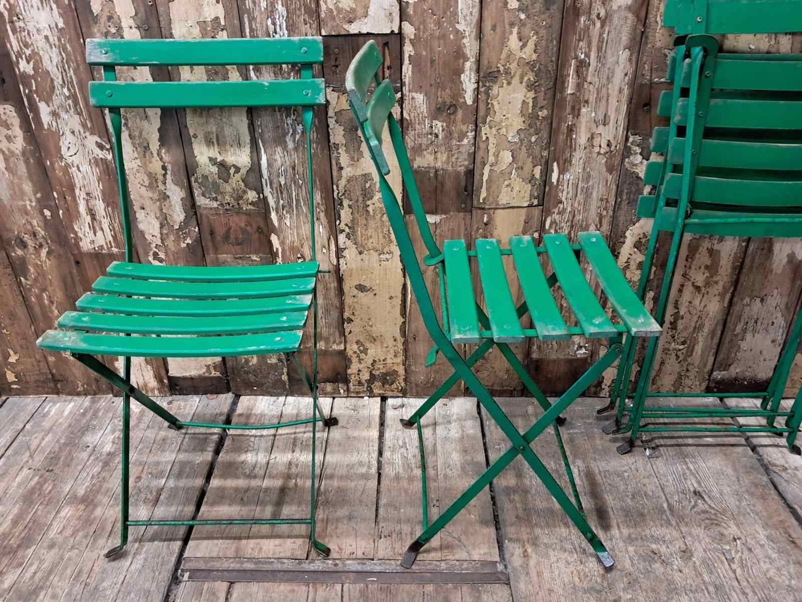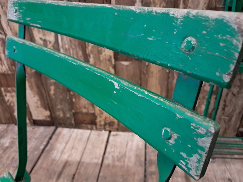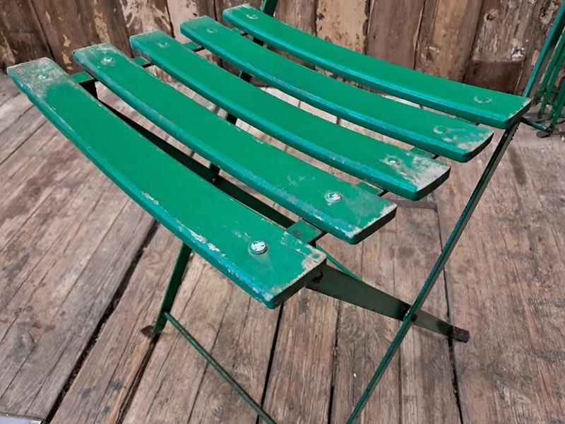 Nice and sturdy metal frame with wooden slats in lovely deep green.