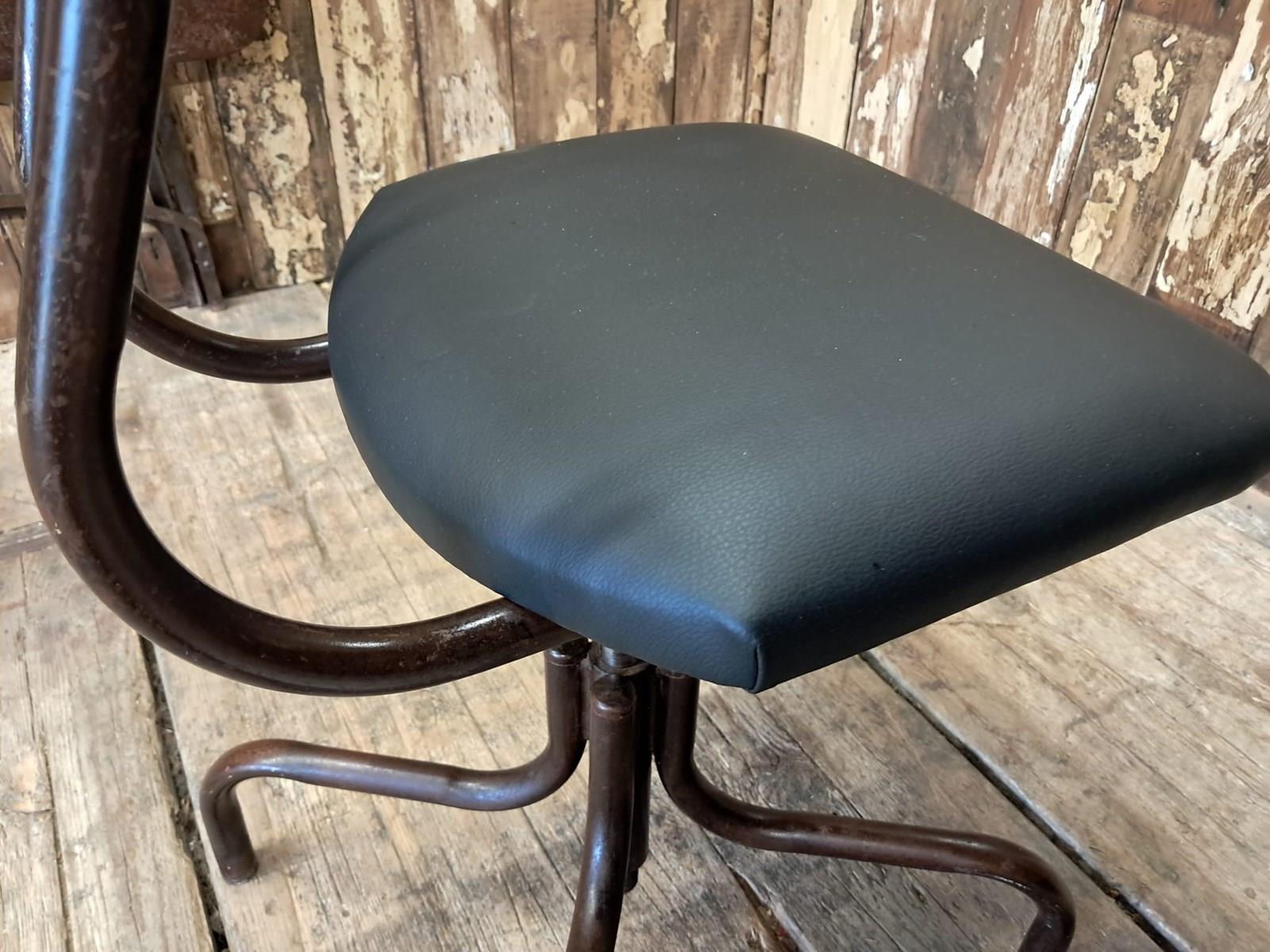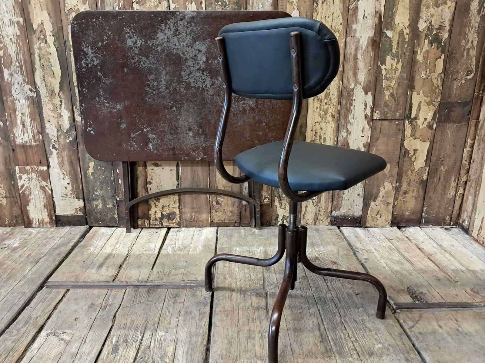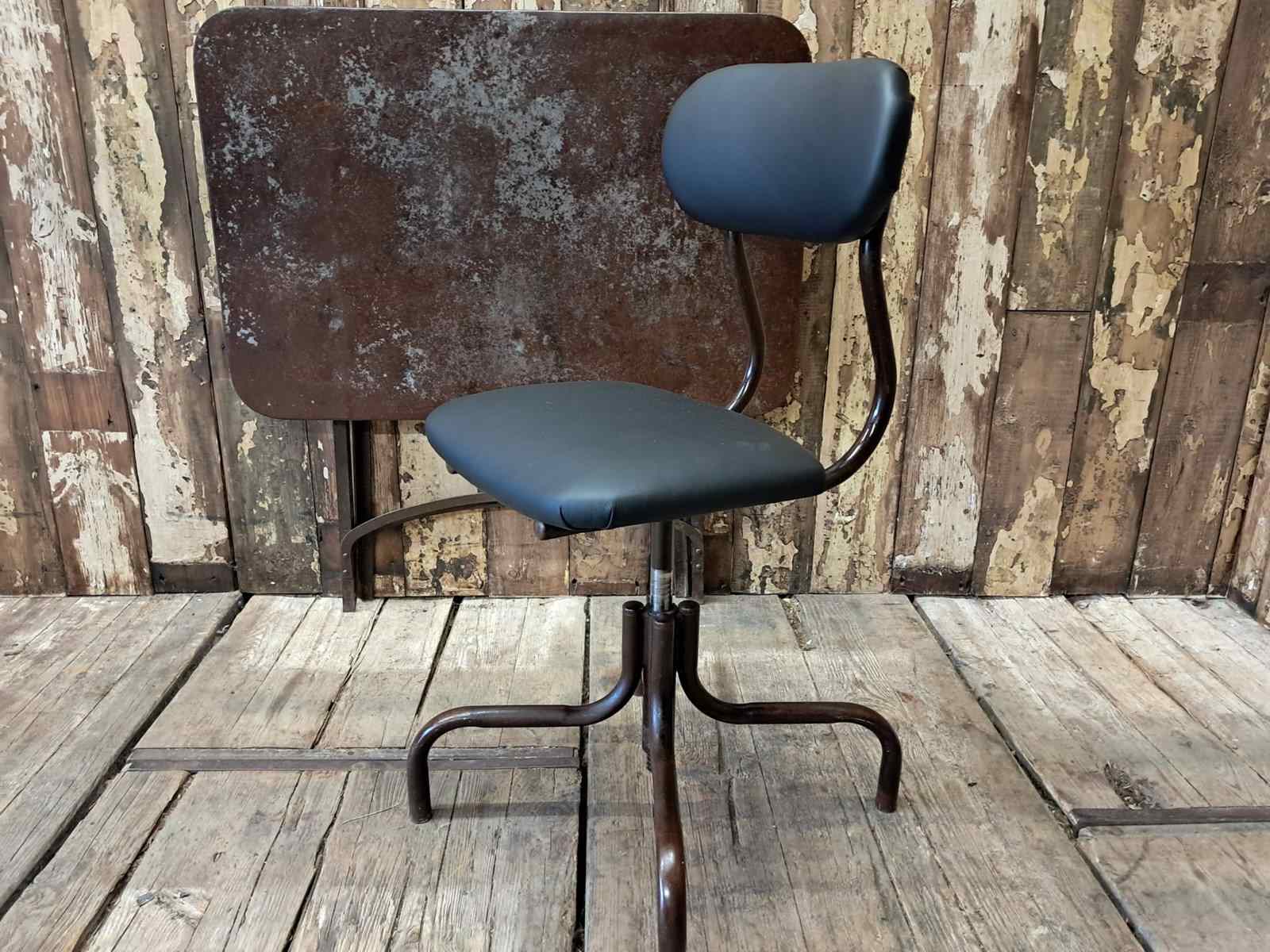 A mid century French industrial office chair with lacquered steel frame.