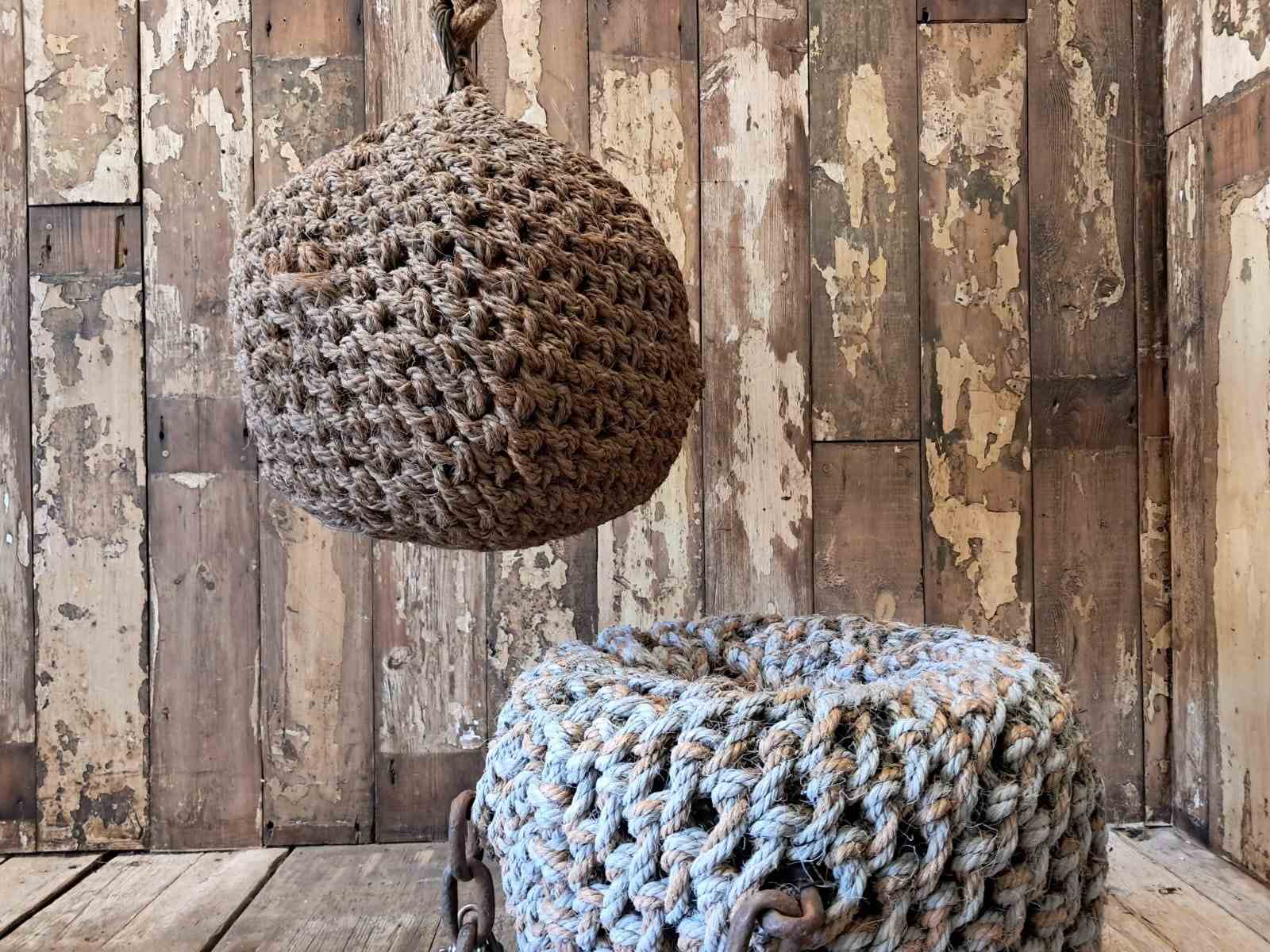 An original early 1900’s rope fender, hand knotted and made with hemp rope.