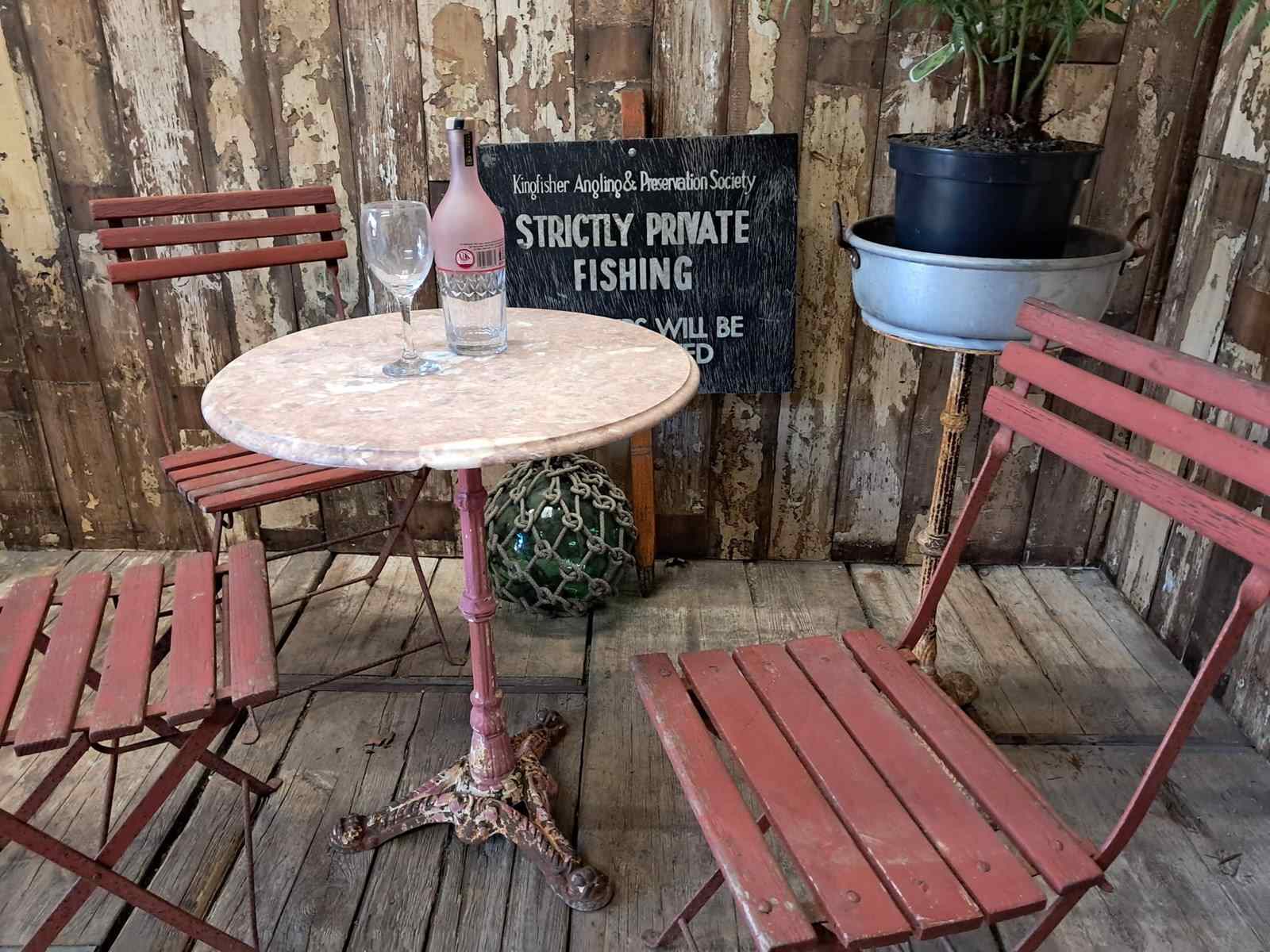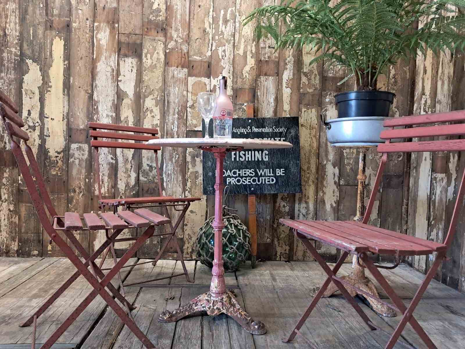 An antique French round bistro table.