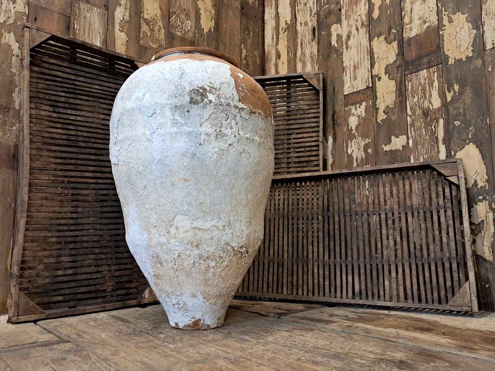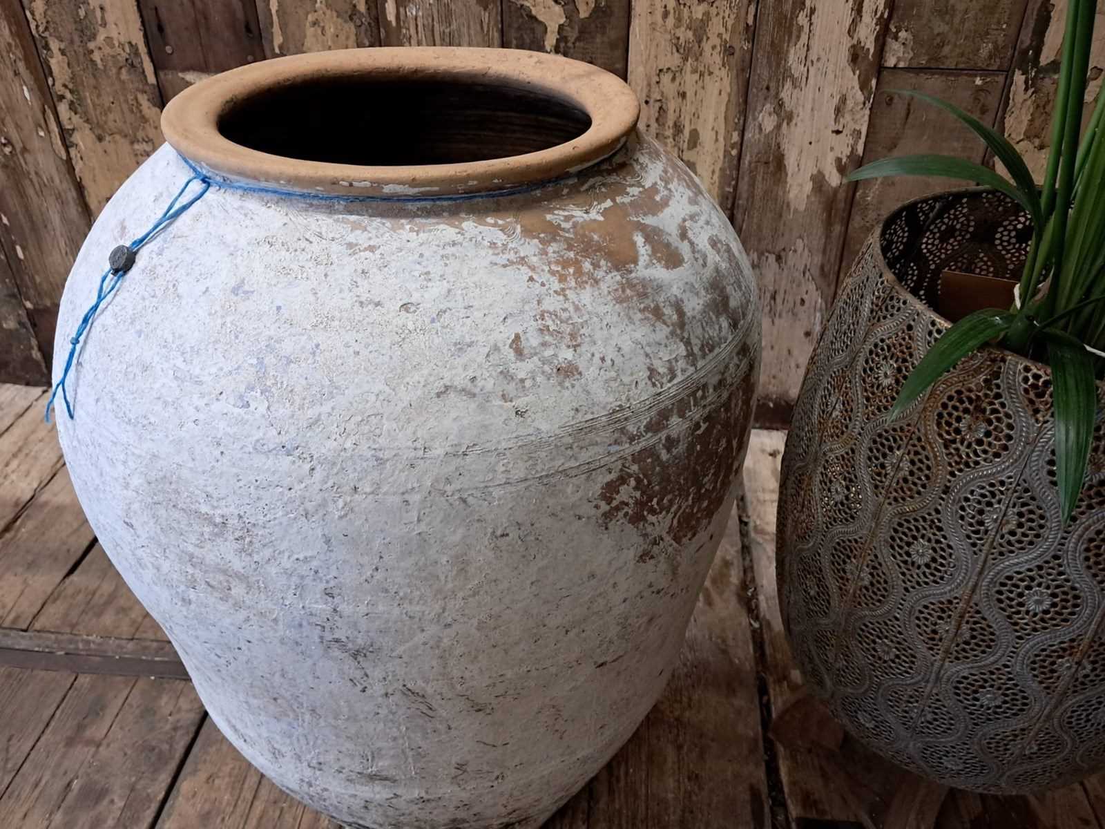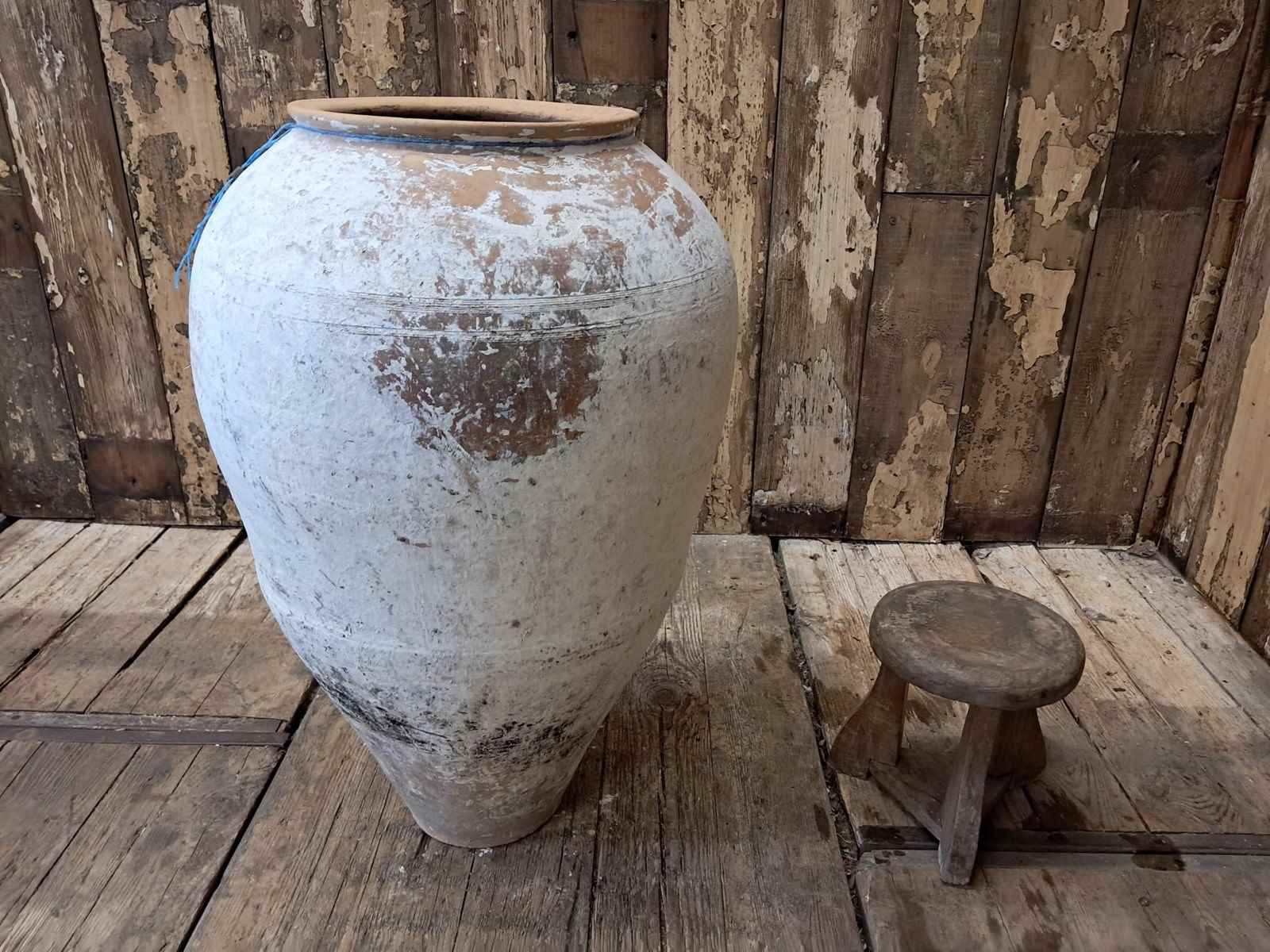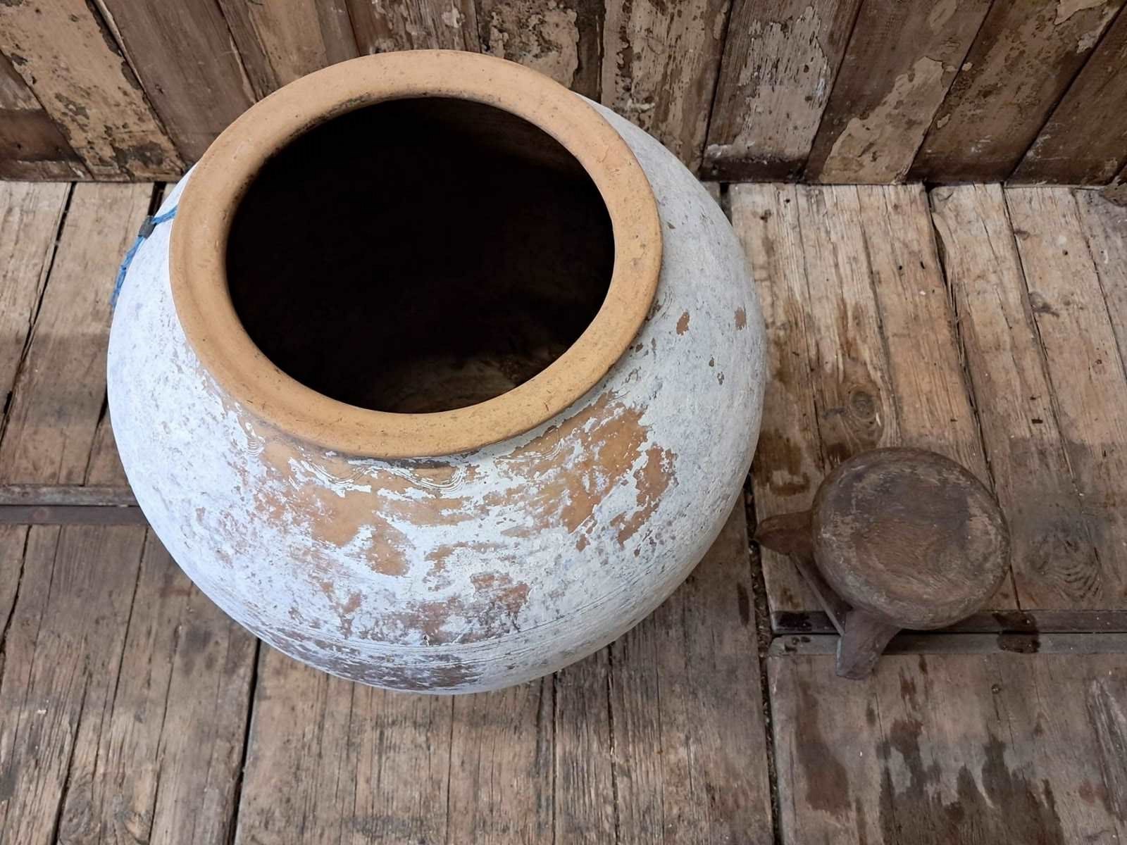 A medium whitewash floor standing terracotta pot from Crete.