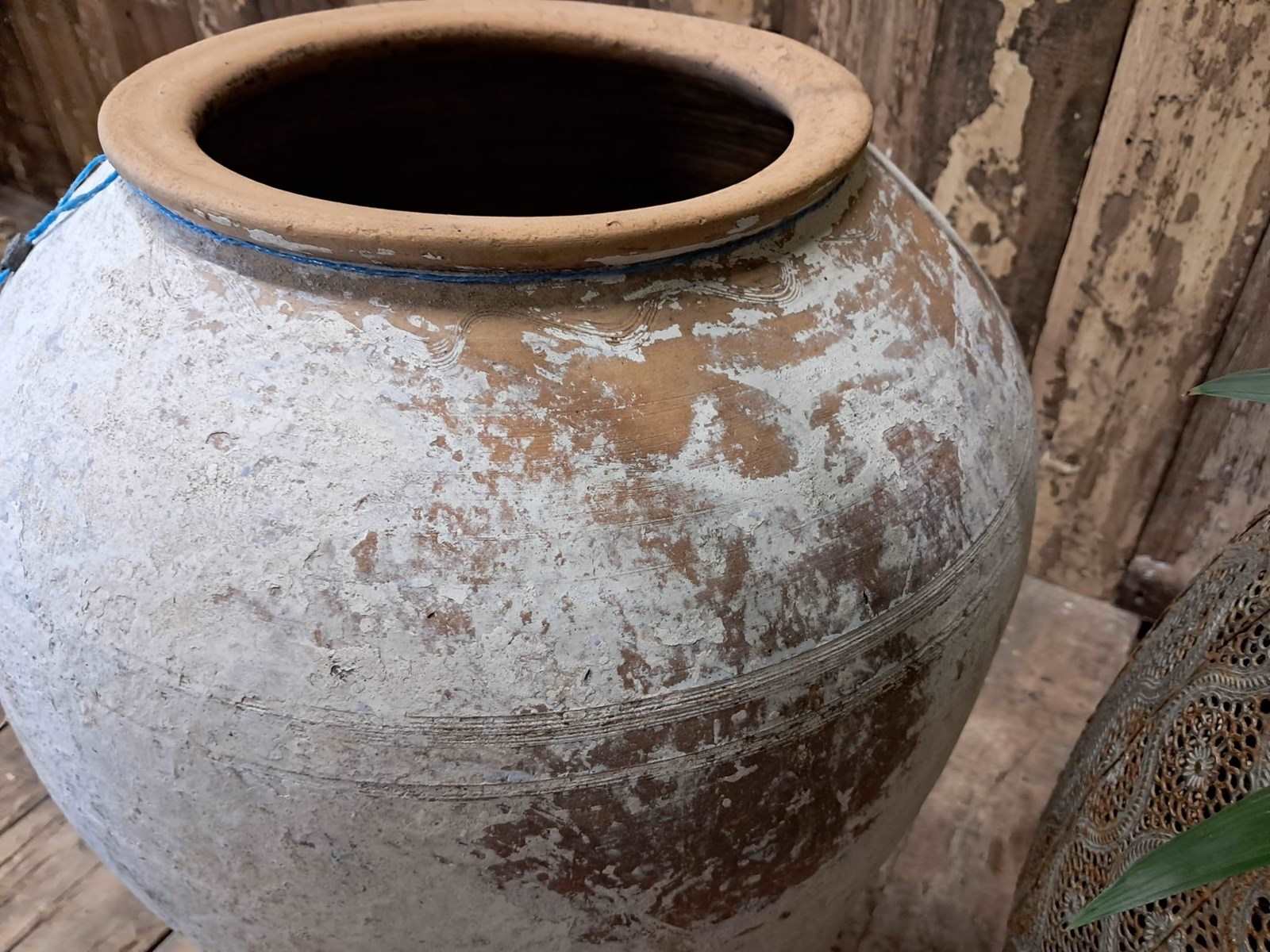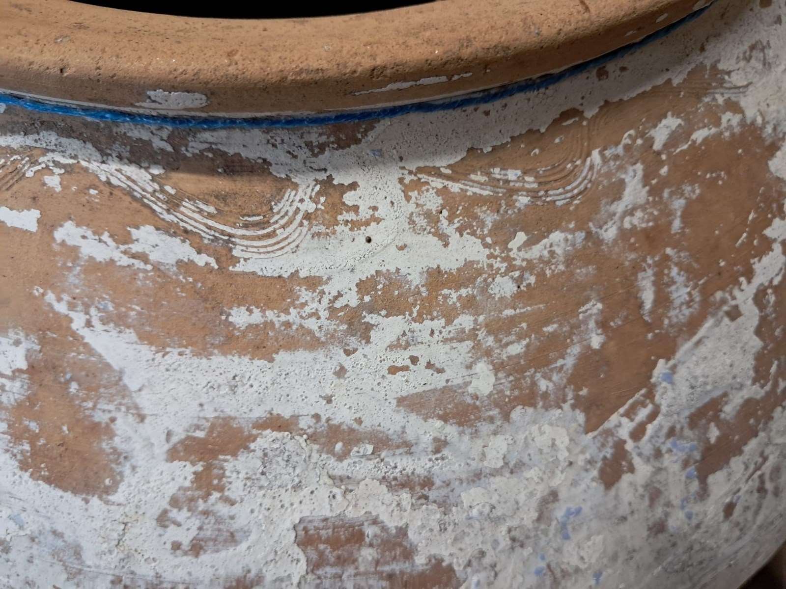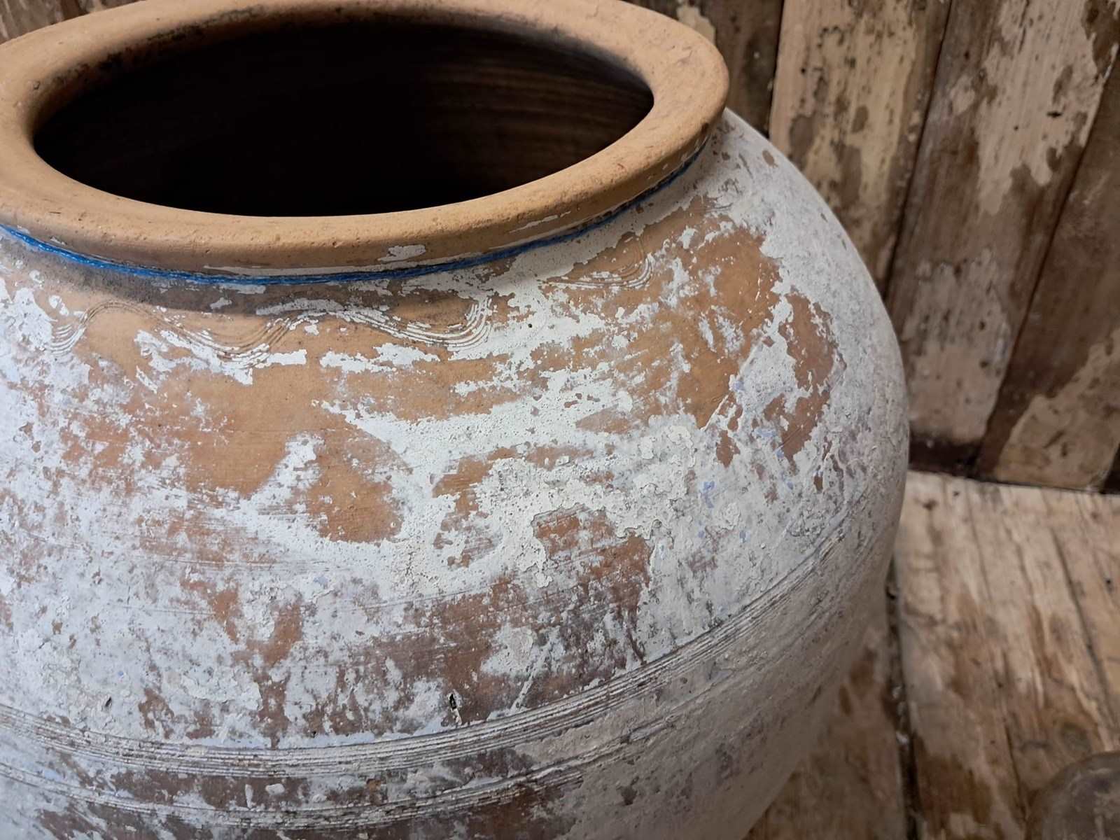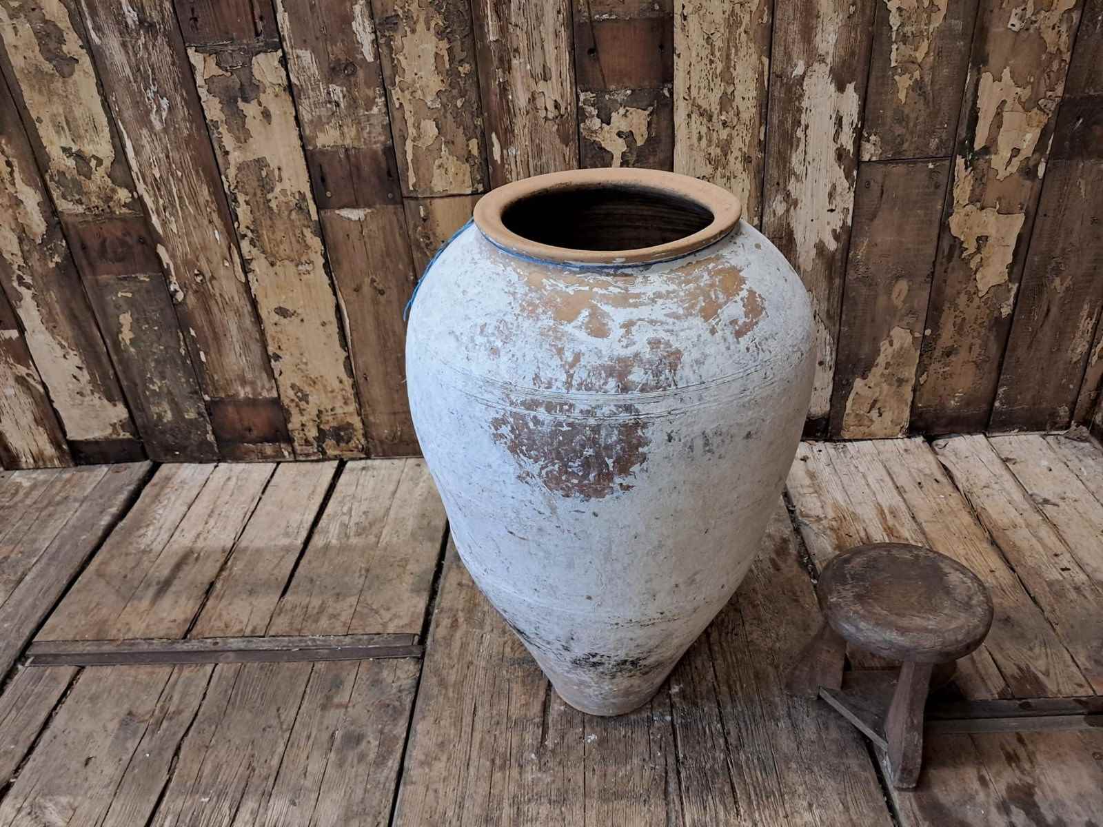 A medium whitewash floor standing terracotta pot from Crete.
