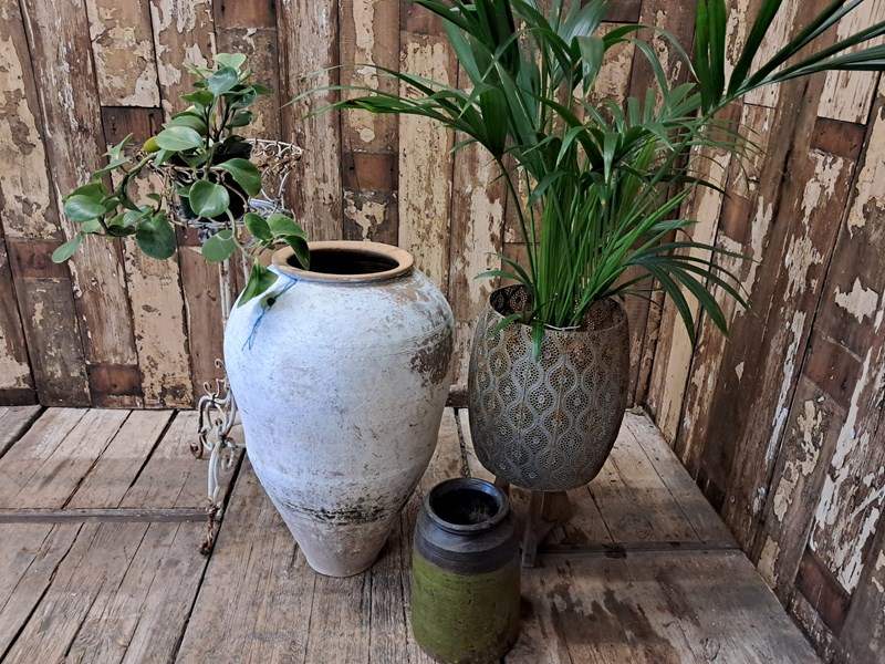 These rustic, imperfect Mediterranean pots are sought after and this softened painted finish is becoming harder to come by.