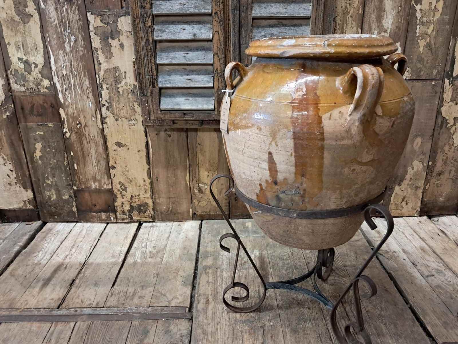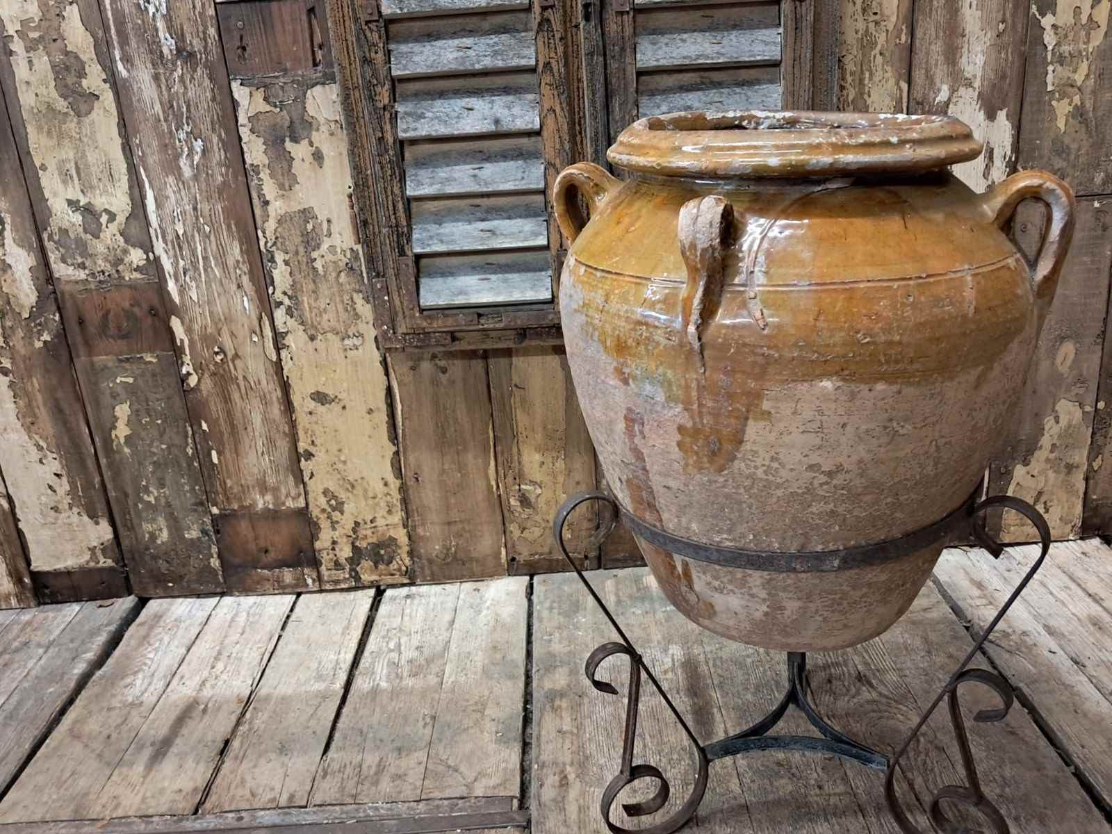 These handmade antique pots were used to store olives and oils and as such have developed the most wonderful patina with deep caramel hues over the years.