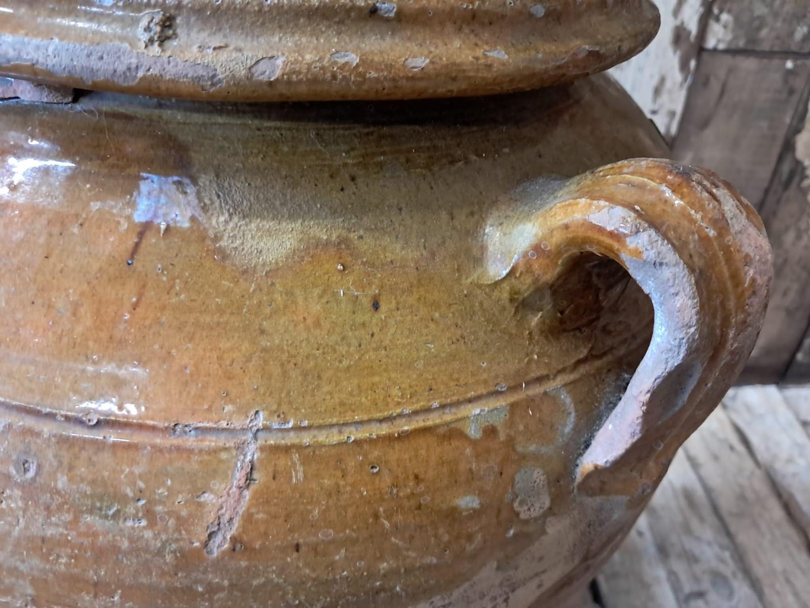 A medium Spanish glazed terracotta olive oil pot, circa 1880 from Catalonia.