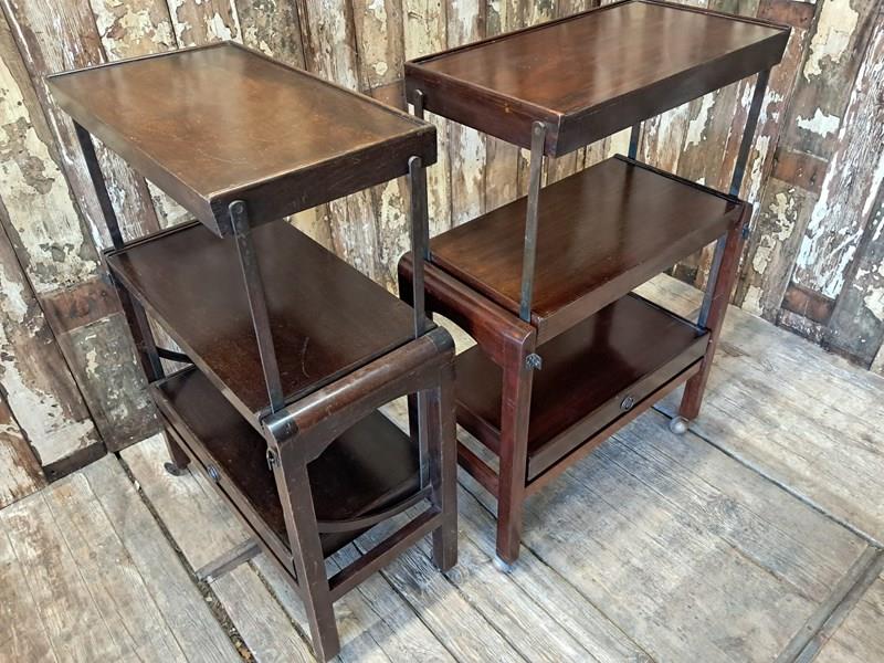 These English tables/shelf units, are designed to fold in multiple configurations for multiple uses.
