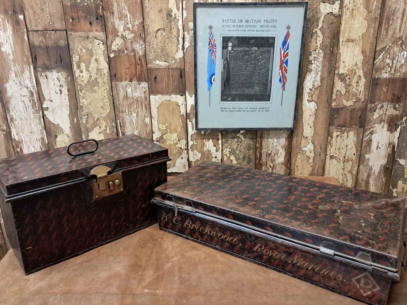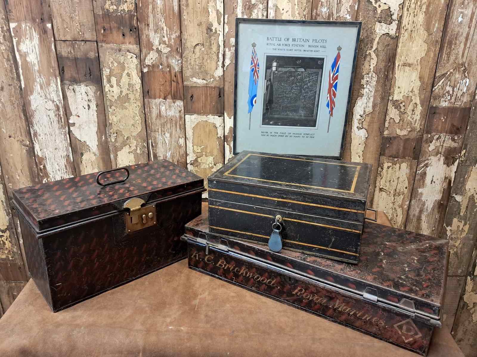 Also pictured with our Military Metal Sports Equipment Trunk and Military Campaign Metal Writing Box, both listed separately.