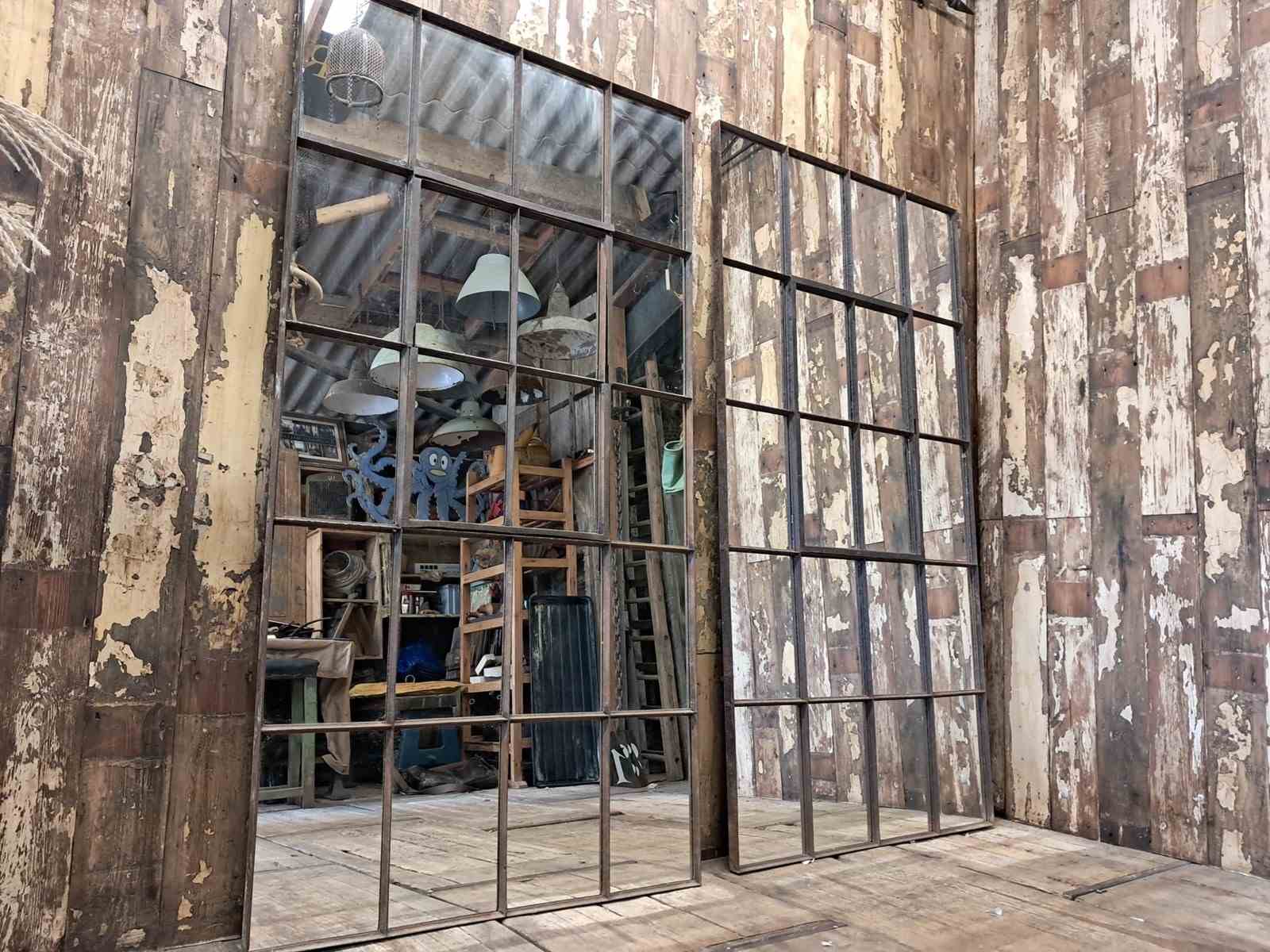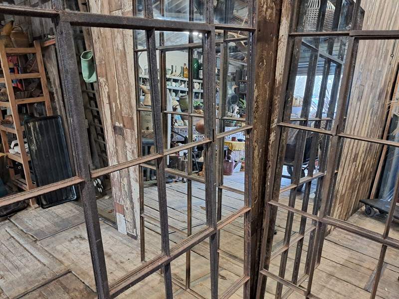 A pair of large 1930’s straight edge steel factory window mirrors.