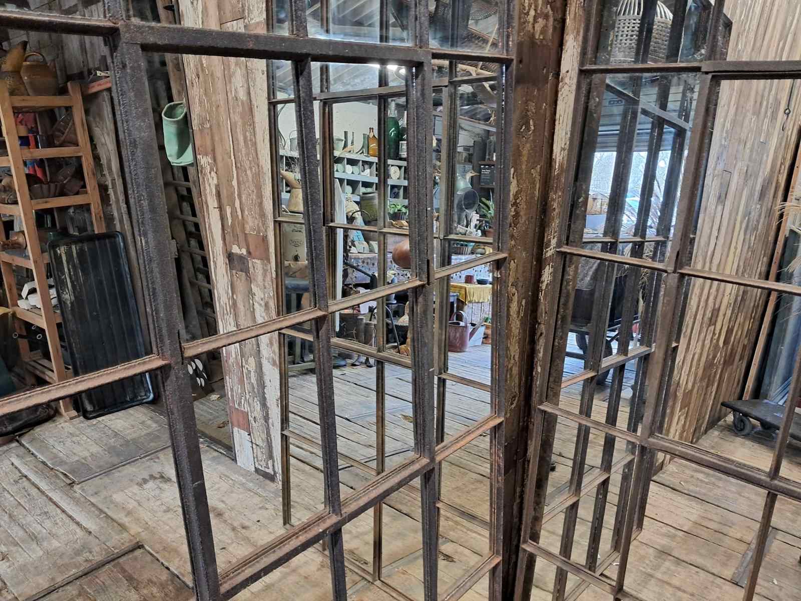 These German windows have 20 panels, a lovely black and rusty patina and thin frame rails.