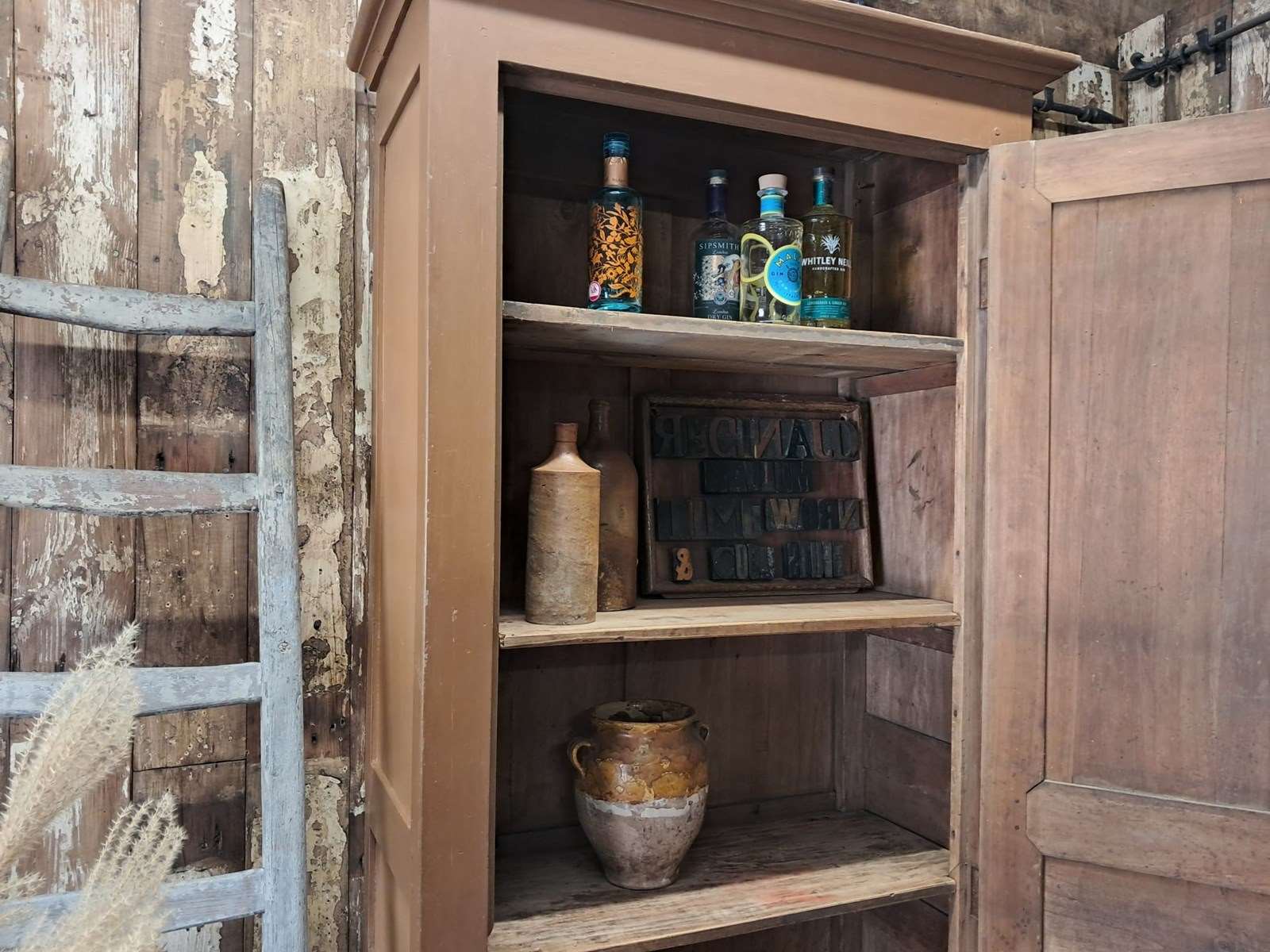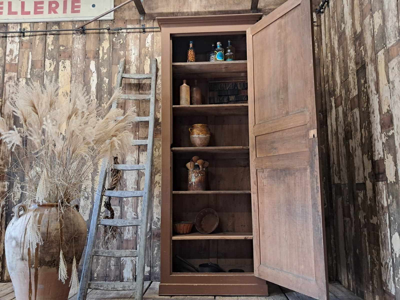 This imposing cupboard has five internal shelves. The exterior is painted in warm shades of brown giving that on trend modern rustic naturalistic vibe.