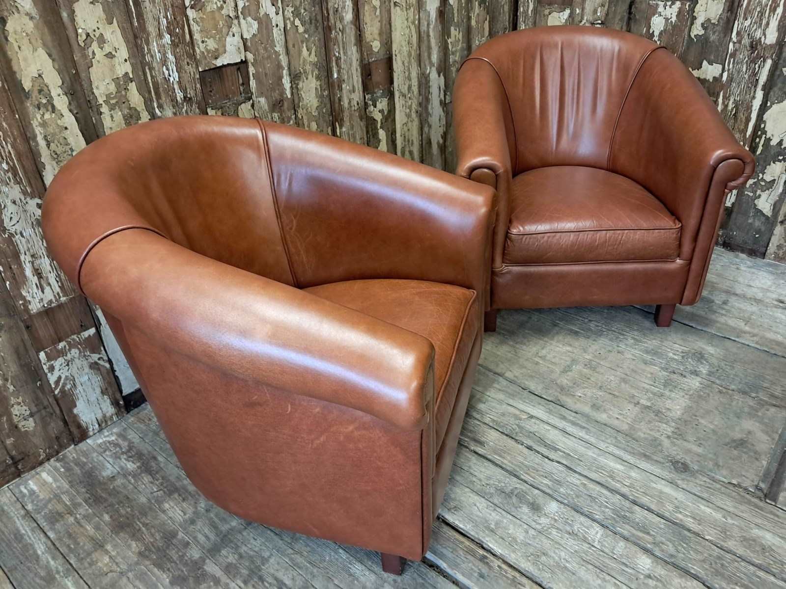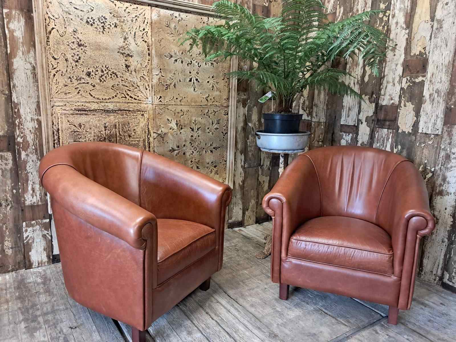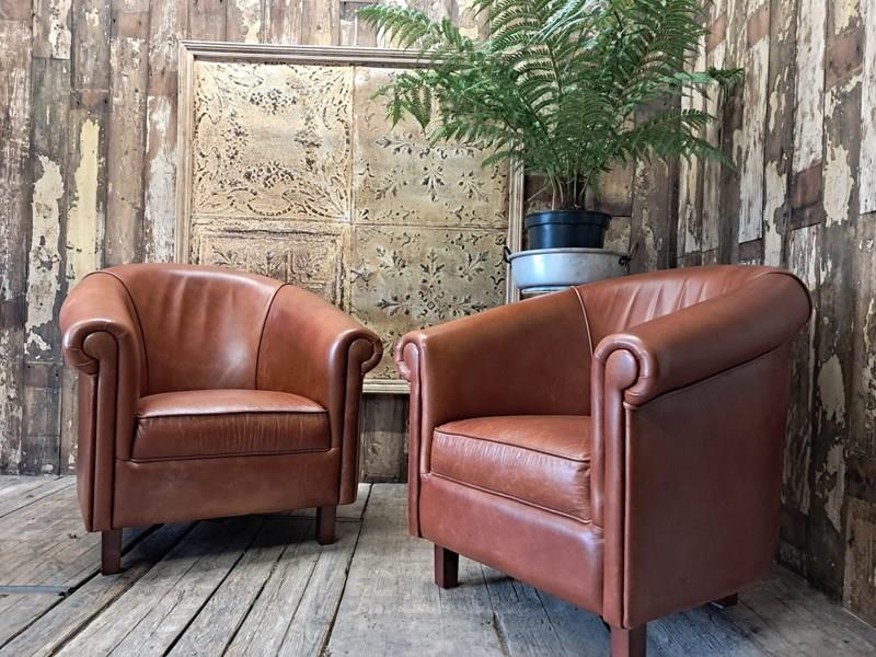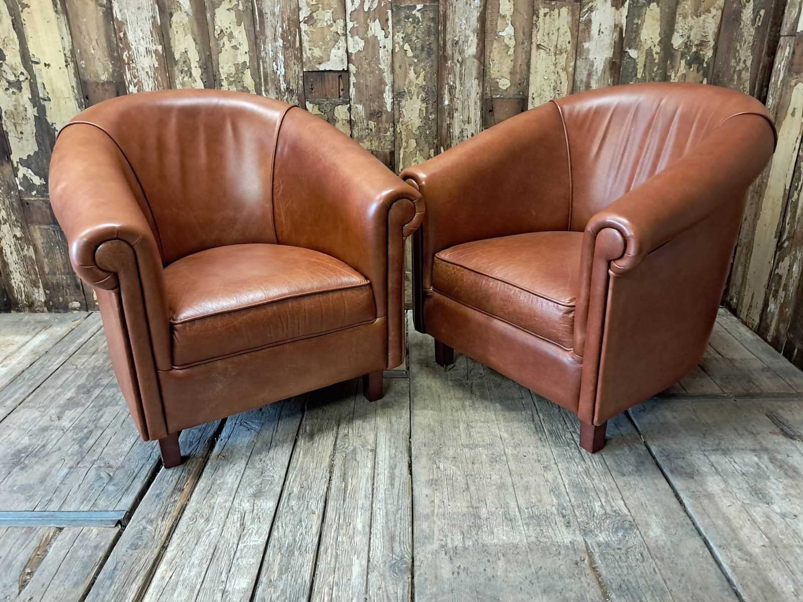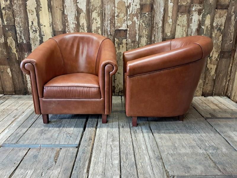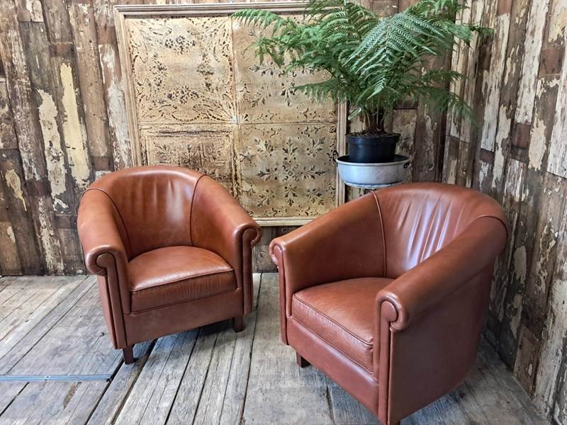 Pair Of Leather Tub Chairs