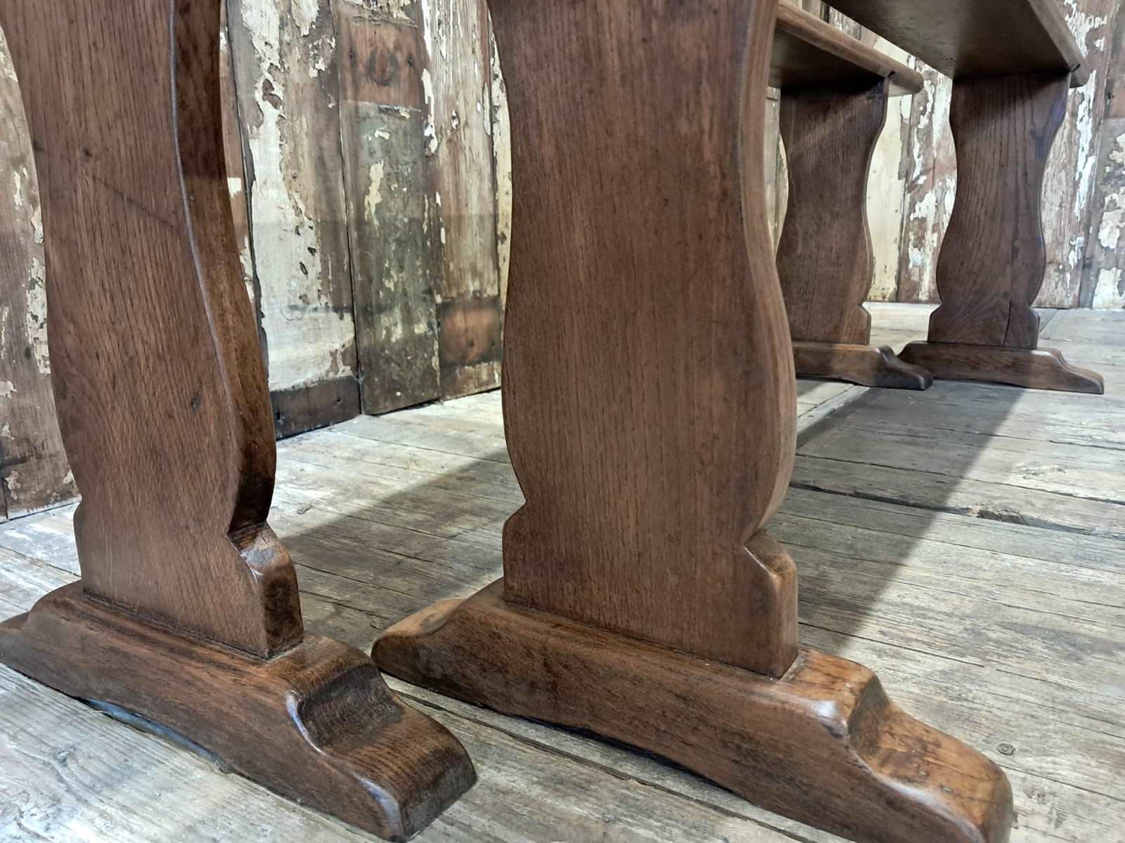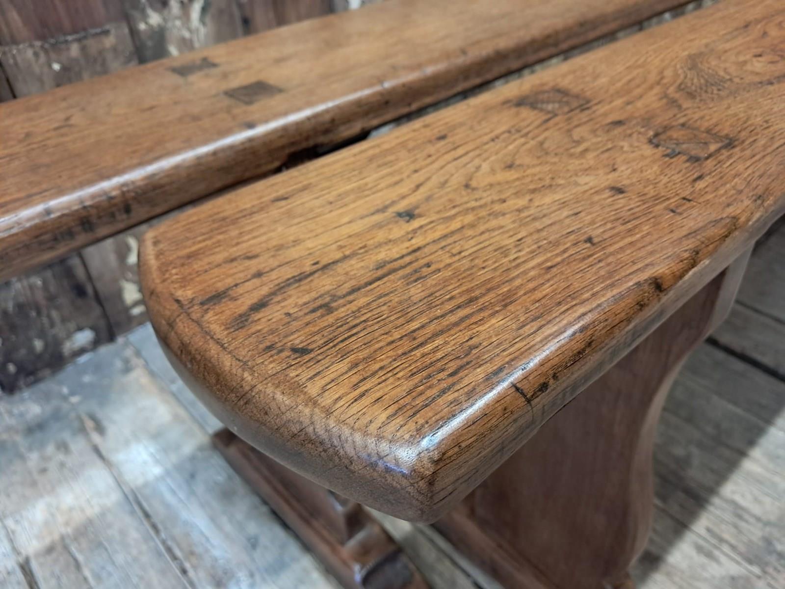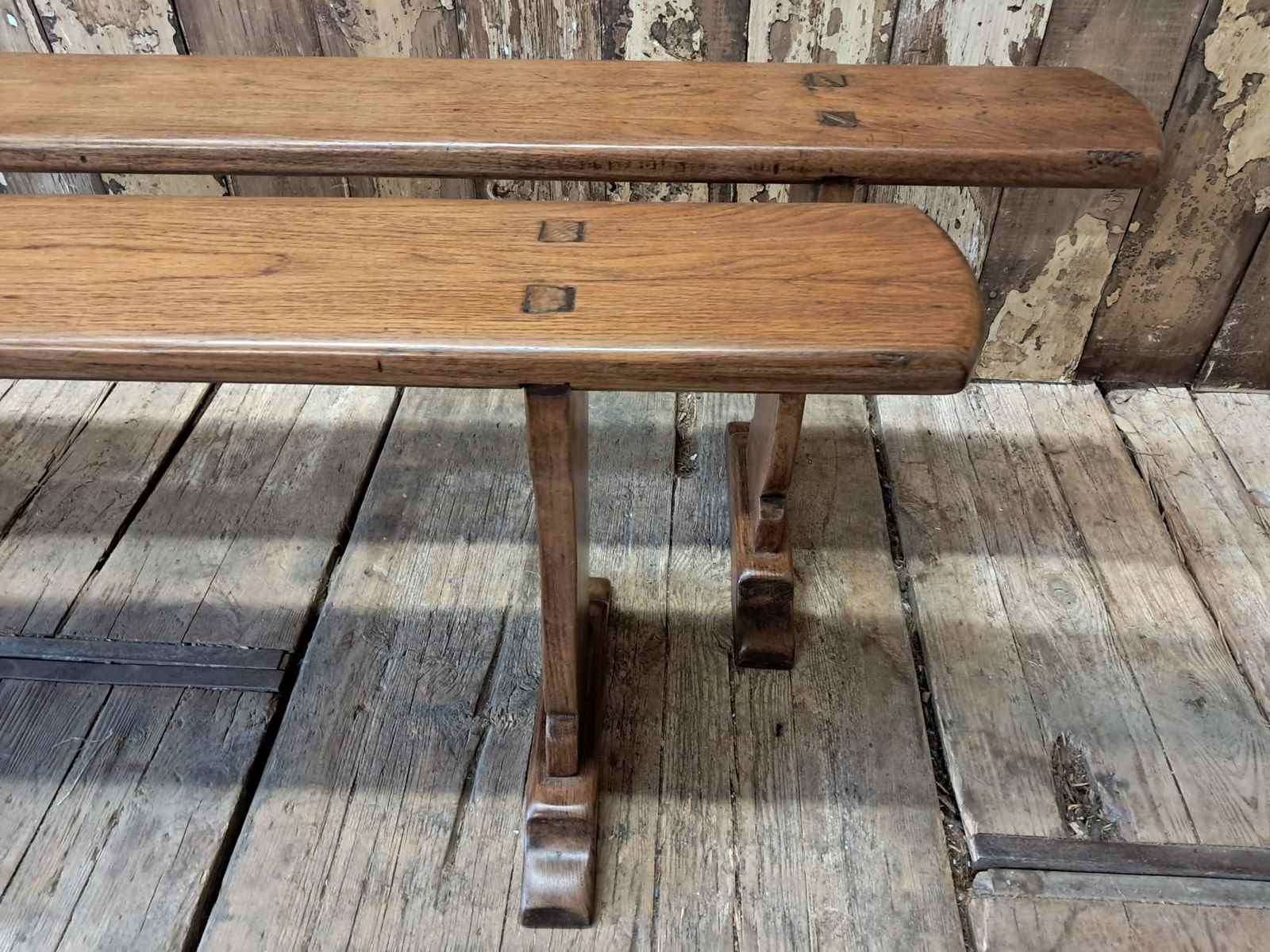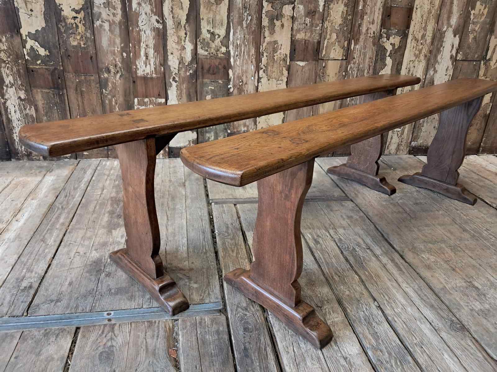 A pair of French oak farmhouse benches, circa 1920.