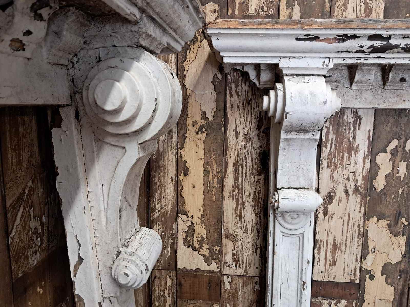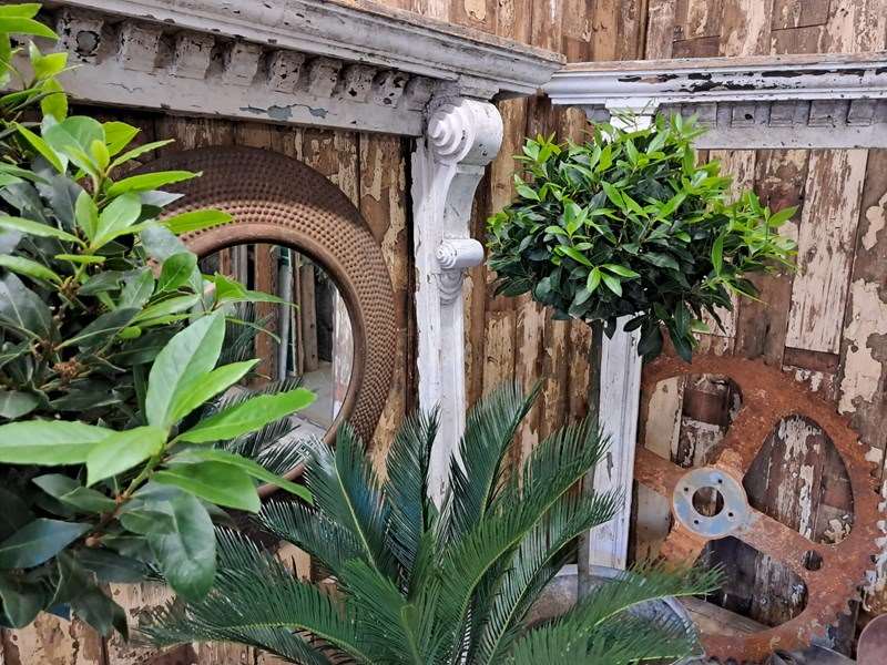 Great decorative display features in lush flaky white paint – perfect in the garden or as artwork/mirror surrounds in the home.