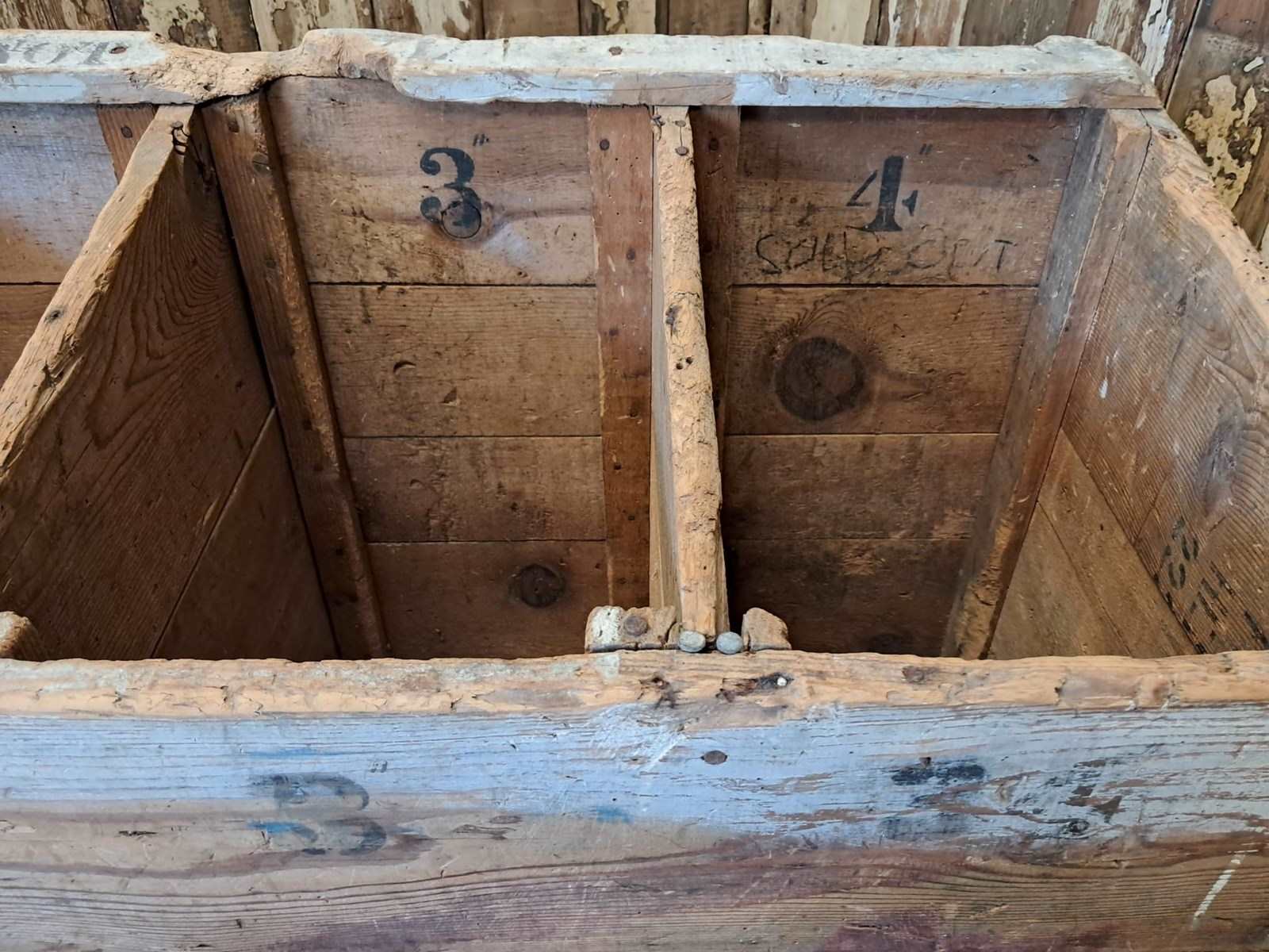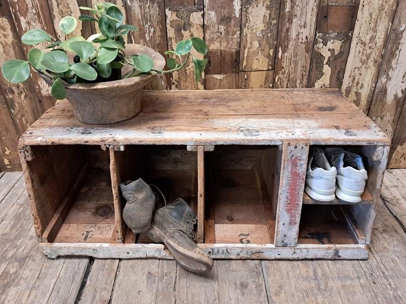 Lovely worn and gnarly pine showing some original numbers in the cubby holes.