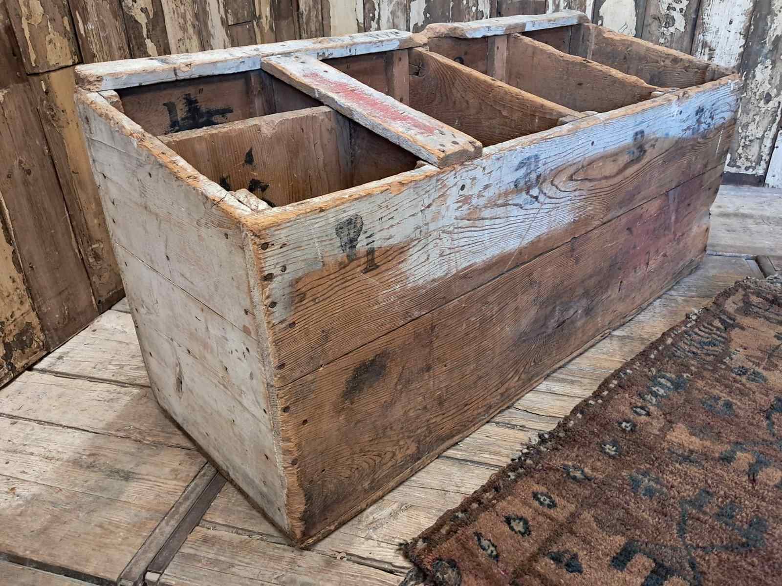 A very rustic pine textile storage bin circa 1940’s.