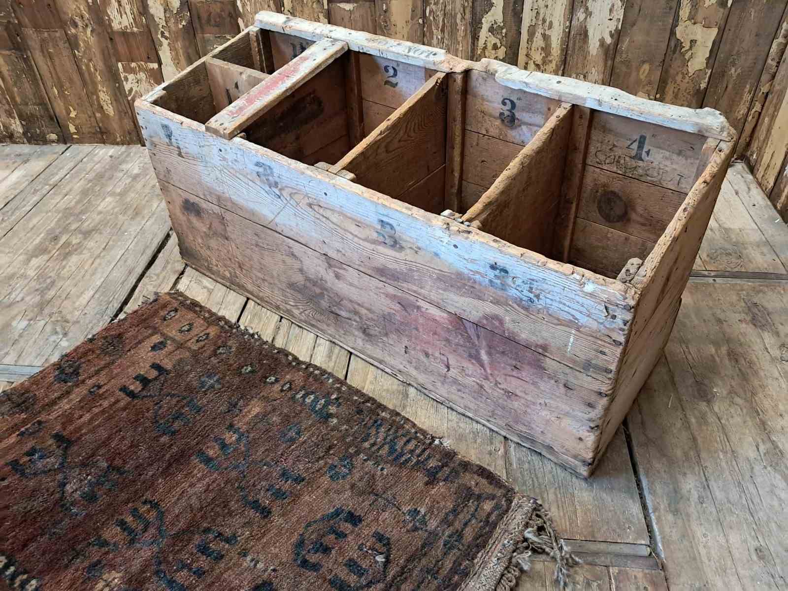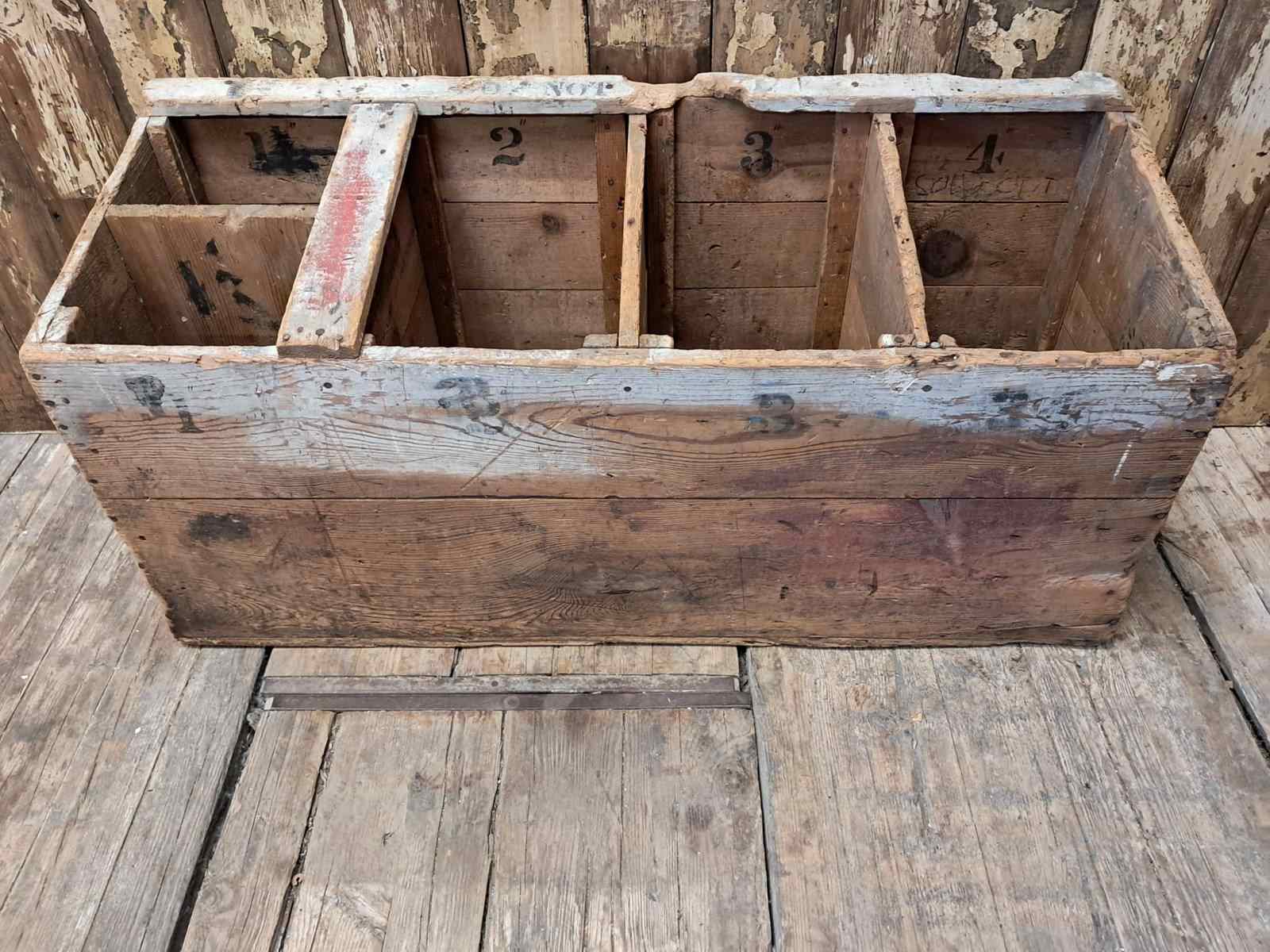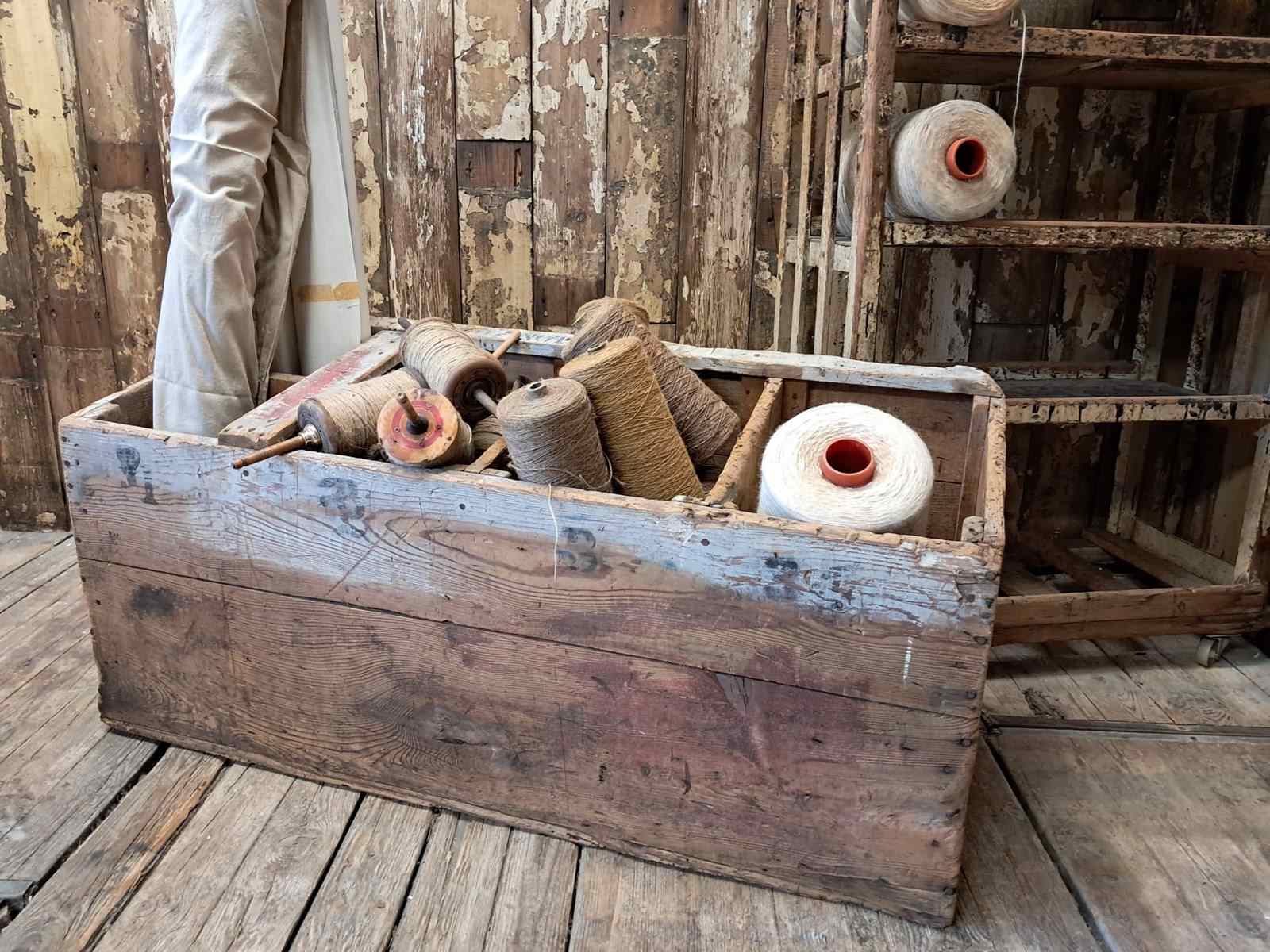 Rescued from an old British Sewing factory it was originally made and used to store fabric remnants.