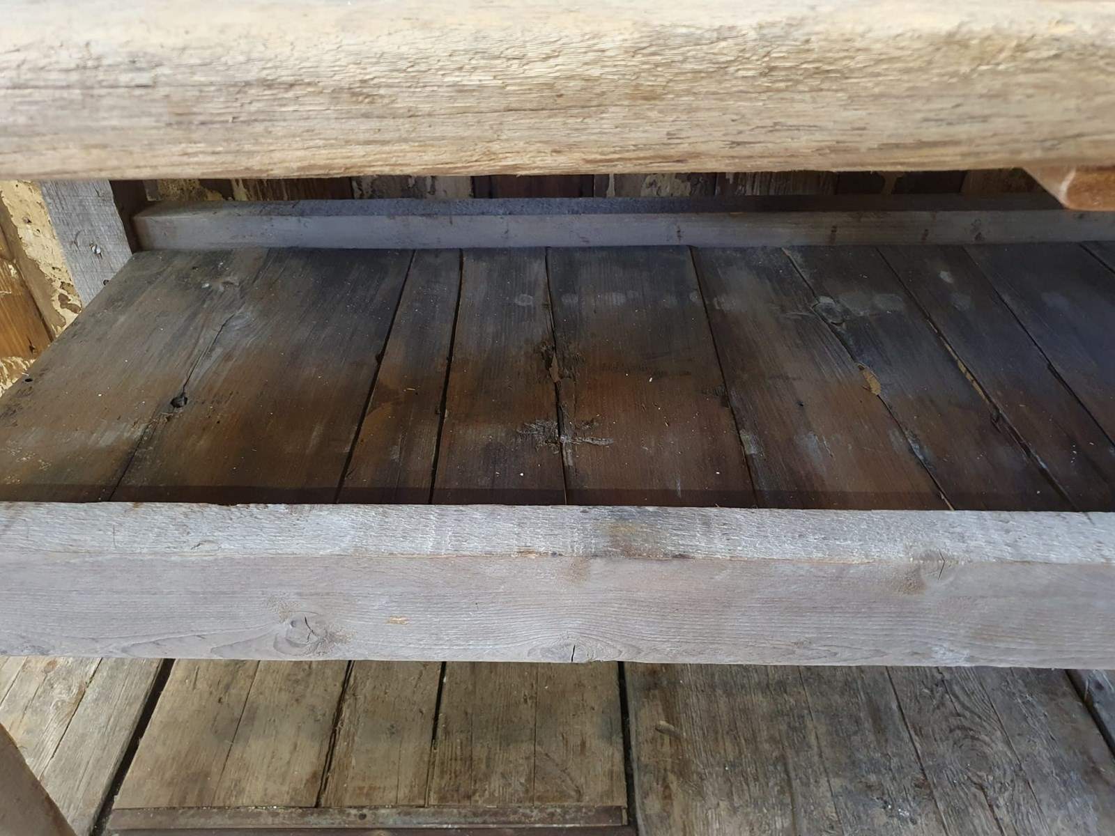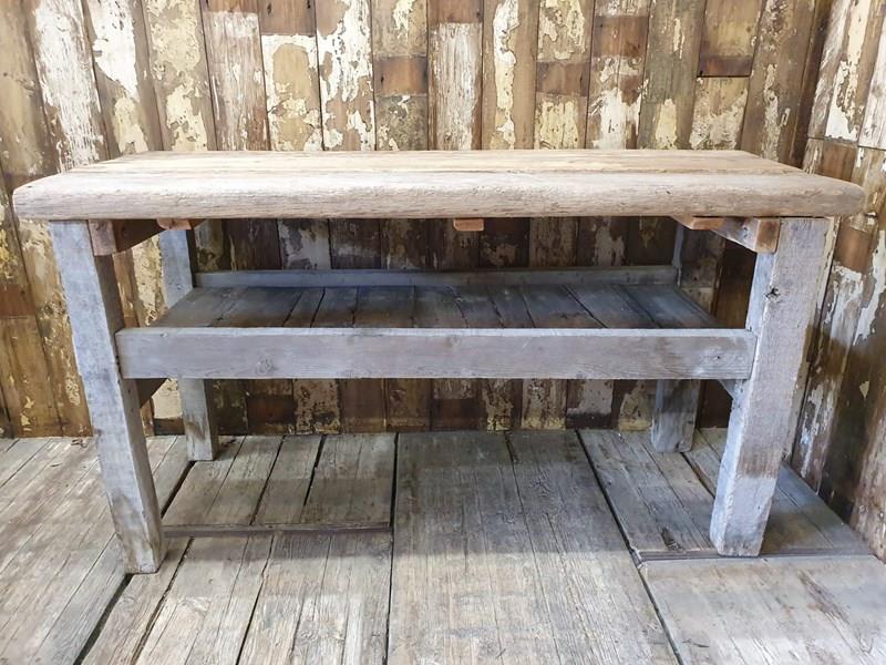 A chunky, rustic workbench.