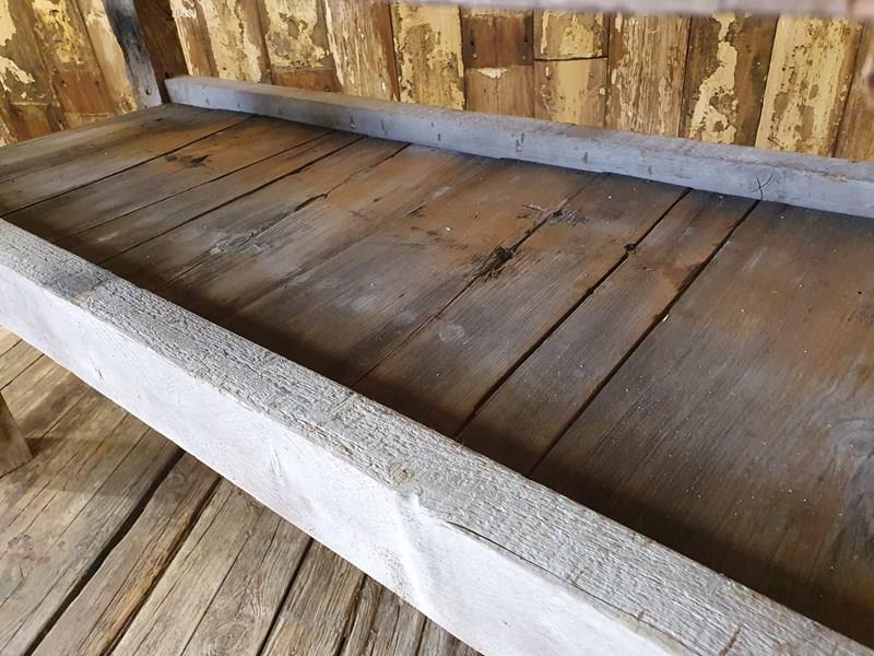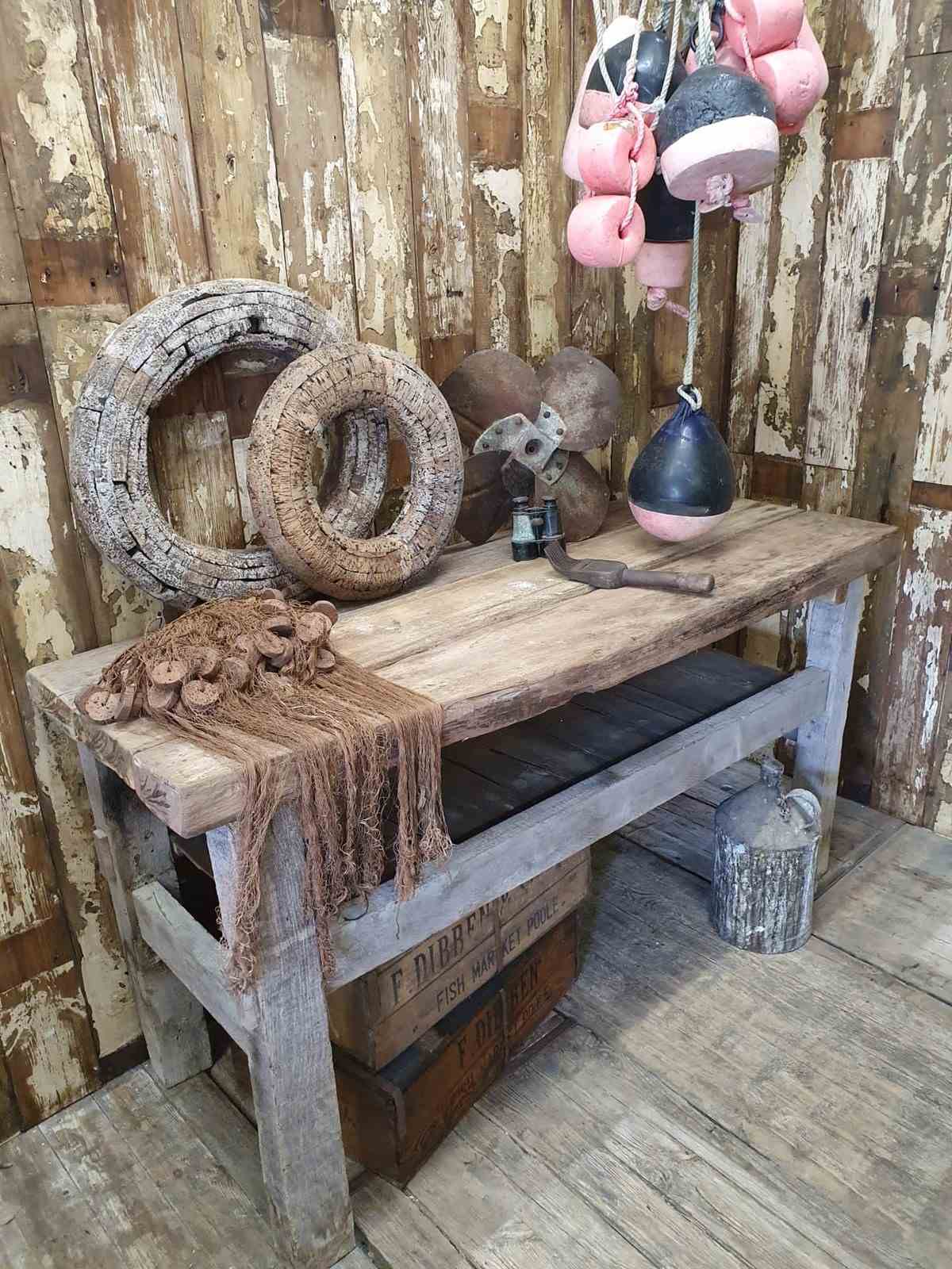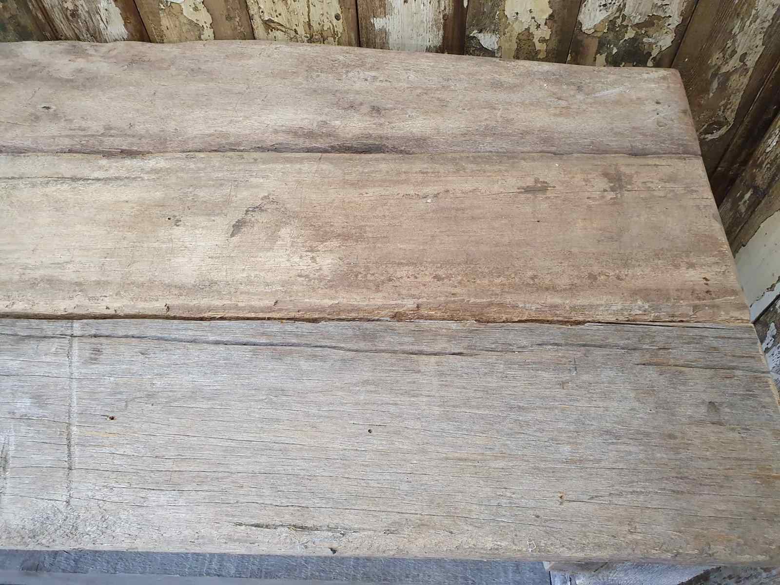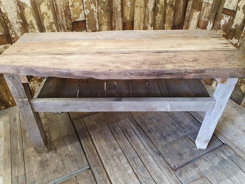 Made from reclaimed dock side timbers, giving it a wonderfully bleached, rugged and well worn look, this incredibly sturdy and robust bench makes a great kitchen centrepiece.