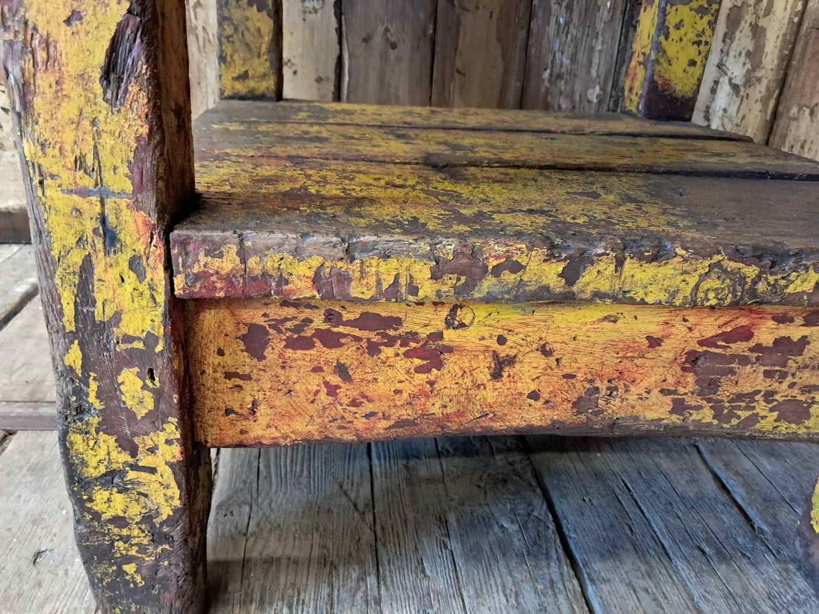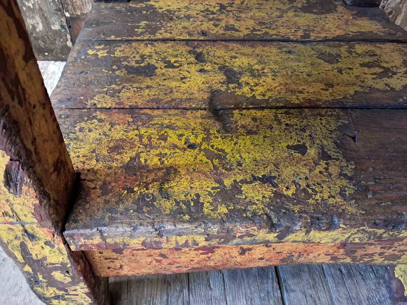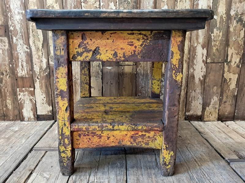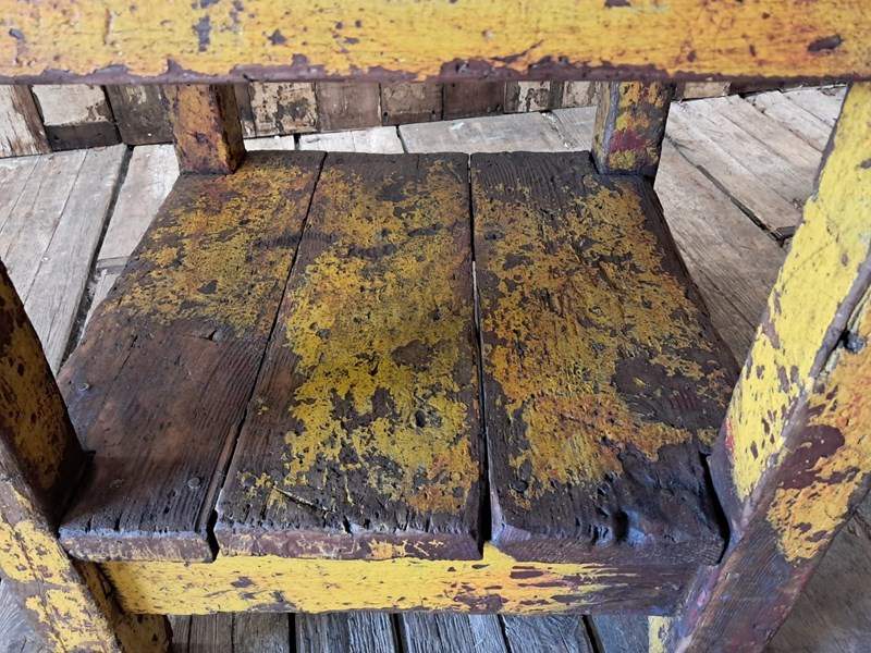Originally used in boat building yard, this super little table has a bright yellow, chippy paint, chunky framework.
