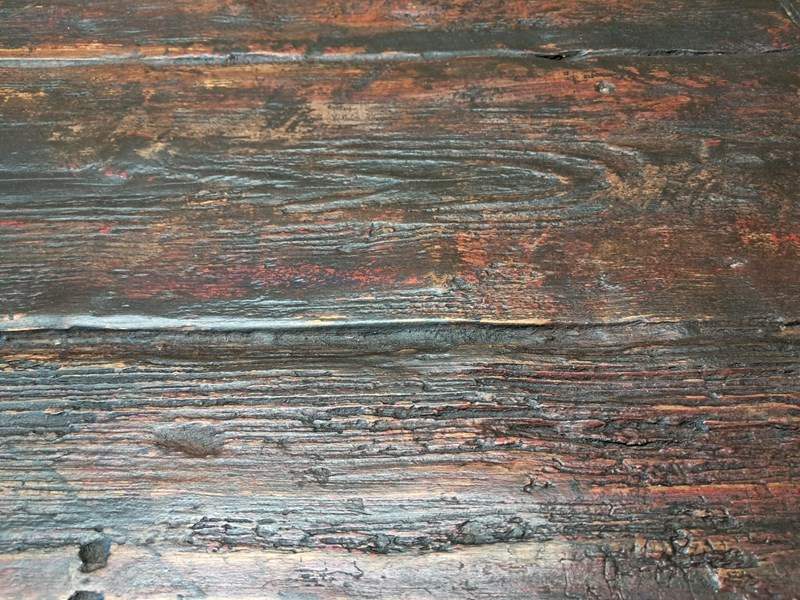 It’s rich dark, hefty top is well worn – fantastically gnarly and pitted with uneven surface due to use.