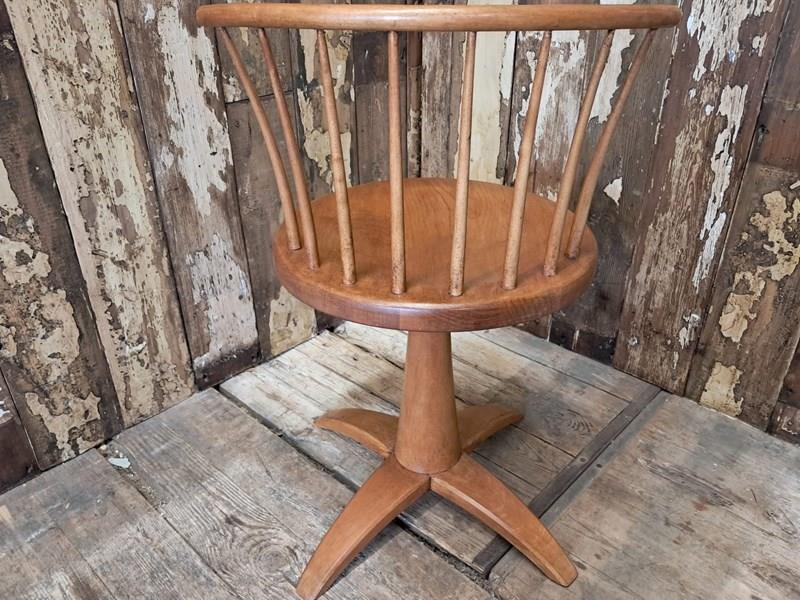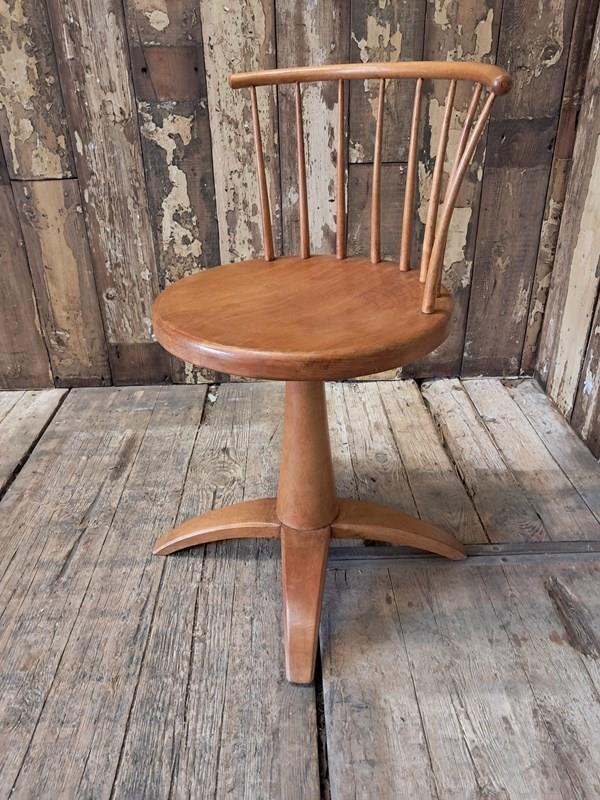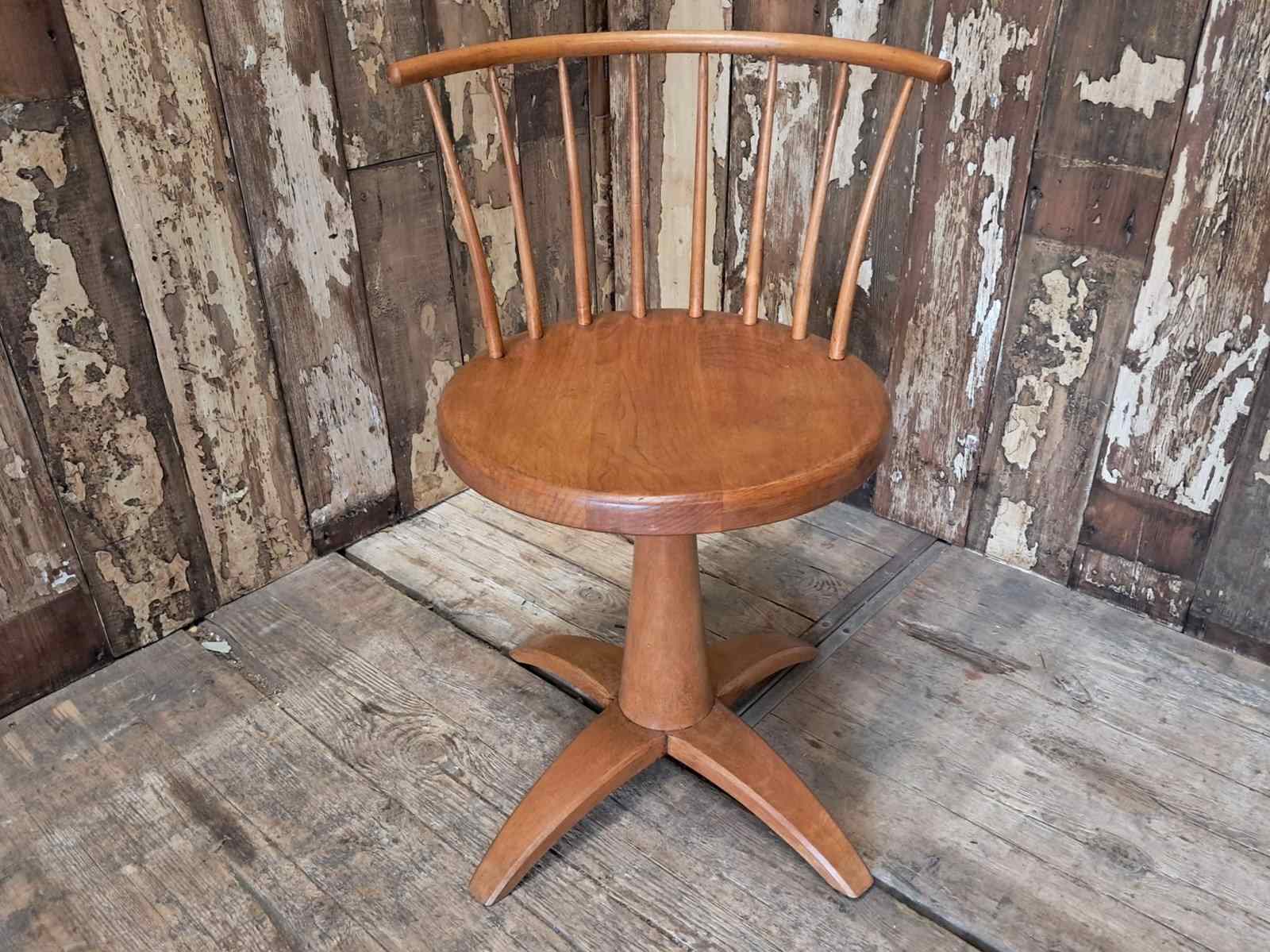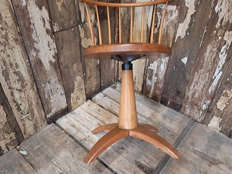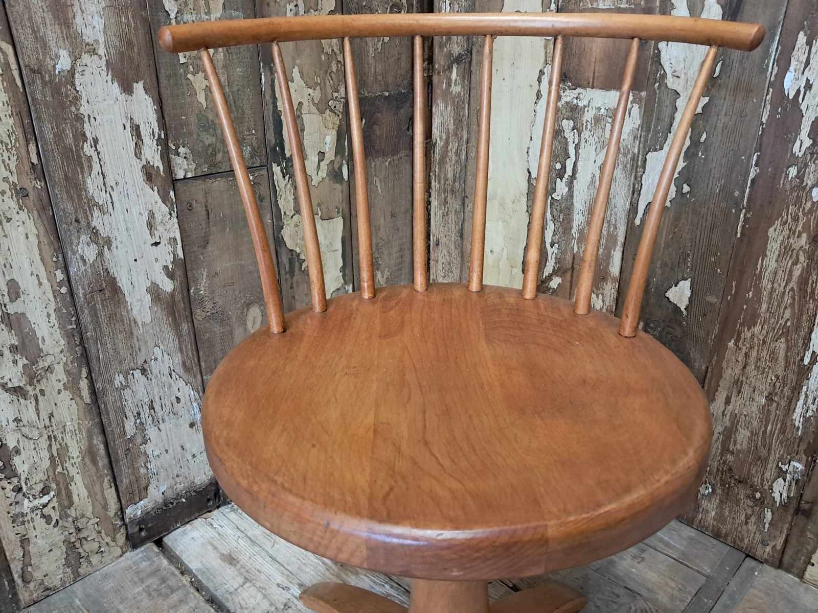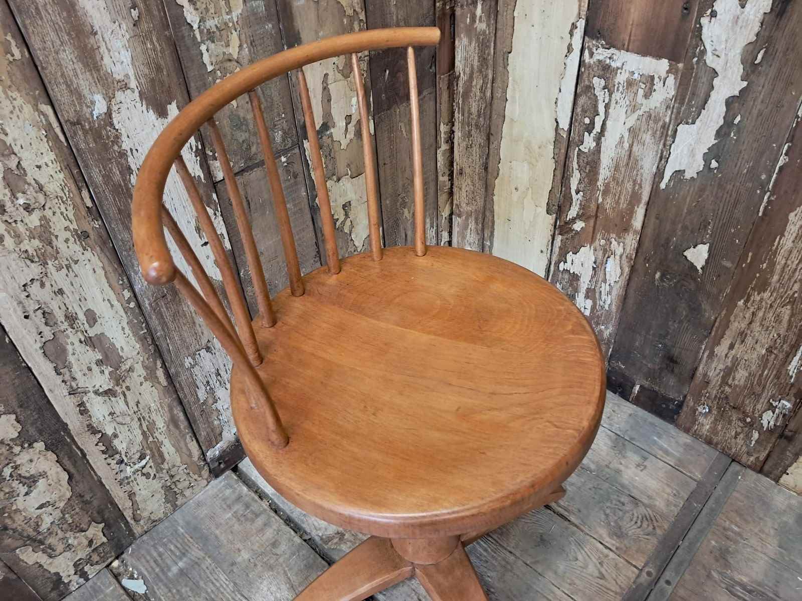 An adjustable pine Revolving chair, stool or swivel chair, produced by Shaker Workshops.