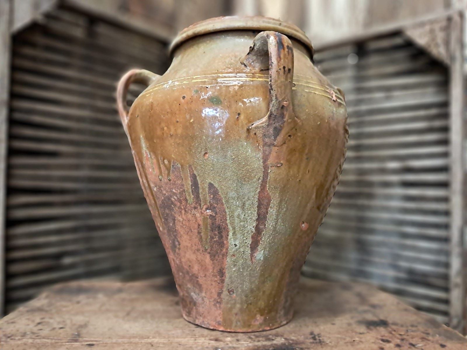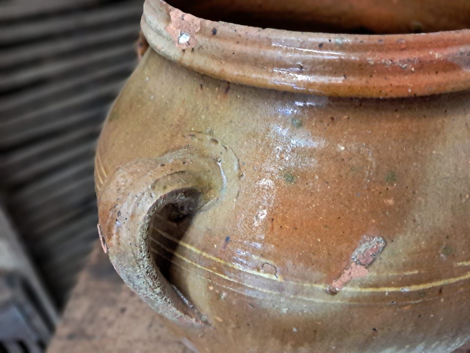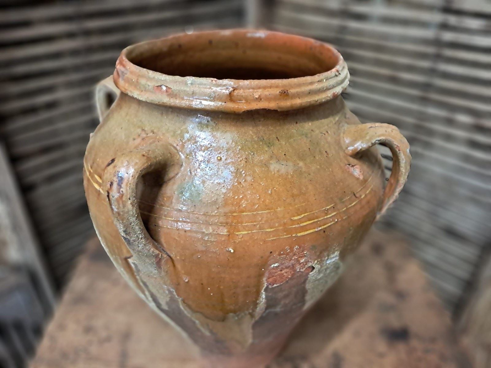 A small Spanish glazed terracotta olive oil pot, circa 1880 from Catalonia.