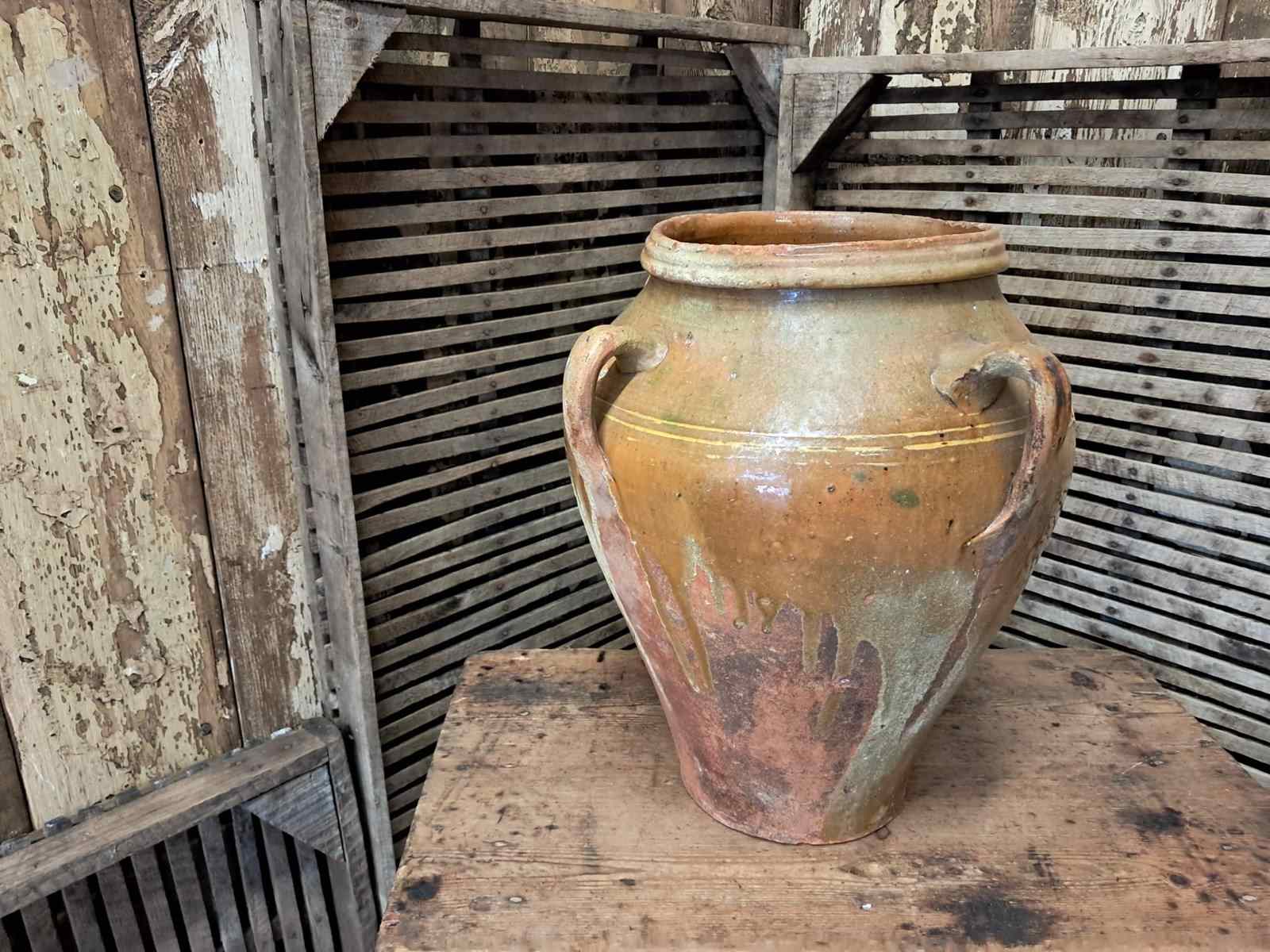 These handmade antique pots were used to store olives and oils and as such have developed the most wonderful patina with deep caramel hues over the years – beautiful decorative pieces for garden and home.