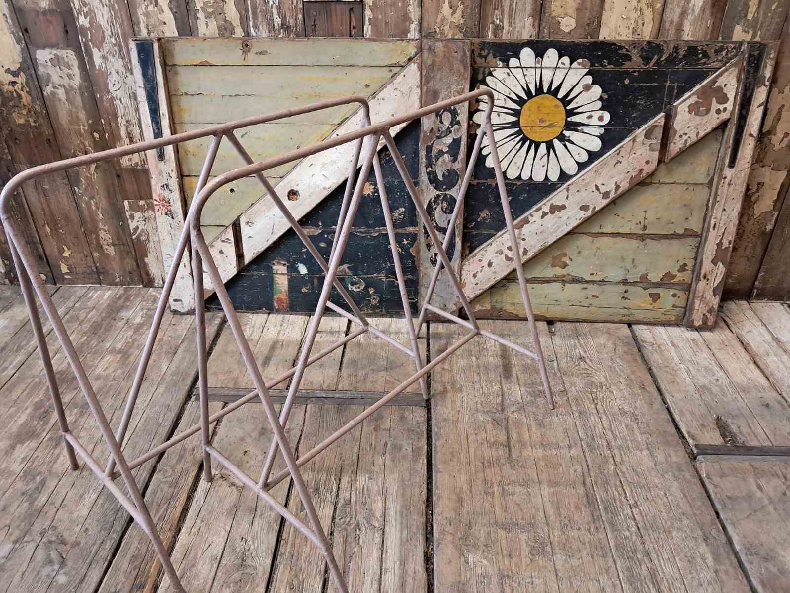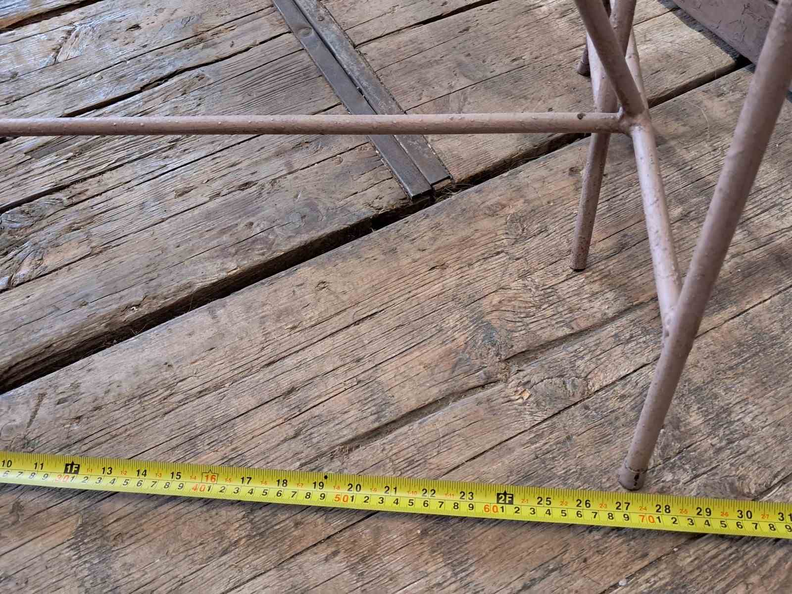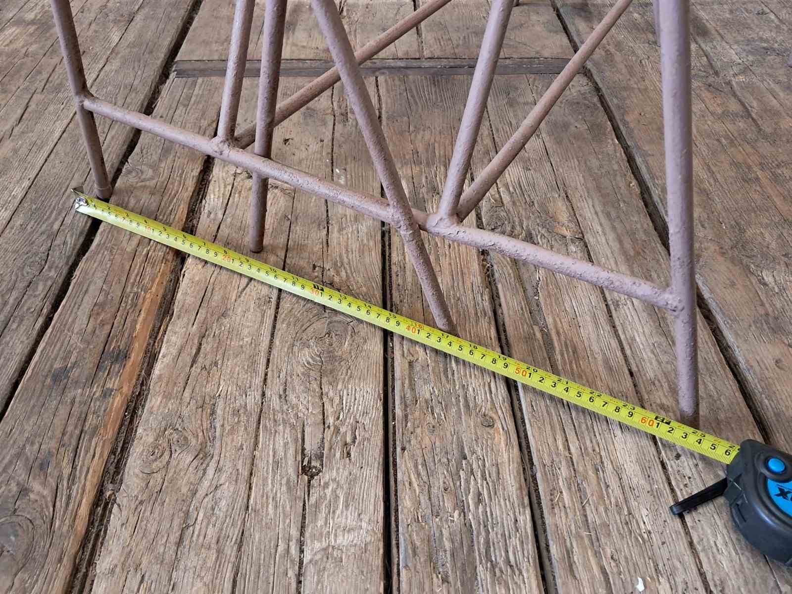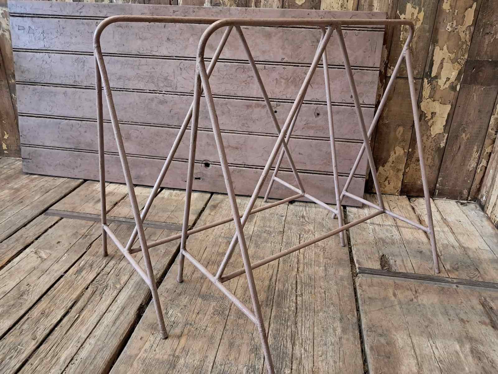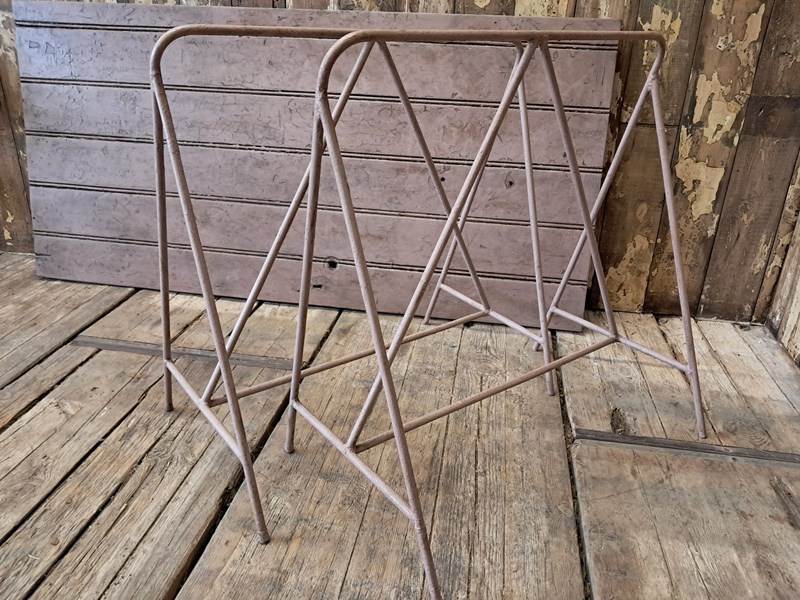 A super trestle table with steel trestle legs and a solid pine, cross braced, recycled door top.