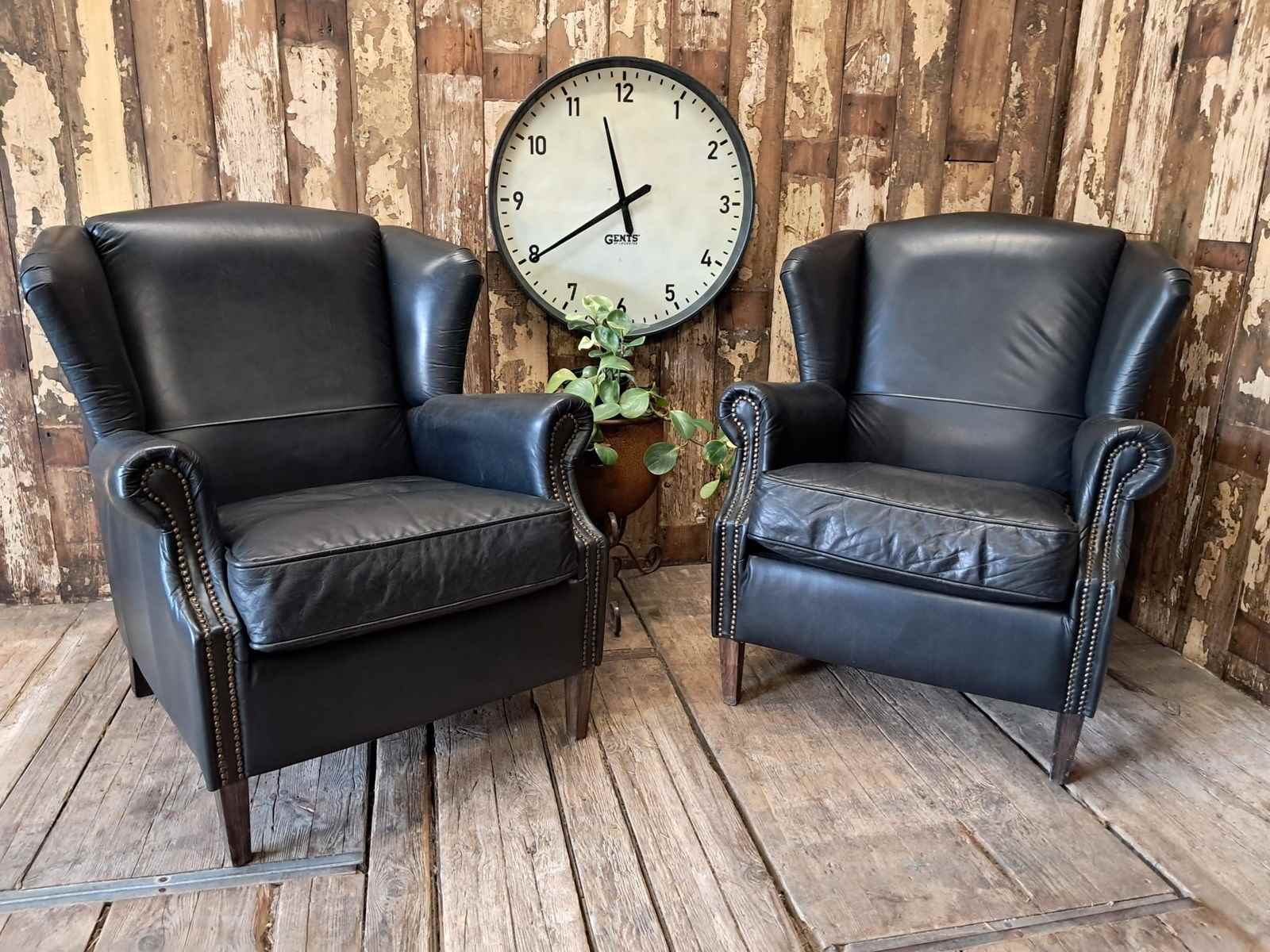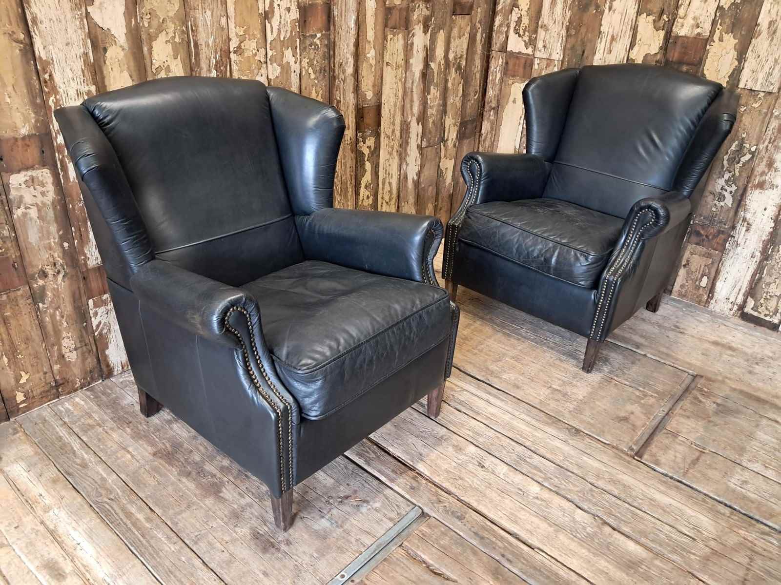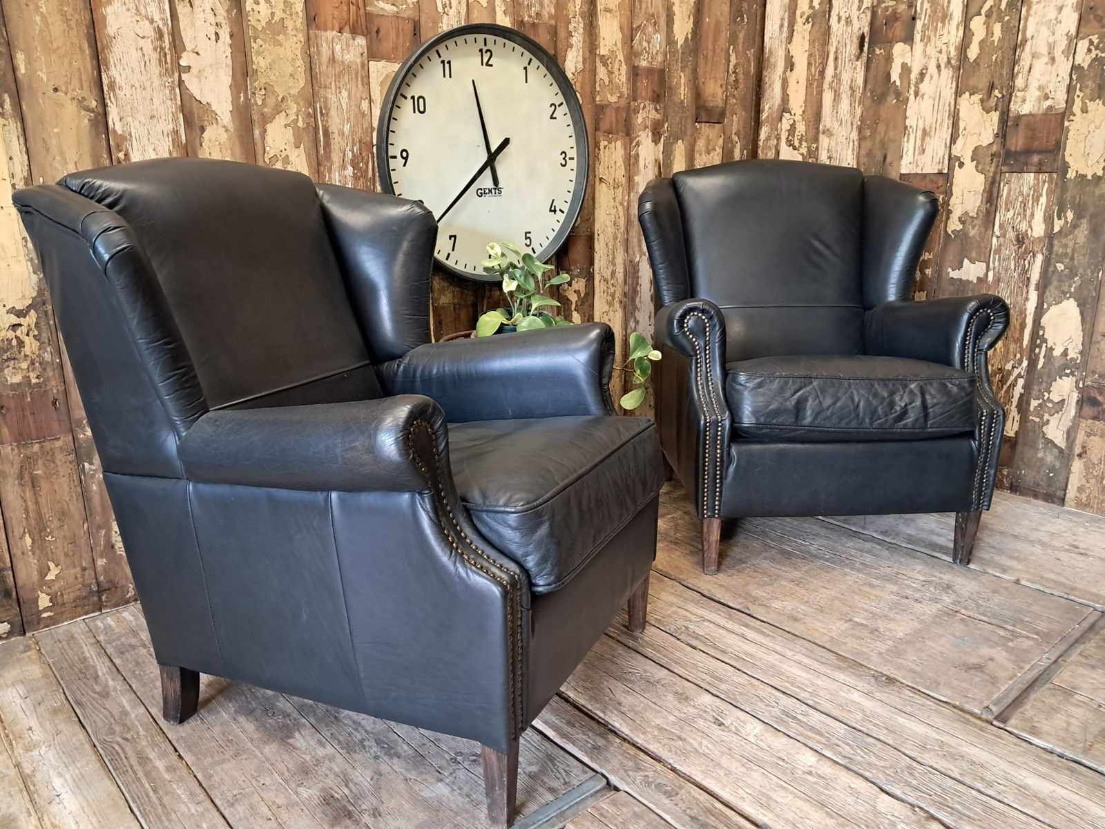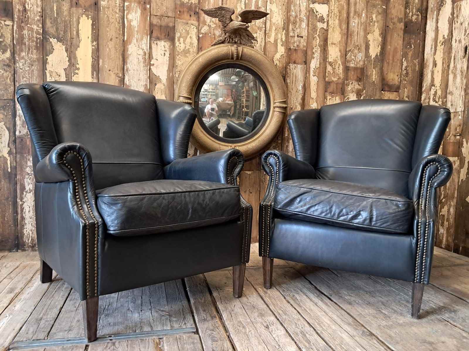 A matching pair of vintage Dutch leather wingback armchairs from the 1970’s.