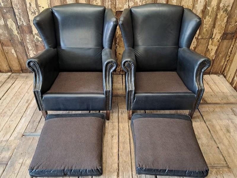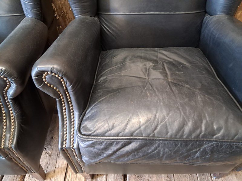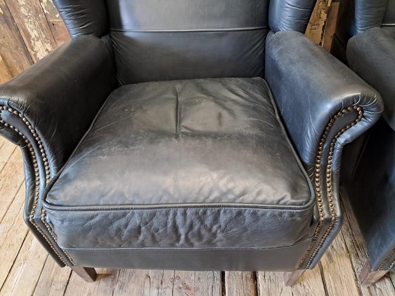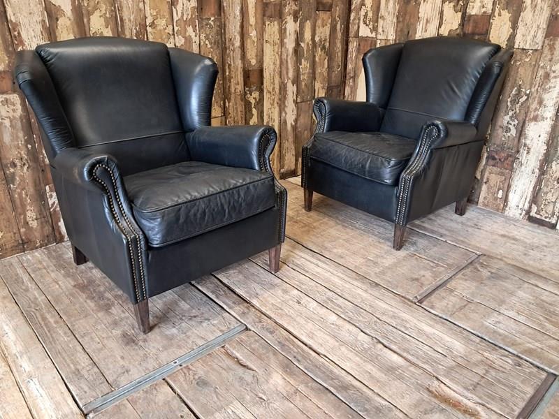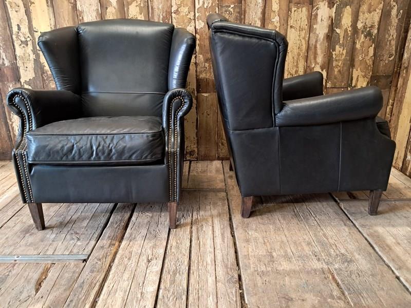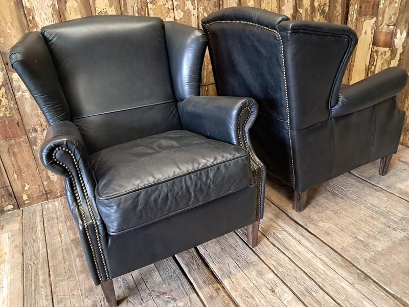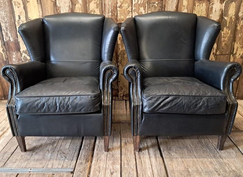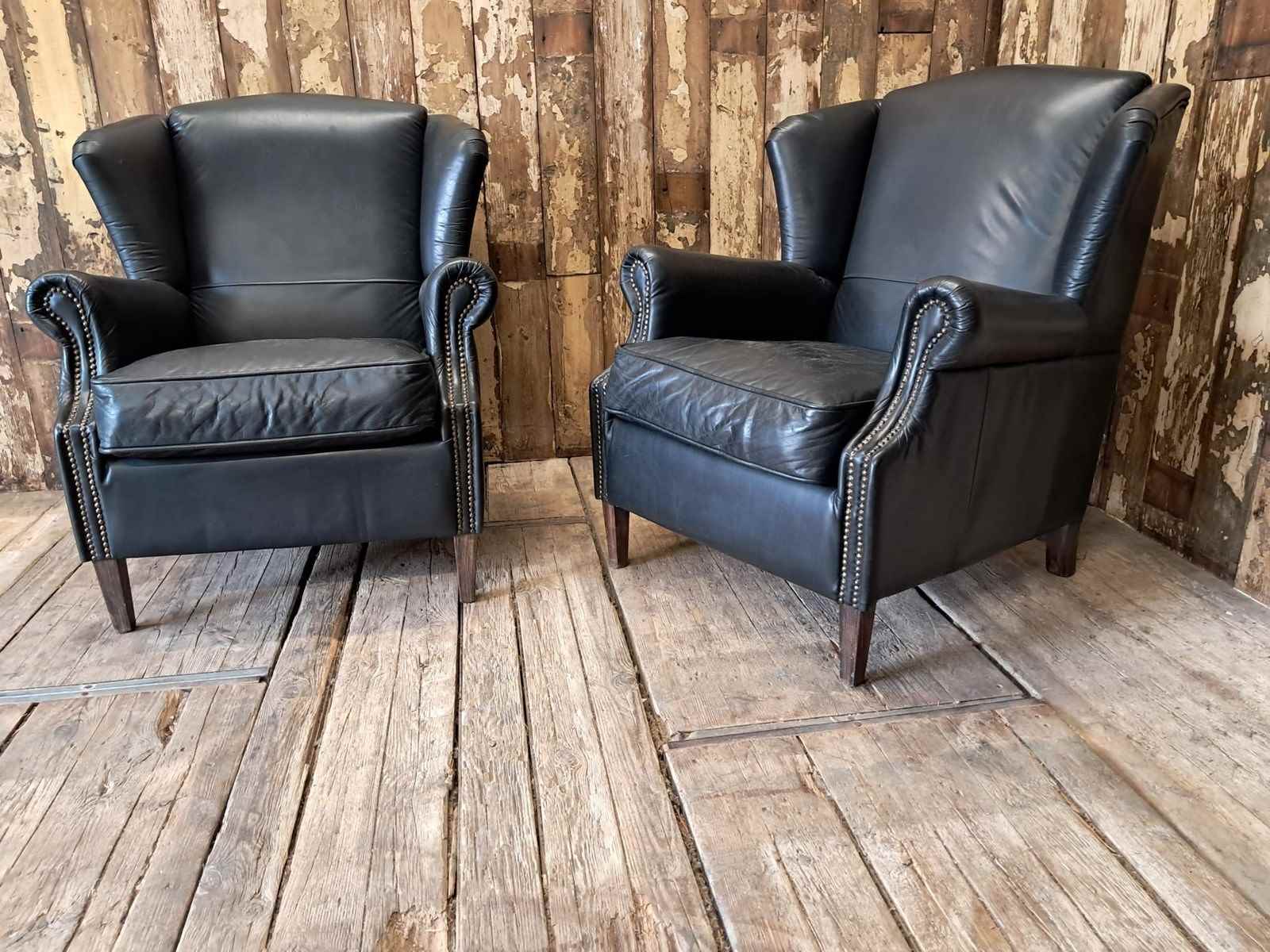 A matching pair of vintage Dutch leather wingback armchairs from the 1970’s.