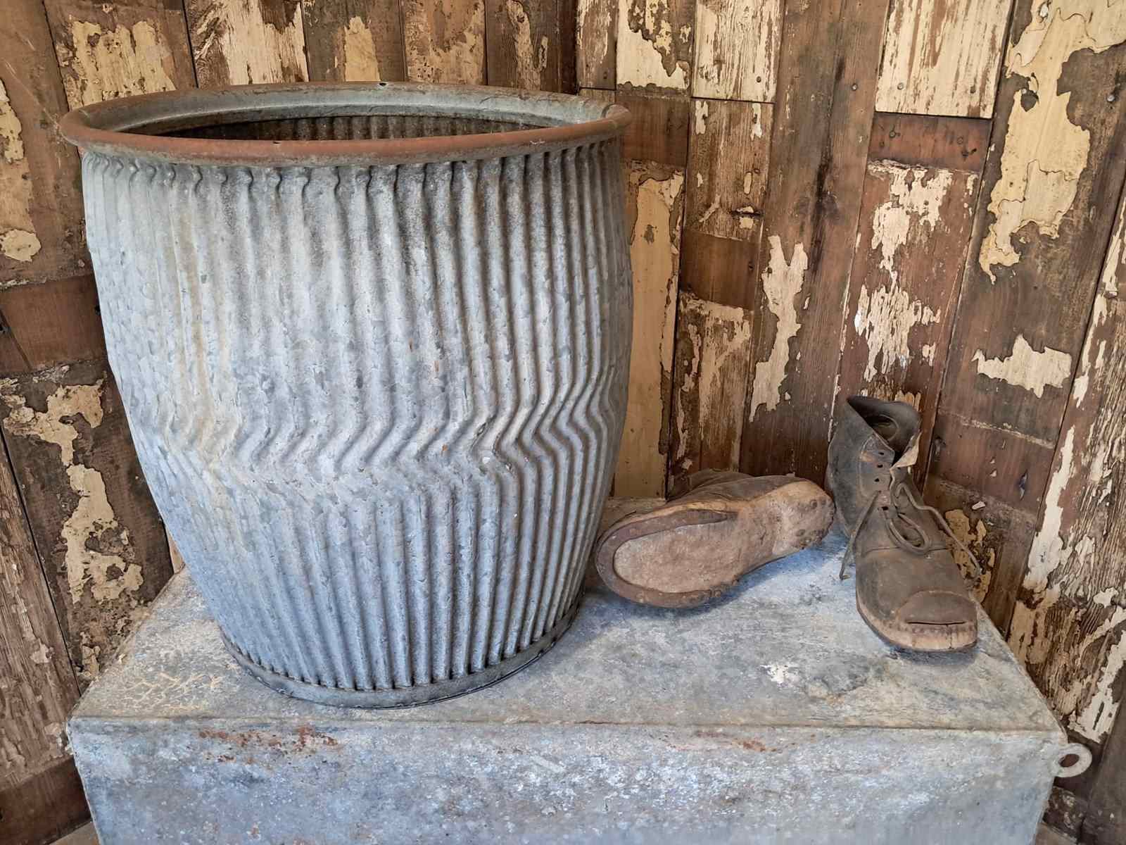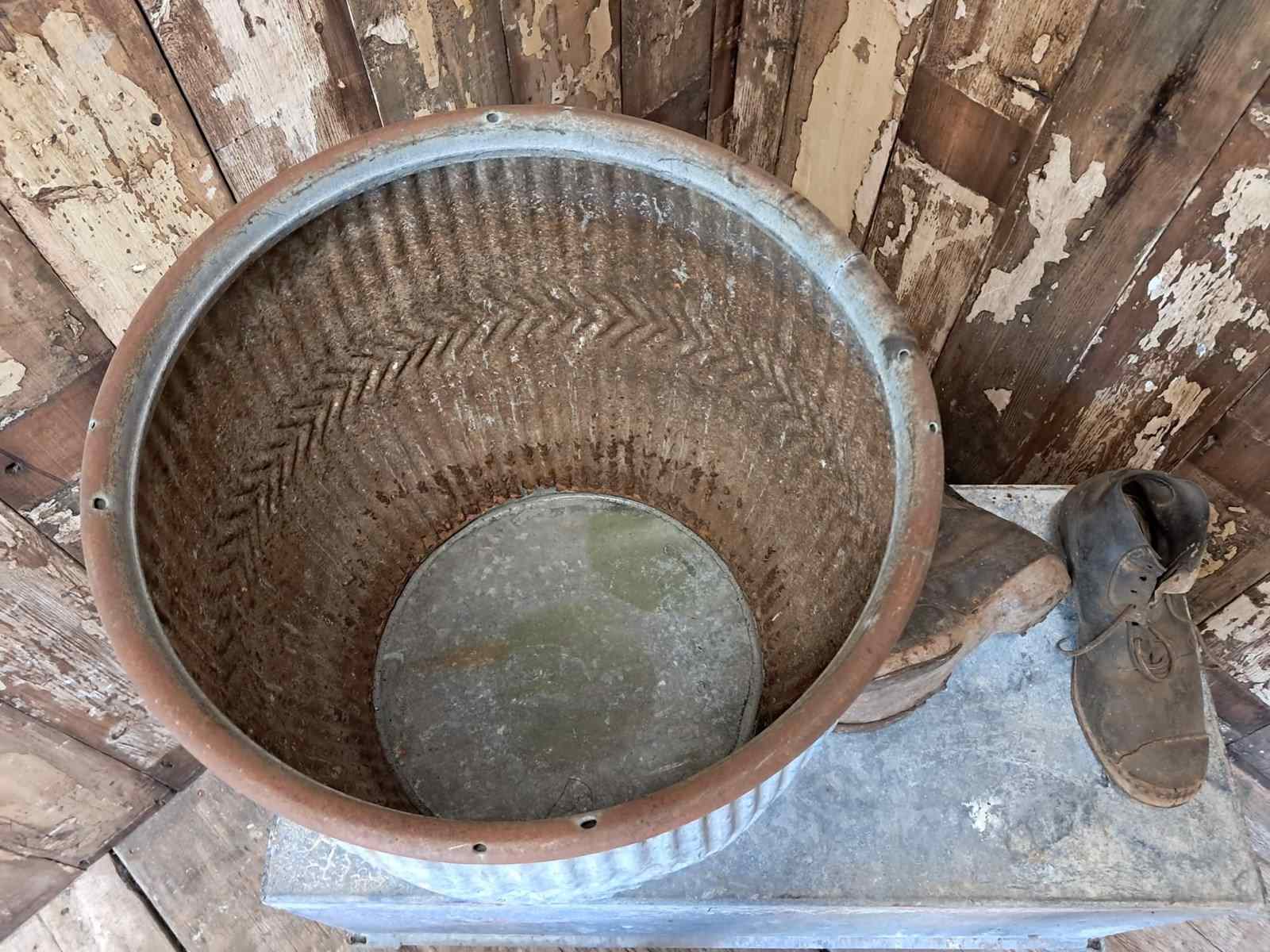 A vintage galvanised dolly tub with great age, wear, and patina.